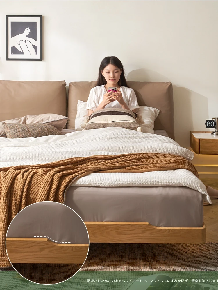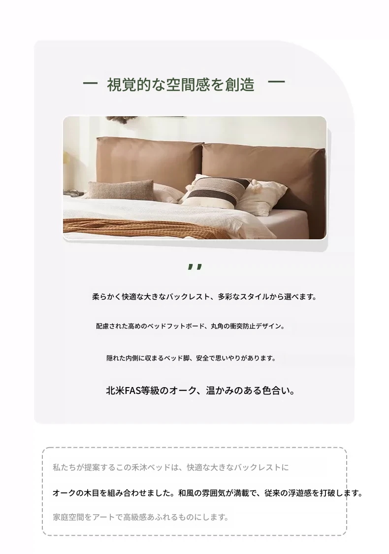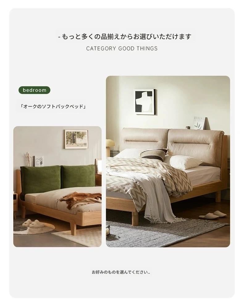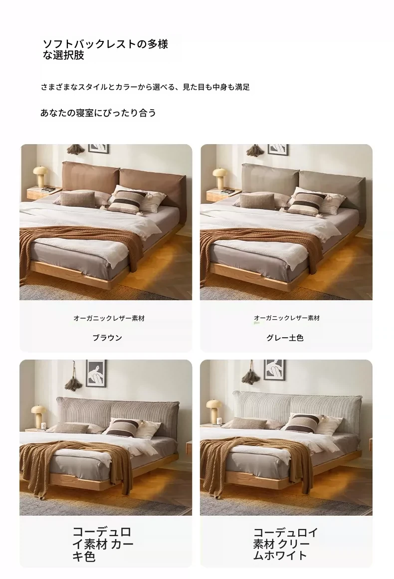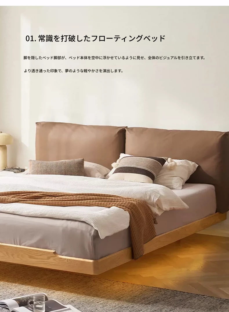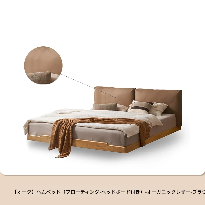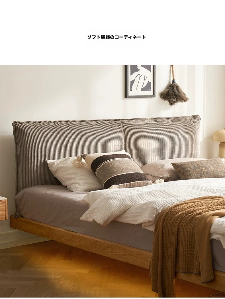 オーガニック無垢材のオークソフトパッケージベッド - 和風畳スタイルの浮遊感!1.5mダブルベッドで、ナチュラルな木の温もりを感じる理想の寝室を実現。