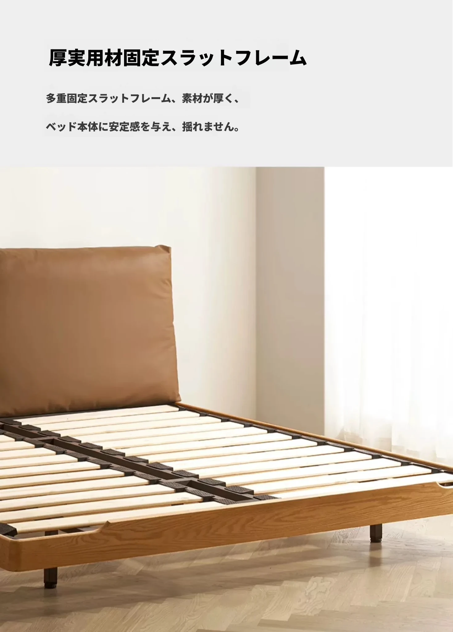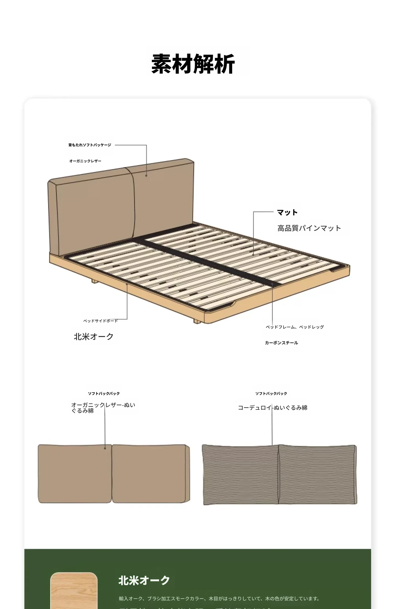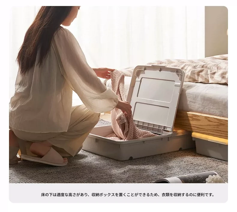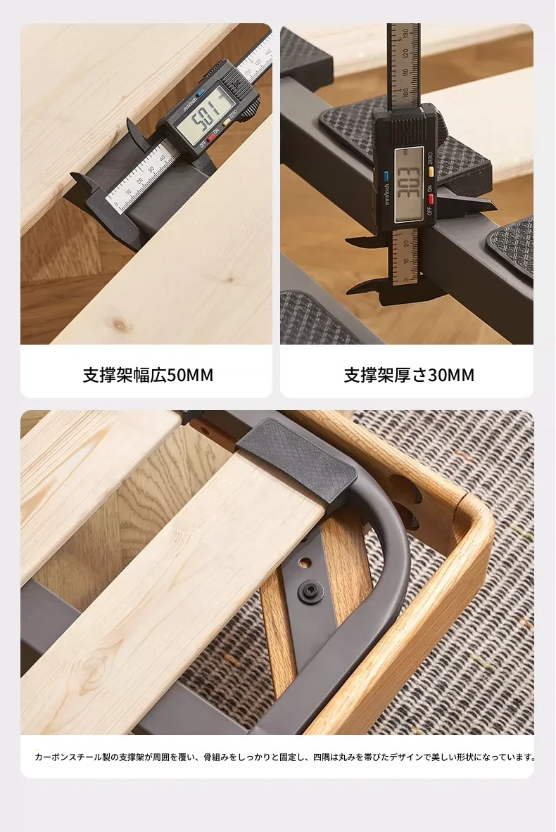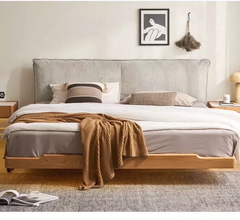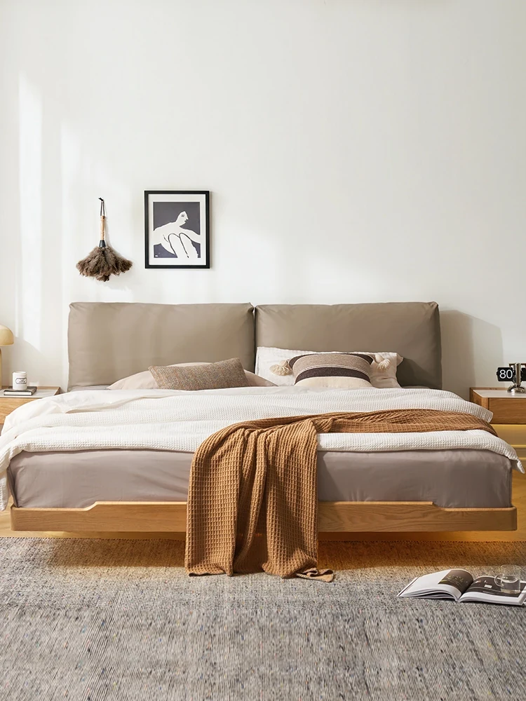 オーガニック無垢材のオークソフトパッケージベッド - 和風畳スタイルの浮遊感!1.5mダブルベッドで、ナチュラルな木の温もりを感じる理想の寝室を実現。