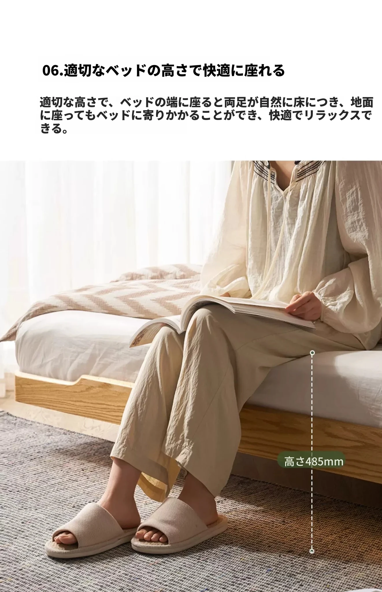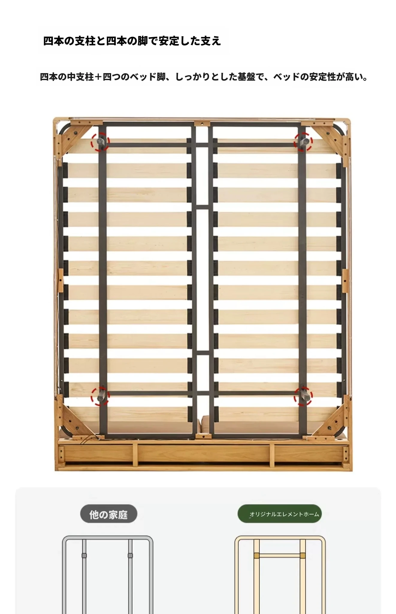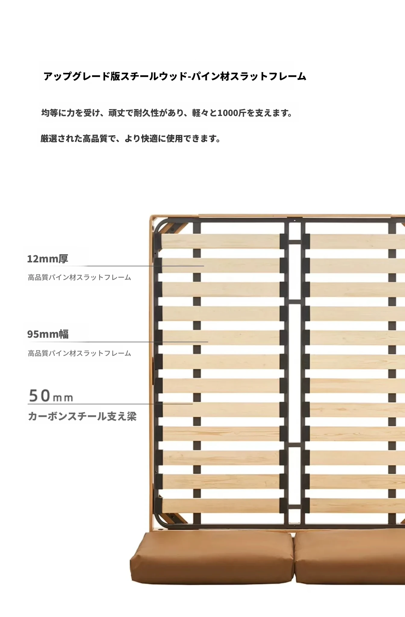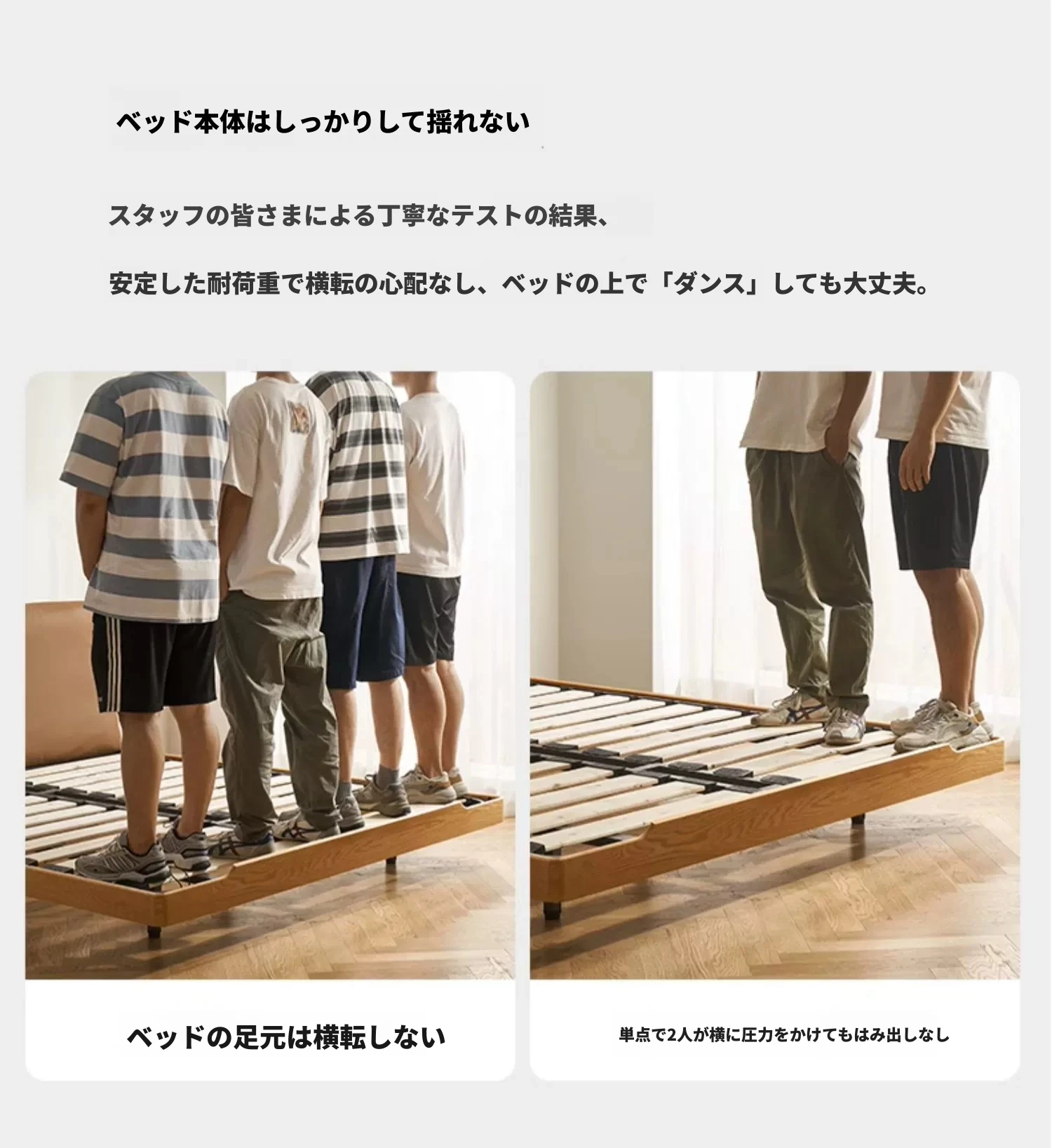 オーガニック無垢材のオークソフトパッケージベッド - 和風畳スタイルの浮遊感!1.5mダブルベッドで、ナチュラルな木の温もりを感じる理想の寝室を実現。