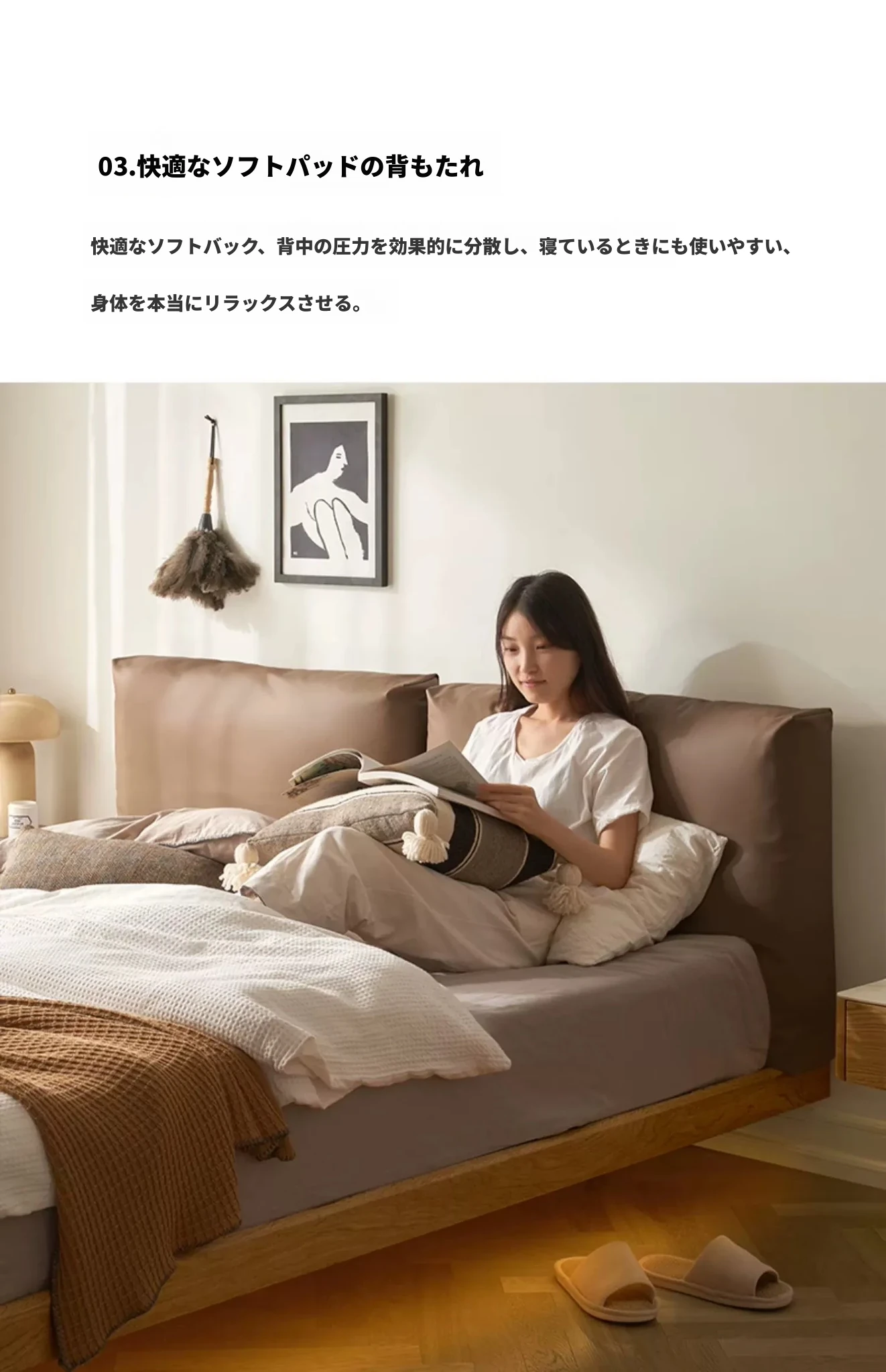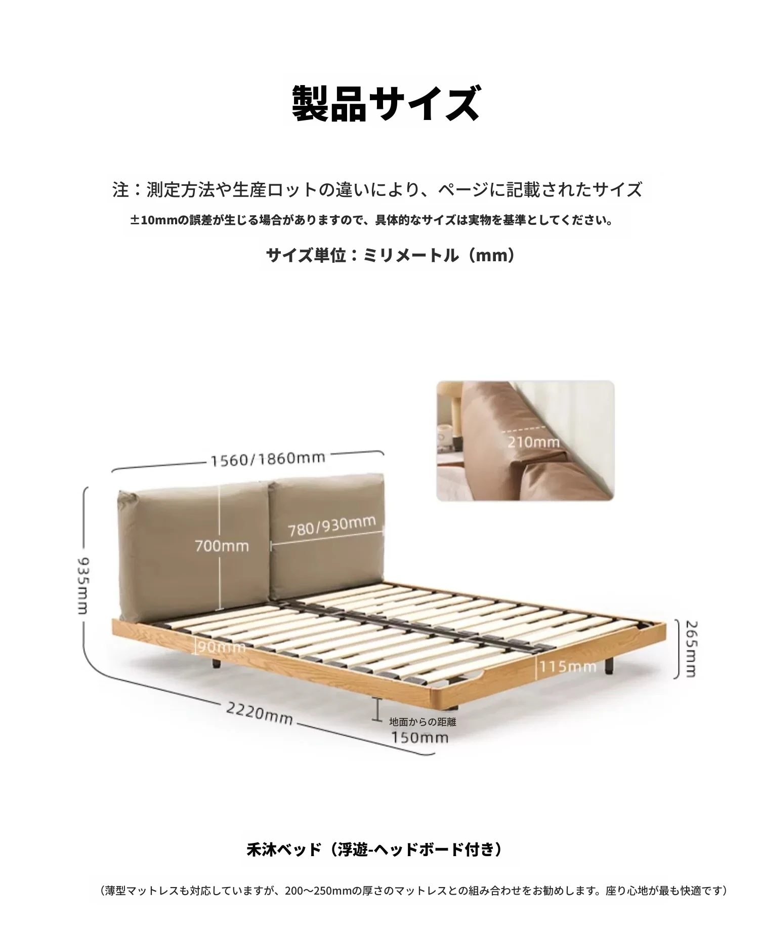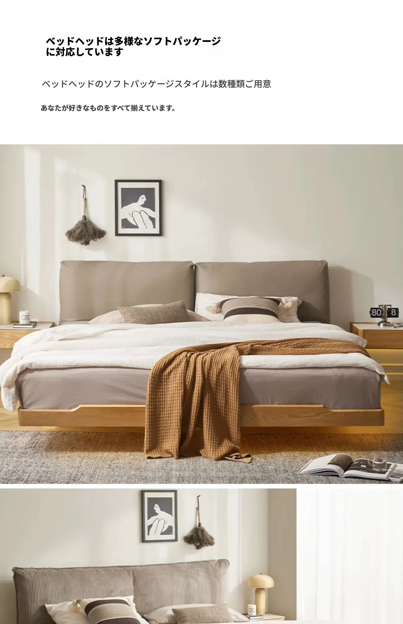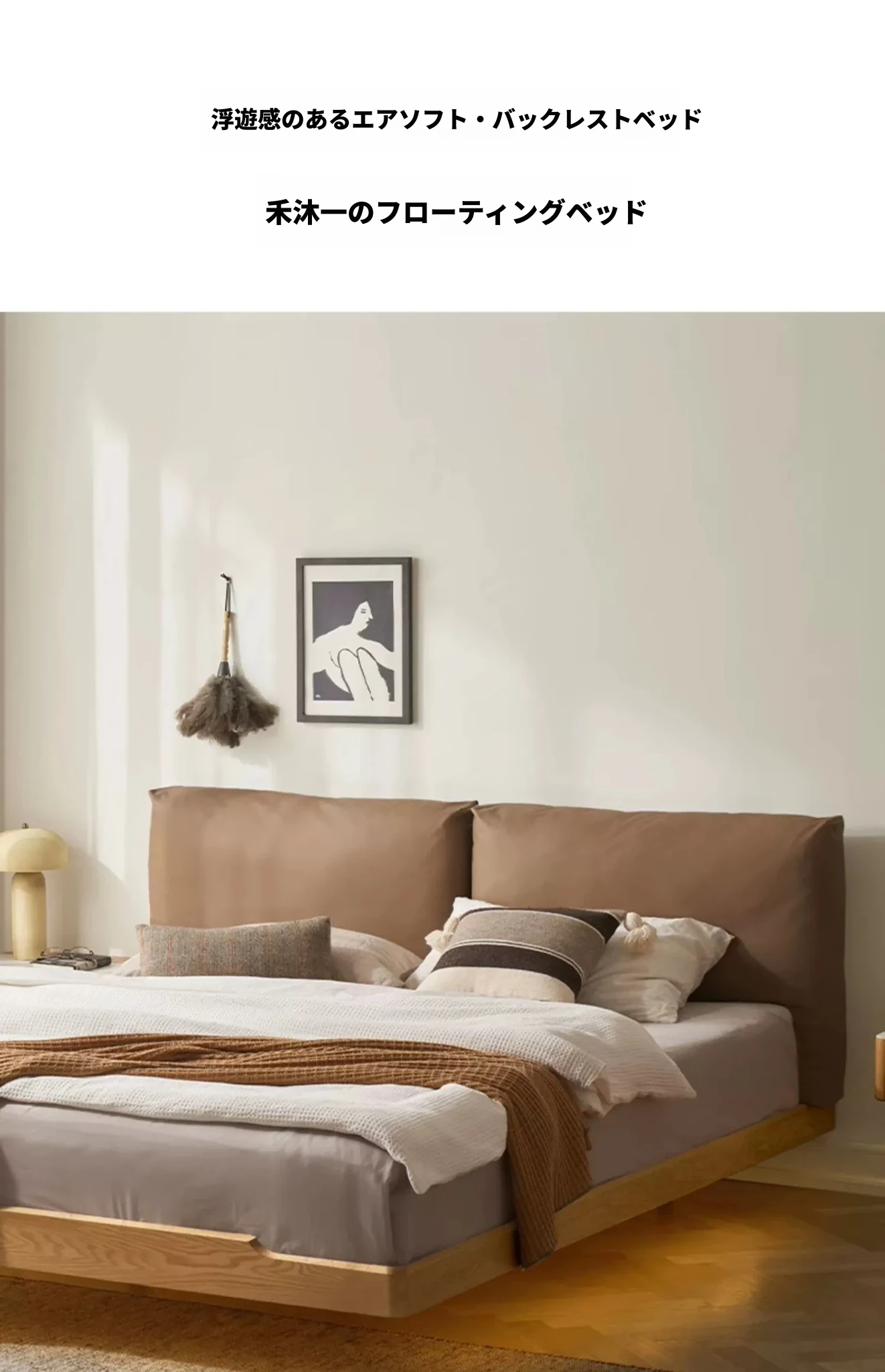 浮床+ヘッドボードソフトパッケージAライトカーキ(L7018)