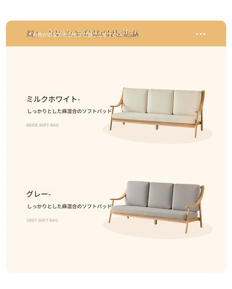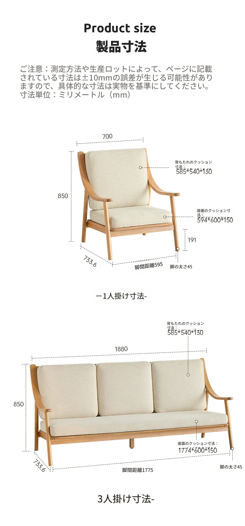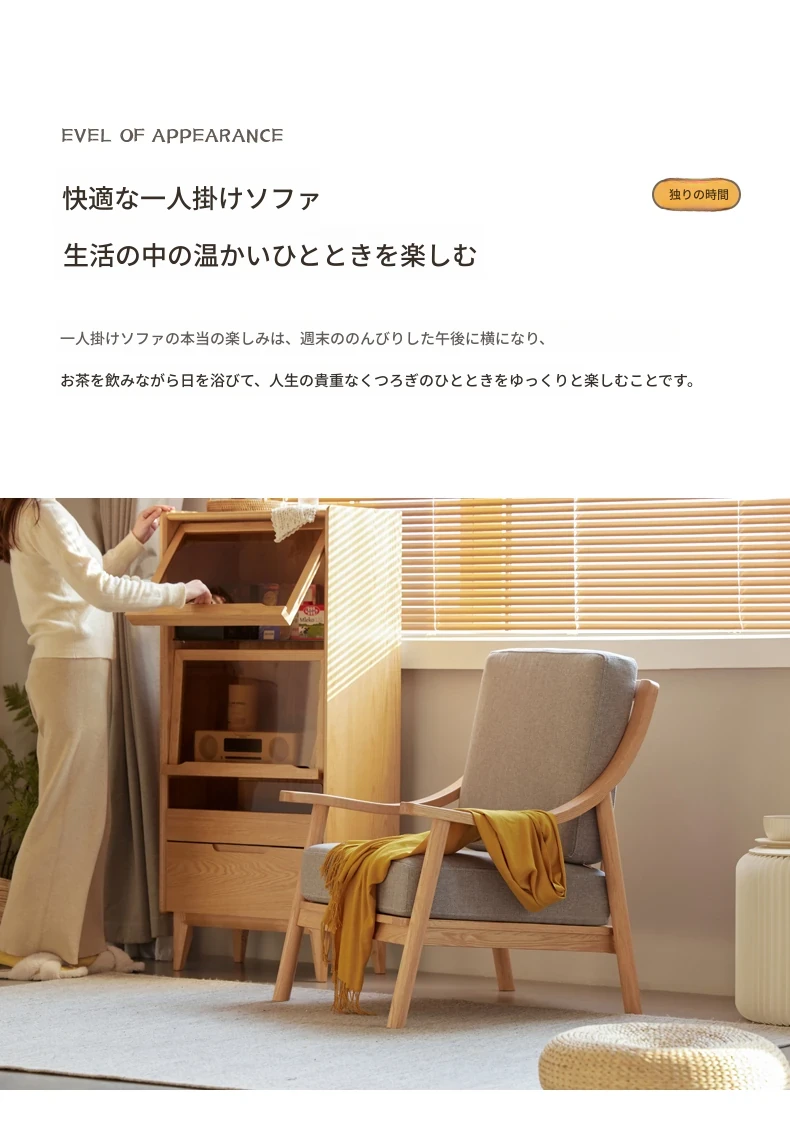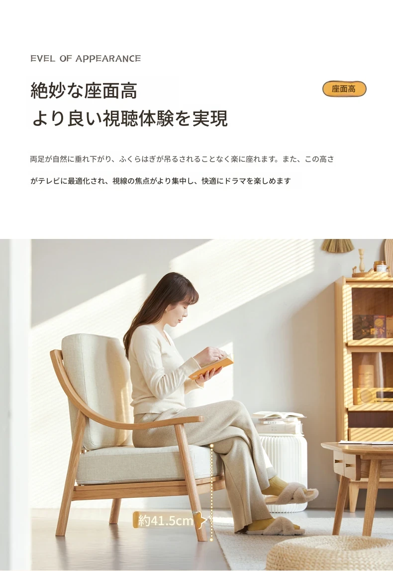 原材料の天然木を使用した北欧風・和風の3人掛けソファ - シンプルでスタイリッシュなデザイン、リラックスできる小さなお部屋にぴったり!居心地の良いリビング家具で、毎日のくつろぎタイムをお楽しみください。