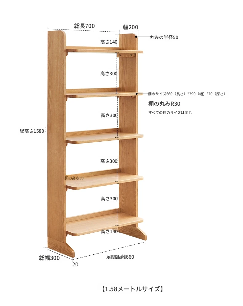 高・矮組合書架【原木色】 (在庫あり即発送)