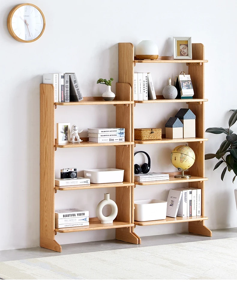 オリジナル全木製キッズ本棚 - 北欧風シンプルデザインで、創造的な収納スペースを提供!多層構造の組み合わせ本棚で、お子様の読書環境を楽しく整えます。