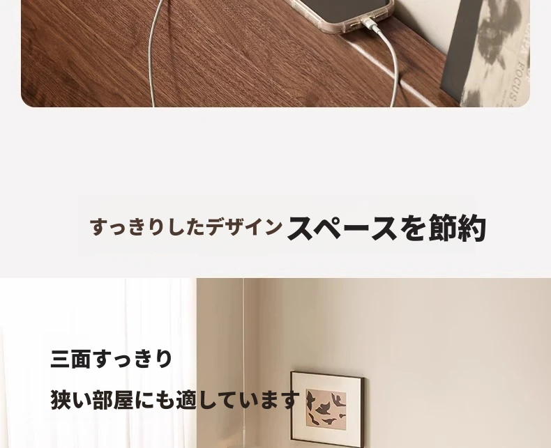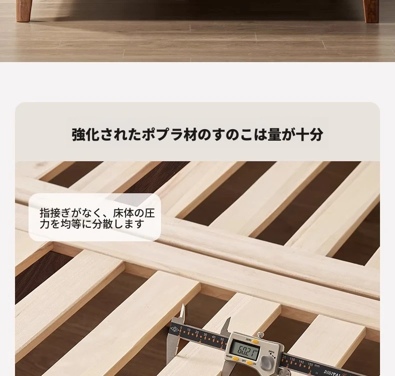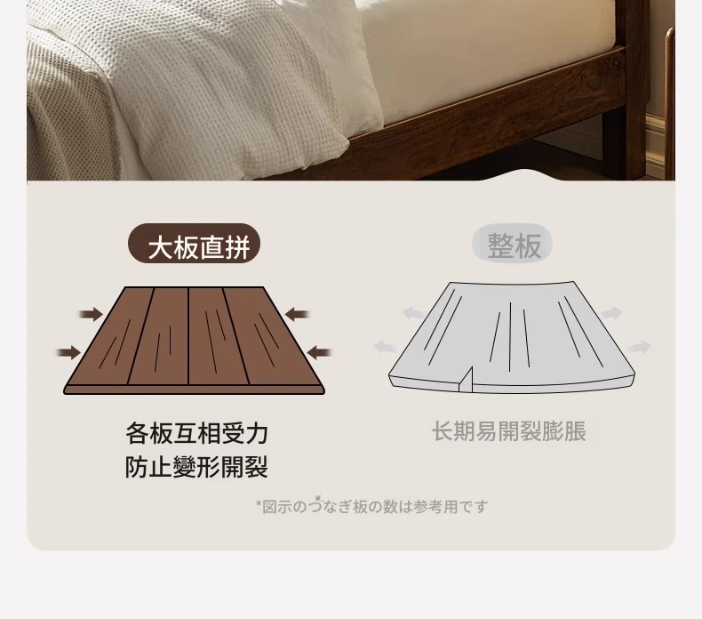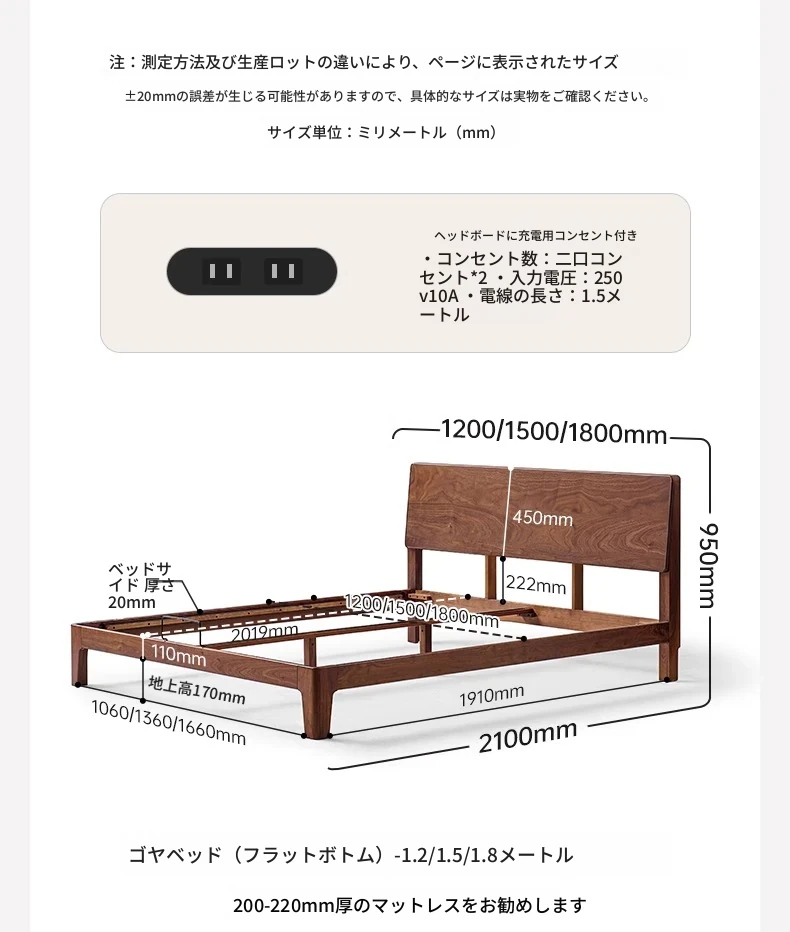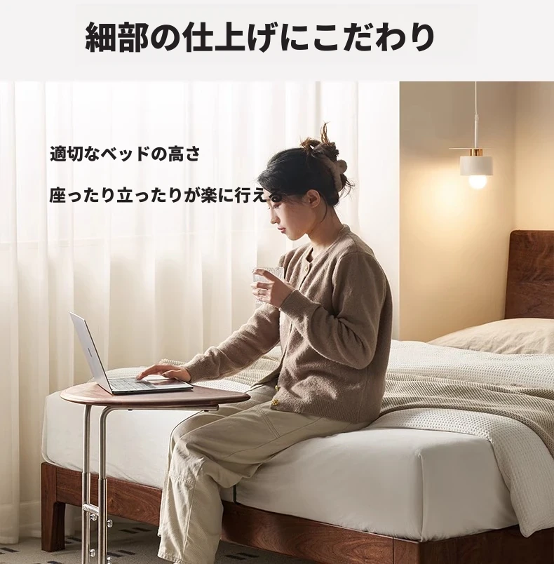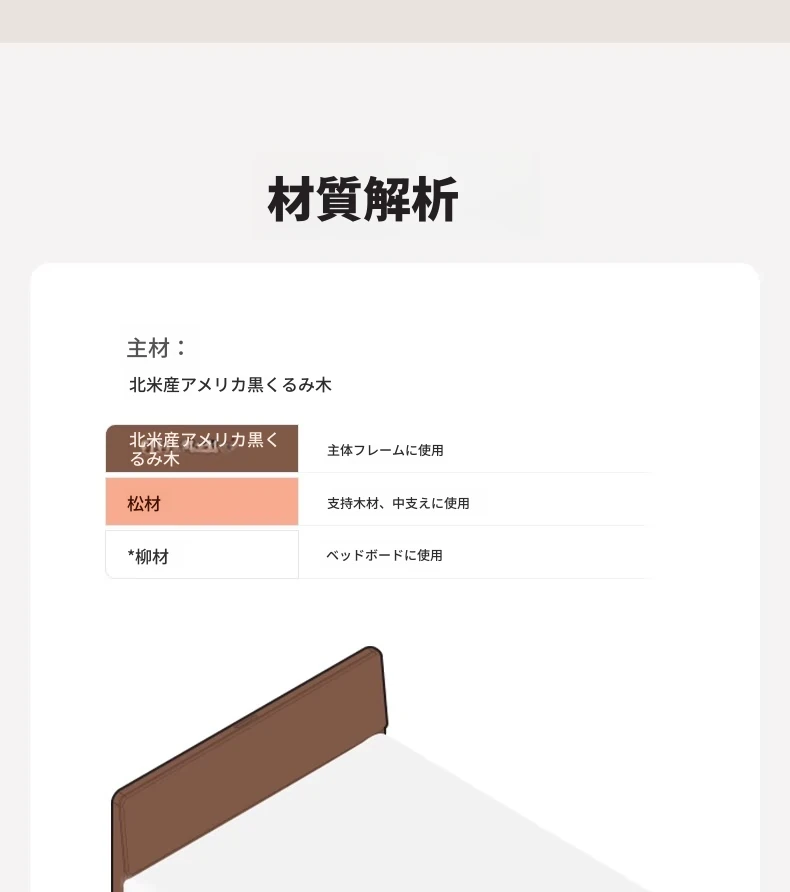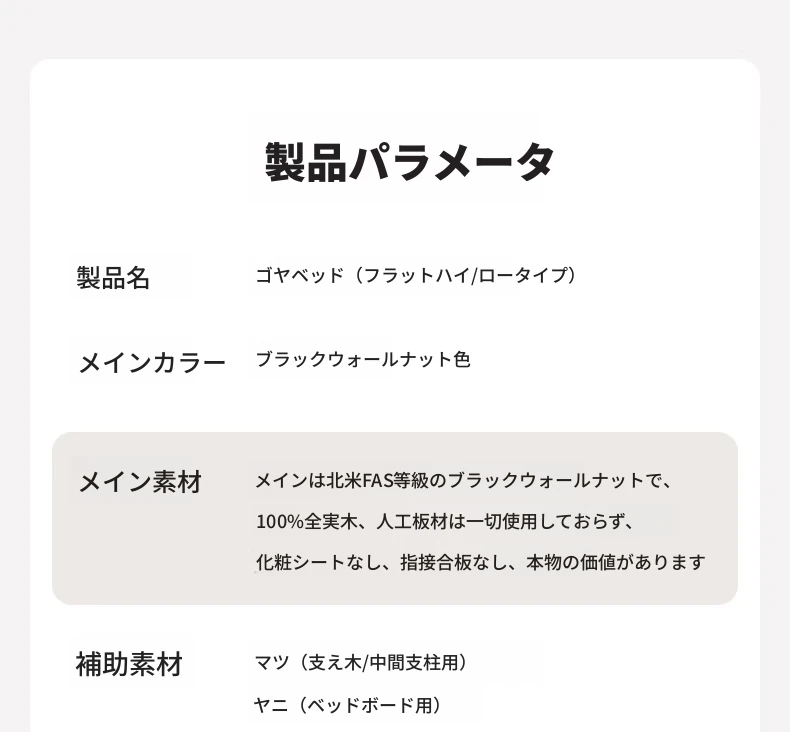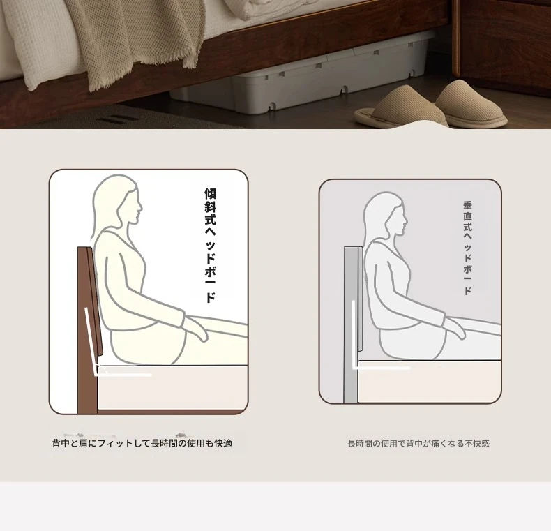 オーガニック無垢材使用!現代的な北米産ウォールナットの1.8mダブルベッド。小型住居にもぴったりなデザインで、主寝室をスタイリッシュに演出します。フラットエッジ仕様で安心感もバッチリ!
