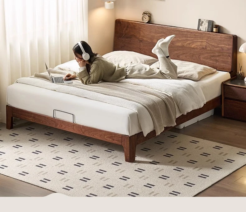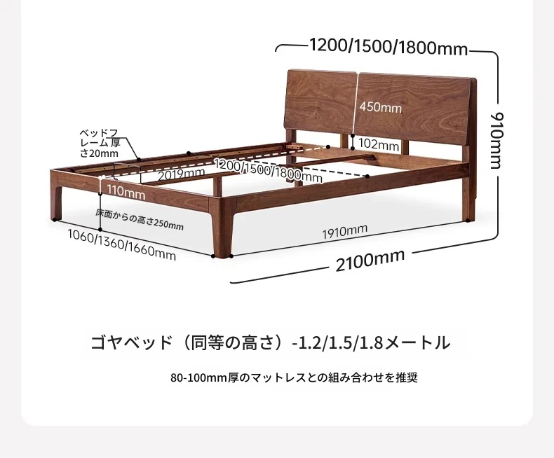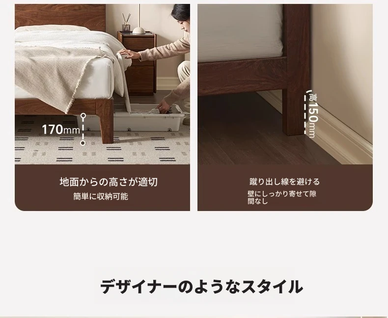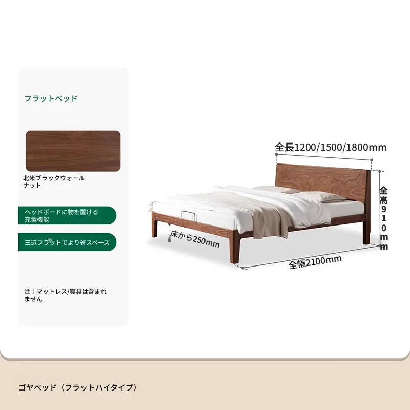 ブラックウォールナット無垢材ベッド(フラットトップ・ハイタイプ)