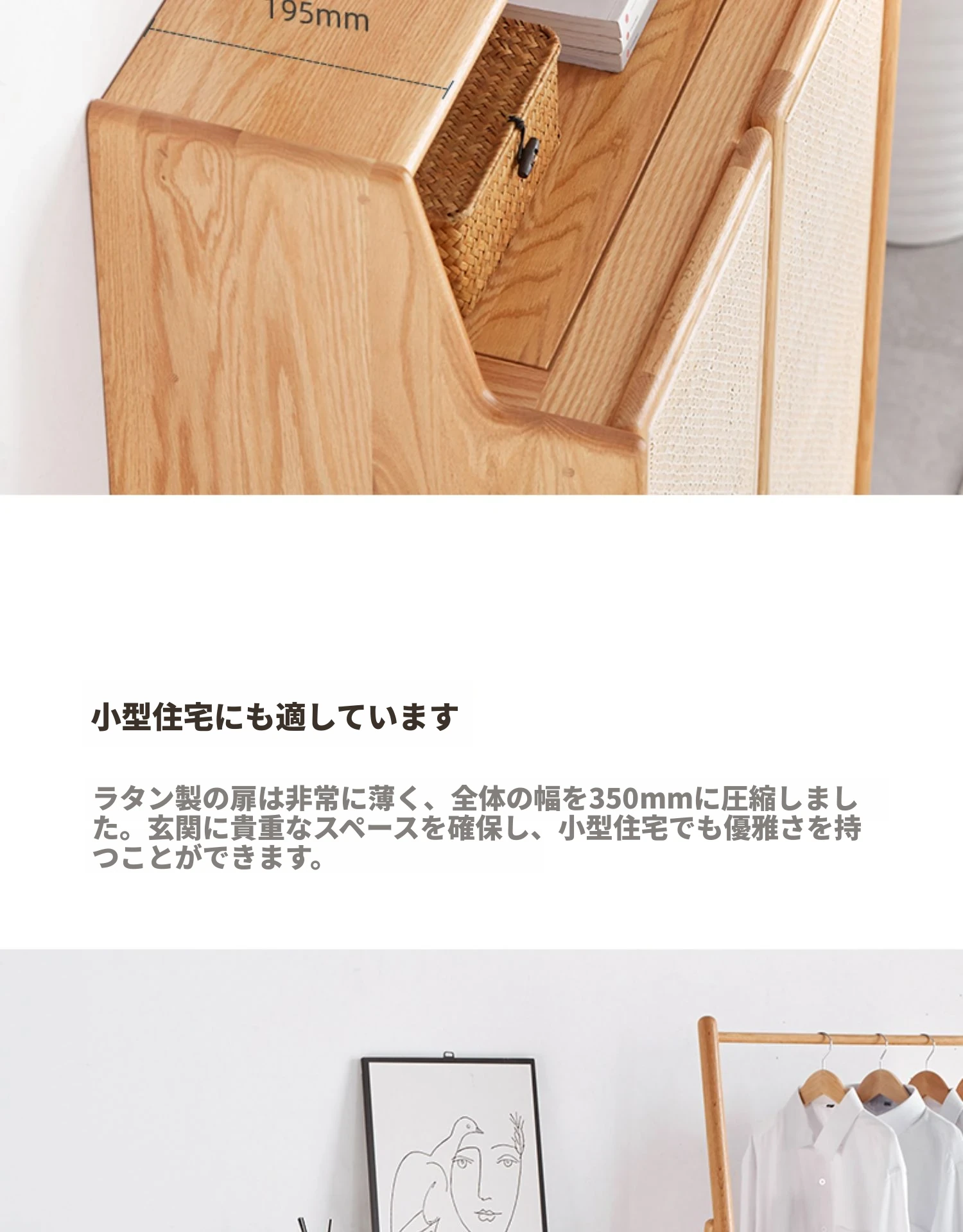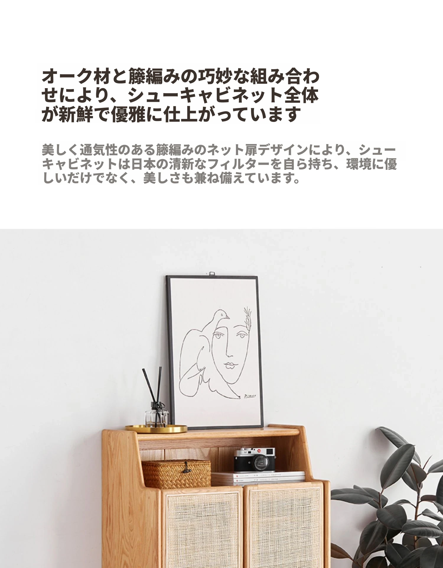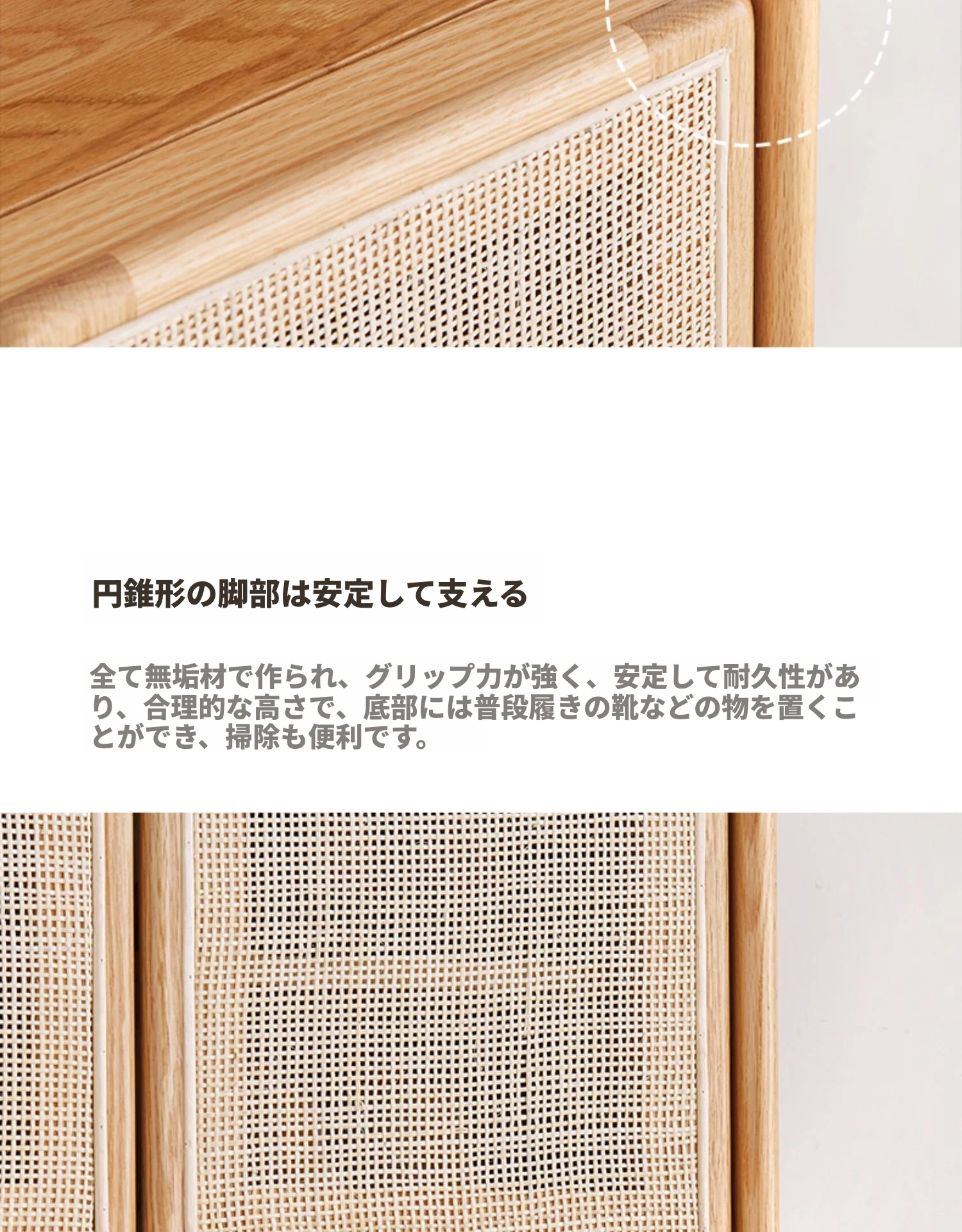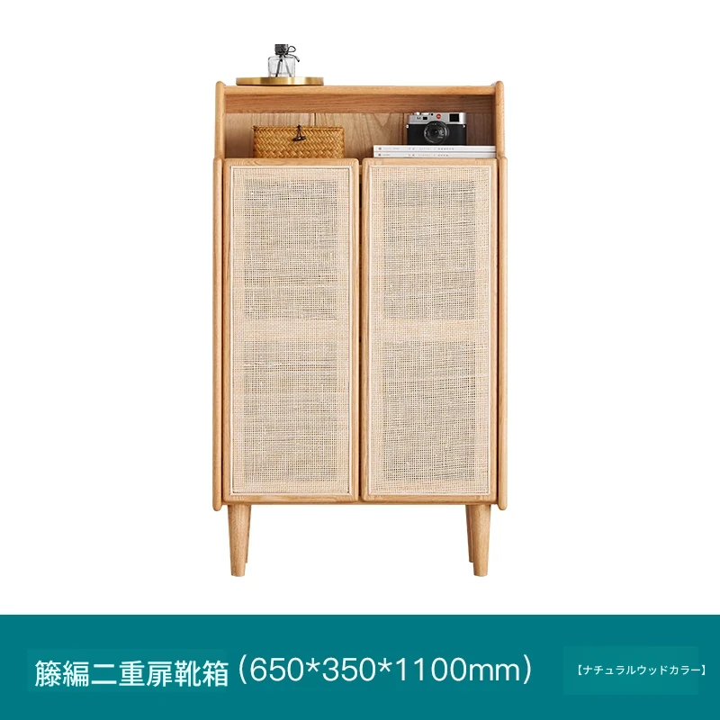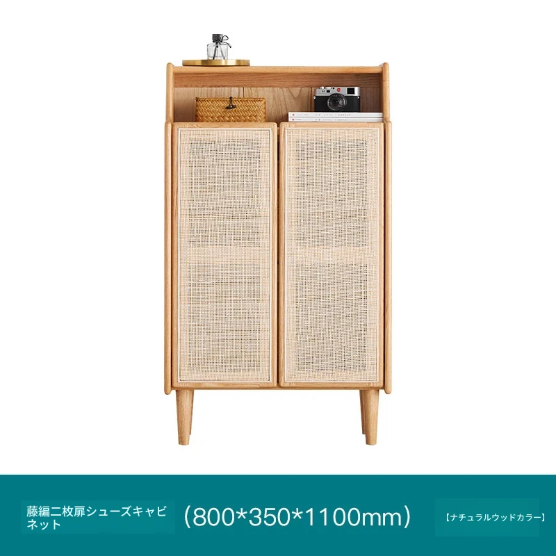 原材料にこだわった全木製シューズキャビネット♪ ラタン編みのスタイリッシュなデザイン!北欧のオーク材使用、モダンでシンプルな収納力抜群の玄関家具!おしゃれな空間を演出します。
