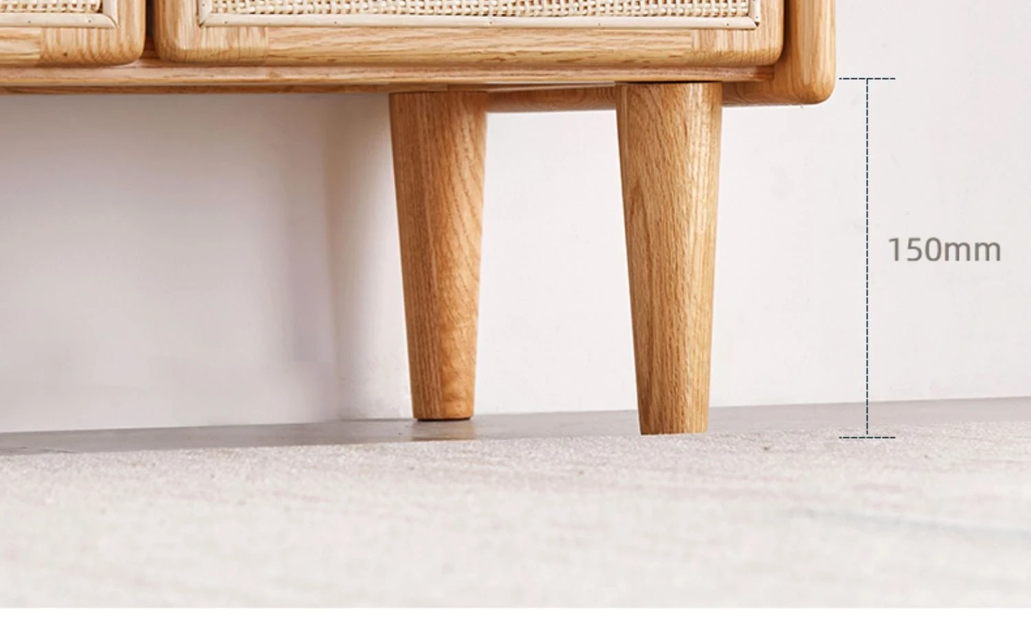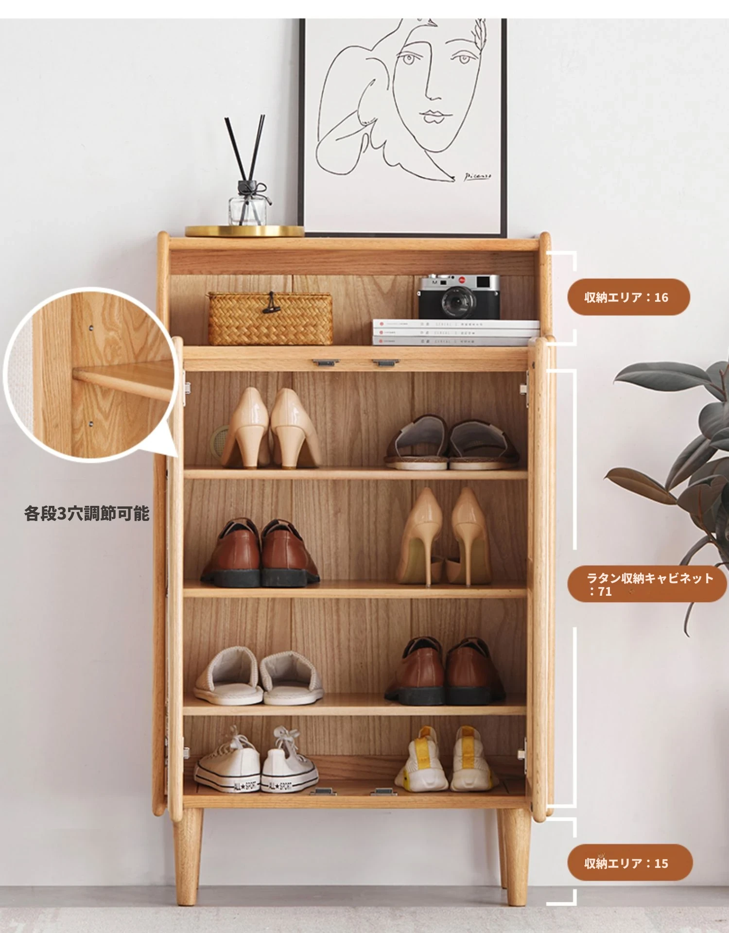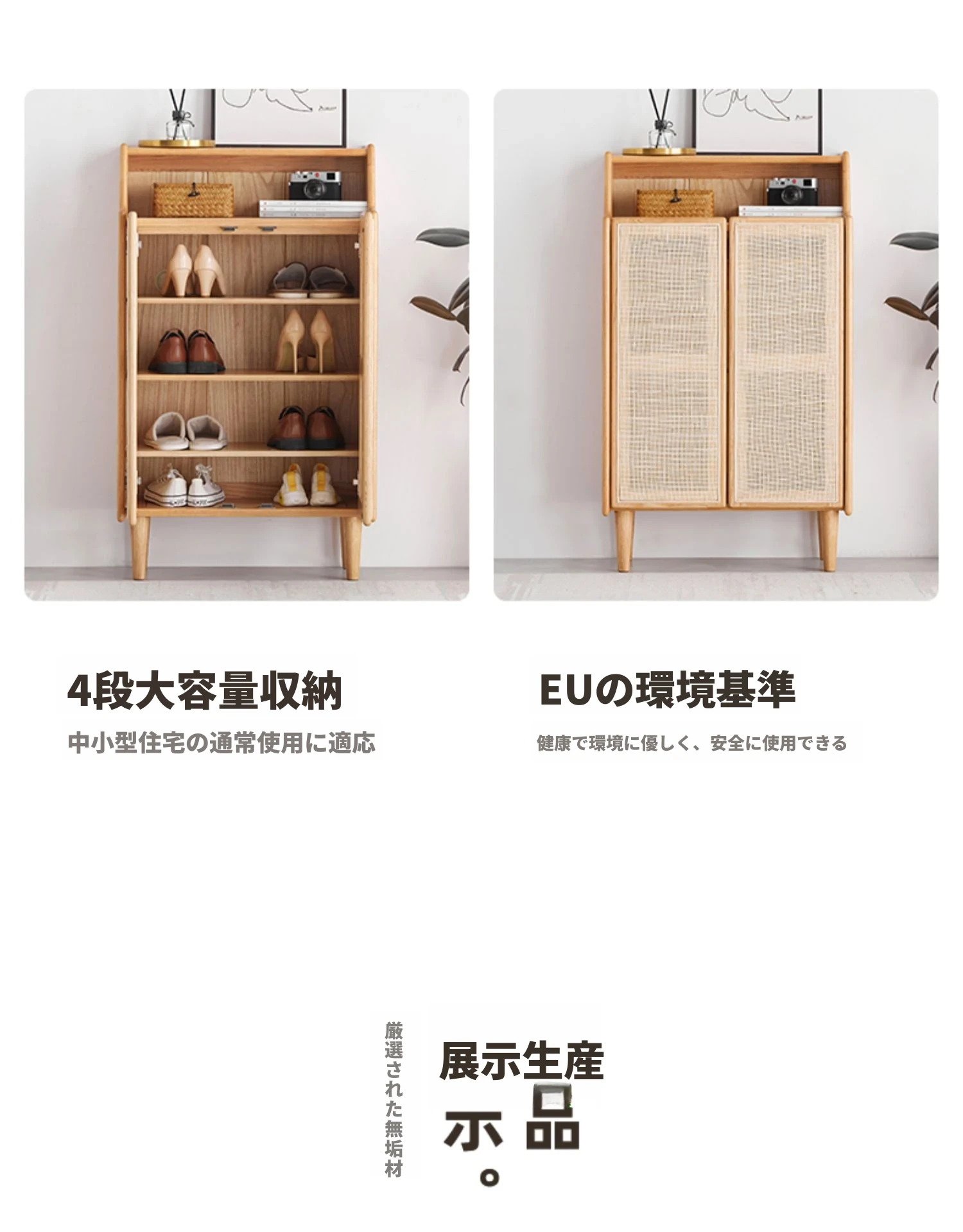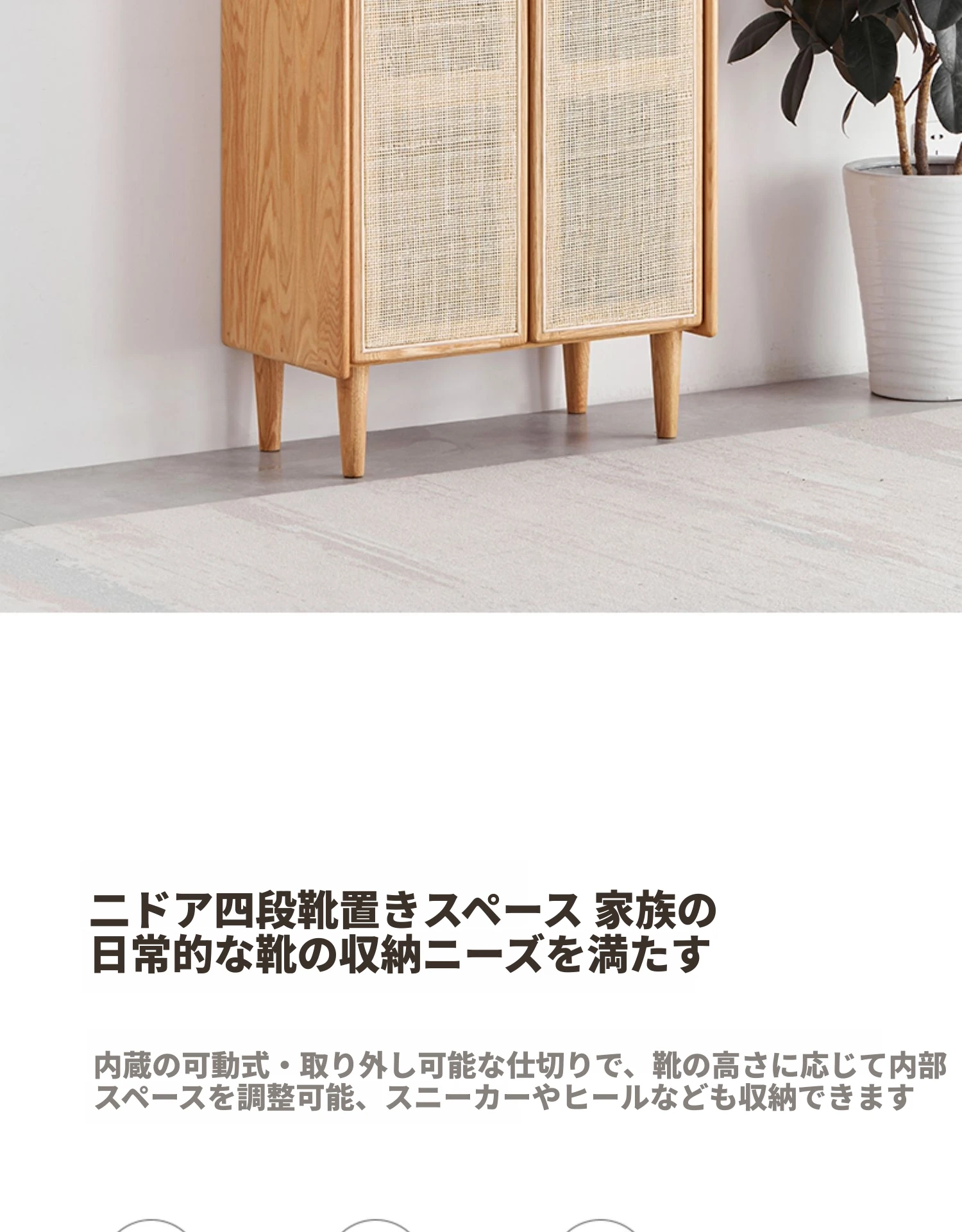 原材料にこだわった全木製シューズキャビネット♪ ラタン編みのスタイリッシュなデザイン!北欧のオーク材使用、モダンでシンプルな収納力抜群の玄関家具!おしゃれな空間を演出します。