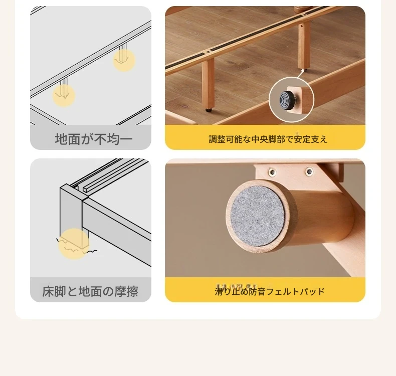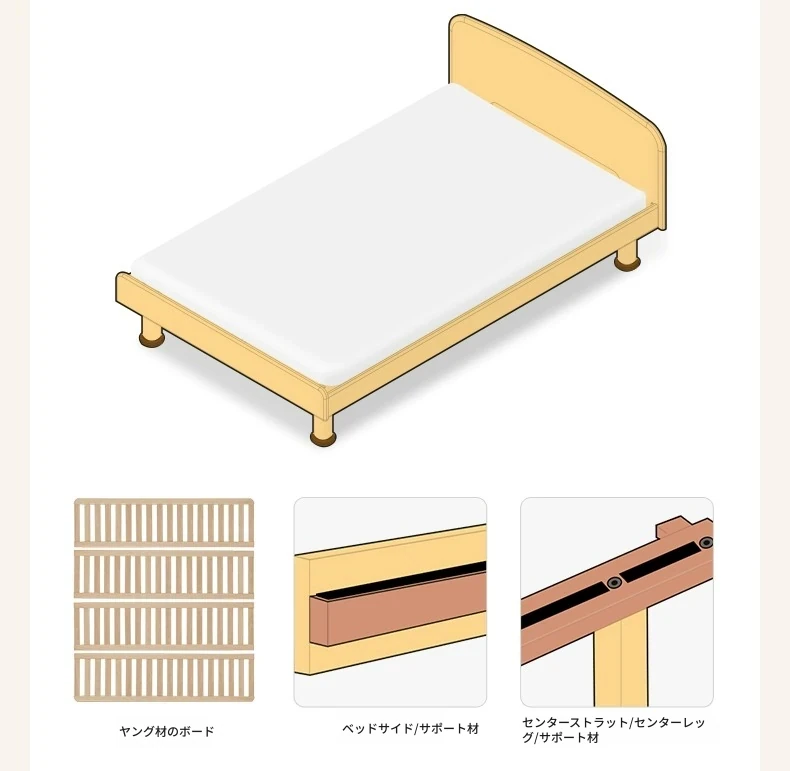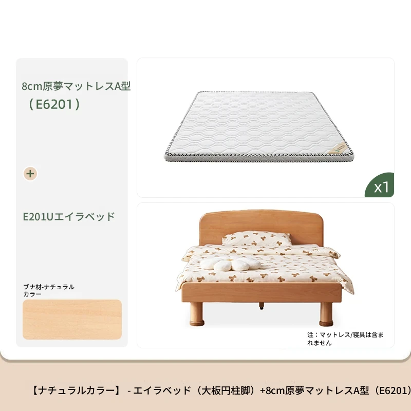 【ナチュラルウッドカラー-ブナ】アイルベッド(大板円柱脚)+8CM原森マットレス(E6201)