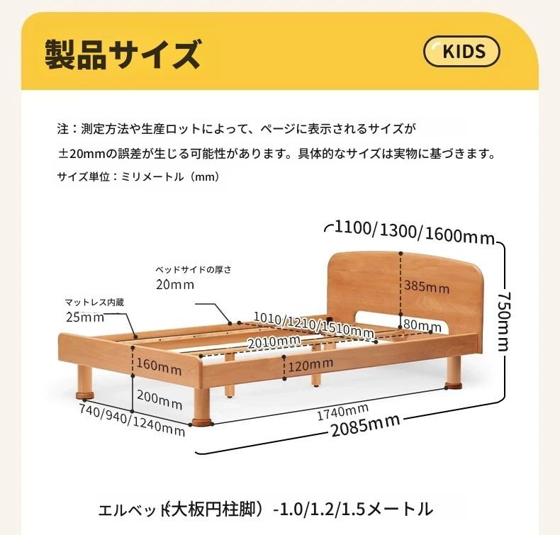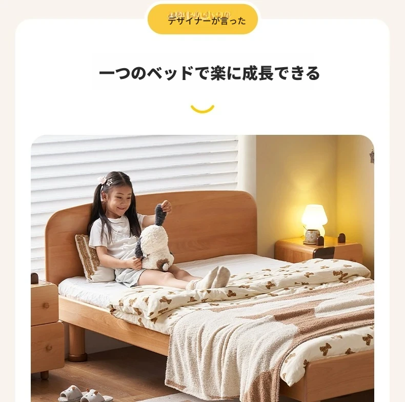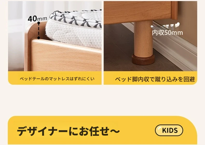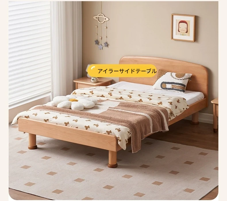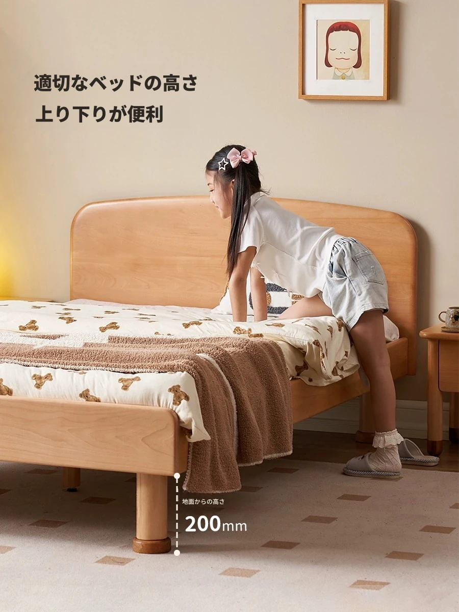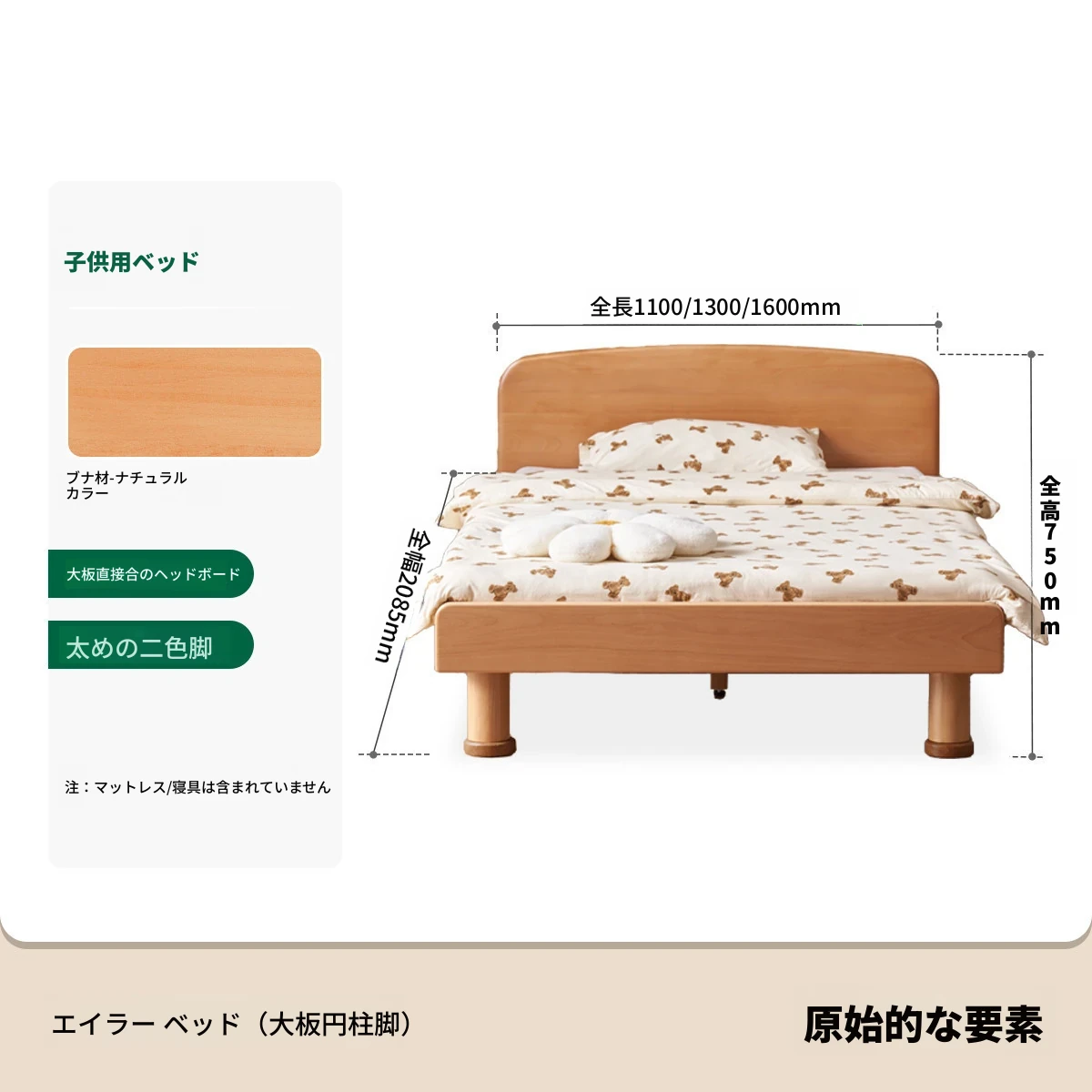 オリジナルエレメント無垢材子供用ベッド|シンプルでスタイリッシュなブナ材製|男子&女子に最適|ティーンエイジャー向け|コンパクトアパートメントにもぴったりなシングルベッド【夢の寝室を演出】