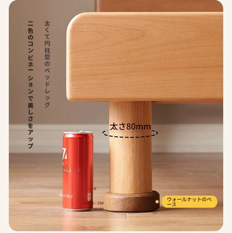 【ナチュラルウッドカラー-サンプル木】アイルベッド(大板円柱脚)