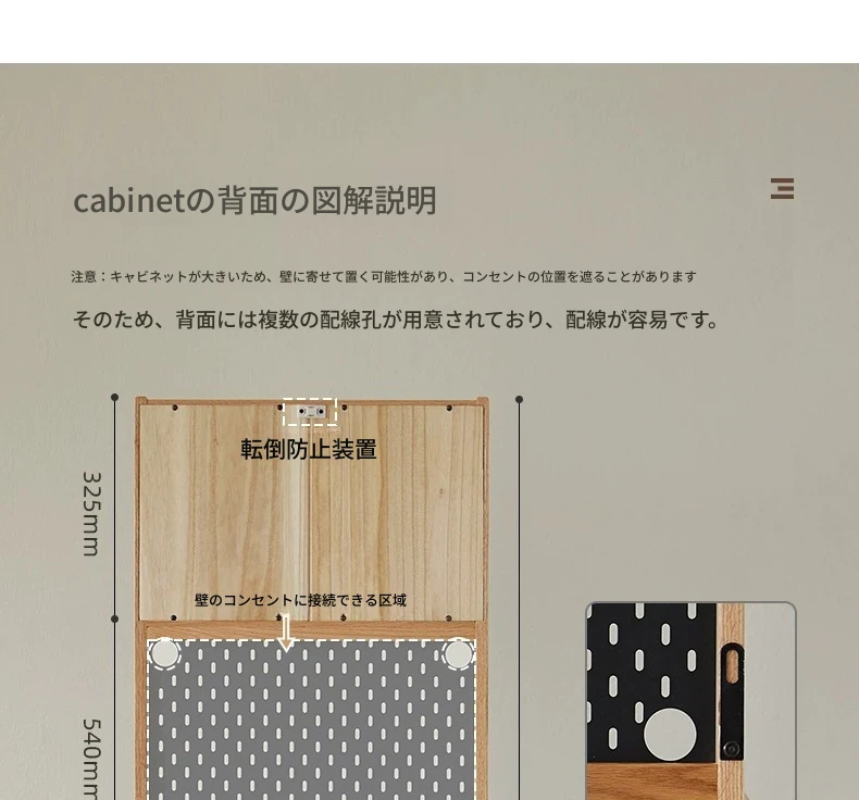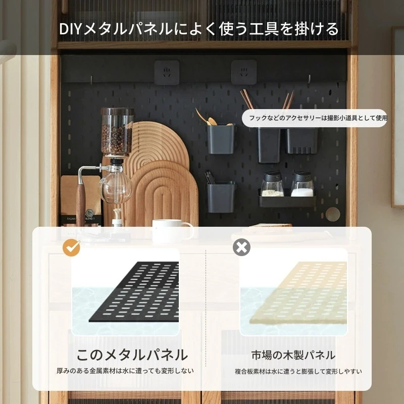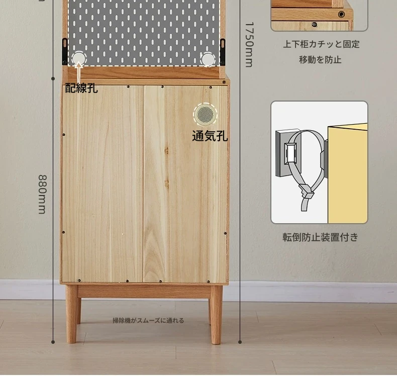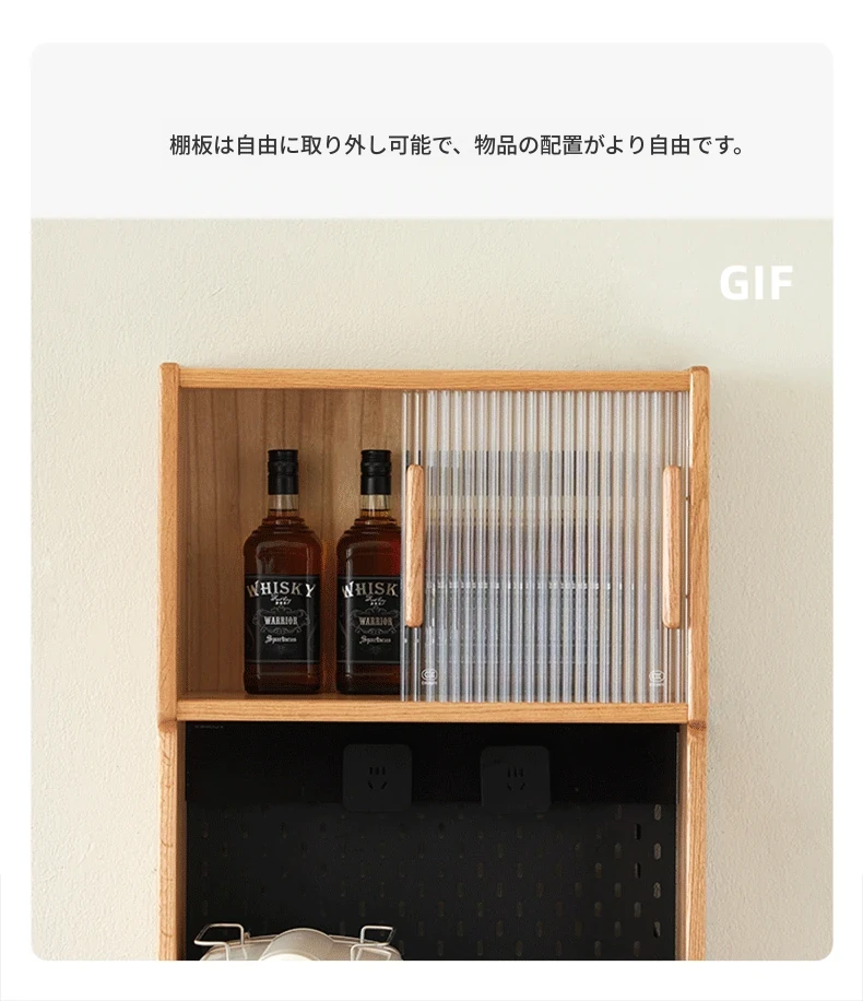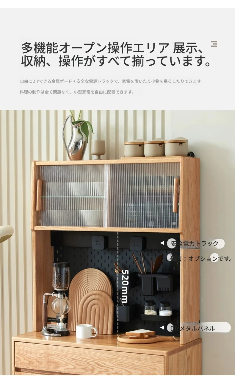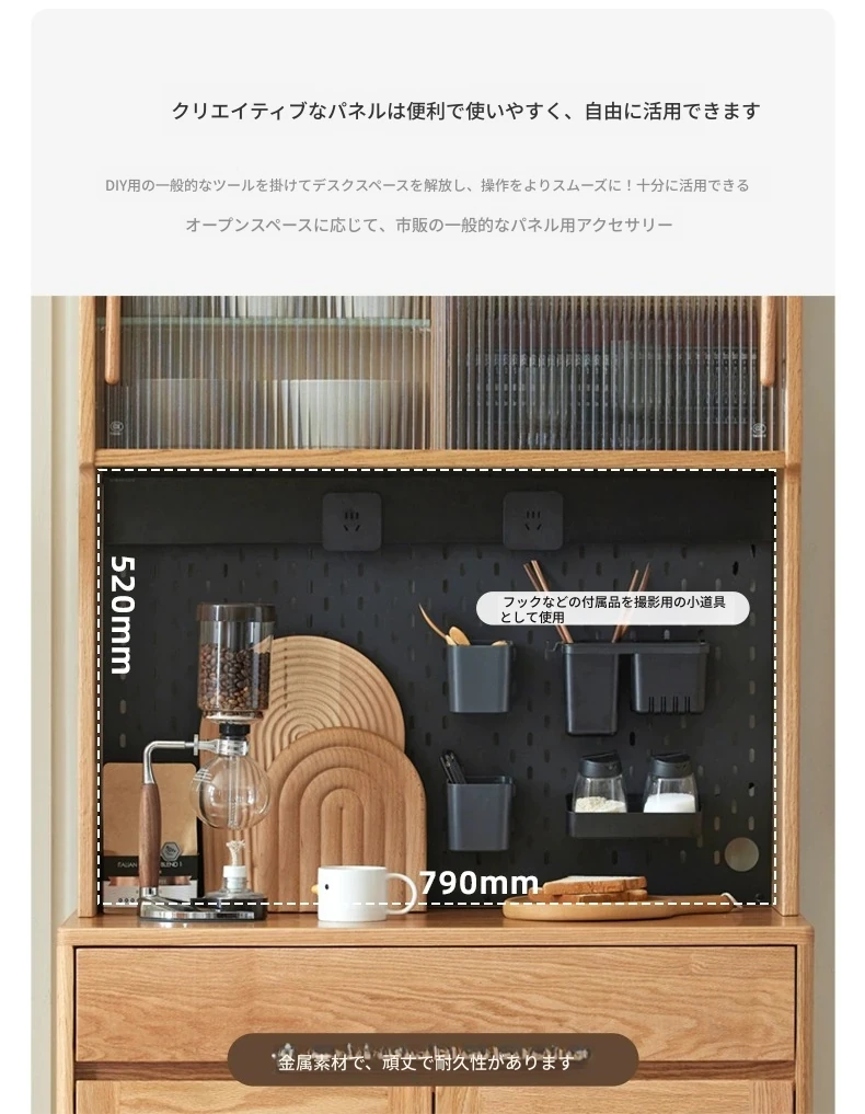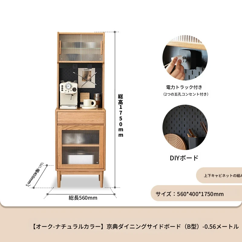 【オーク-ナチュラルウッド-上下段】0.56メートルダイニングサイドキャビネット(ピンボード+電源レール)(560*400*1750mm