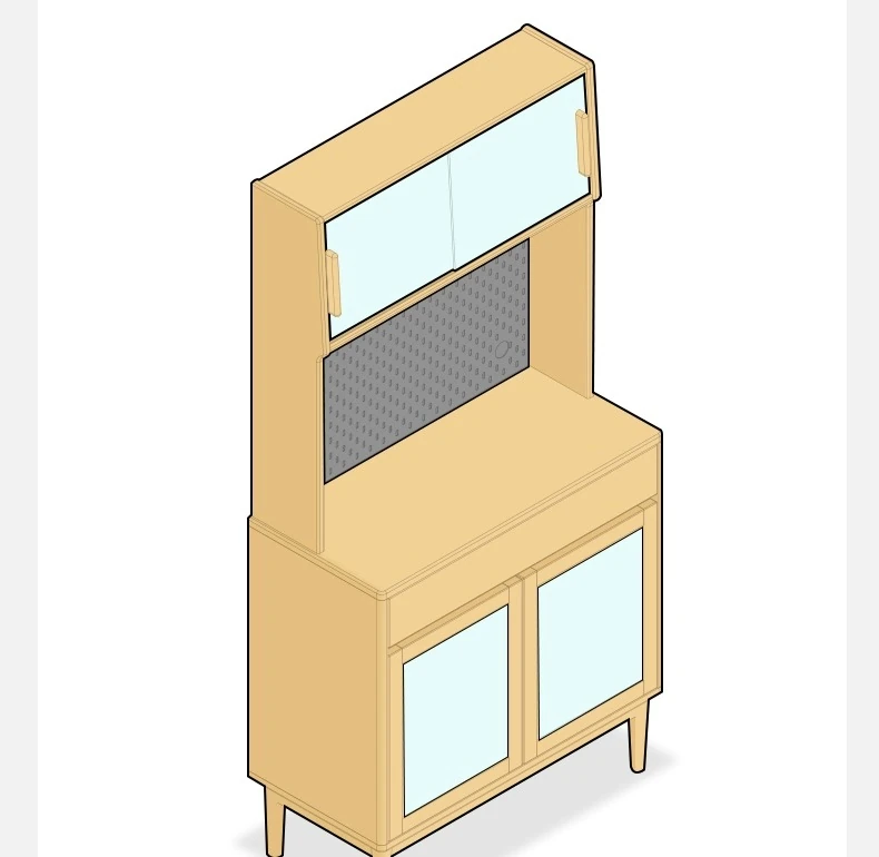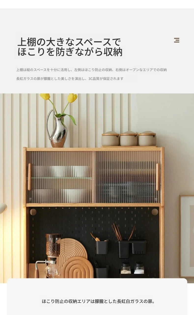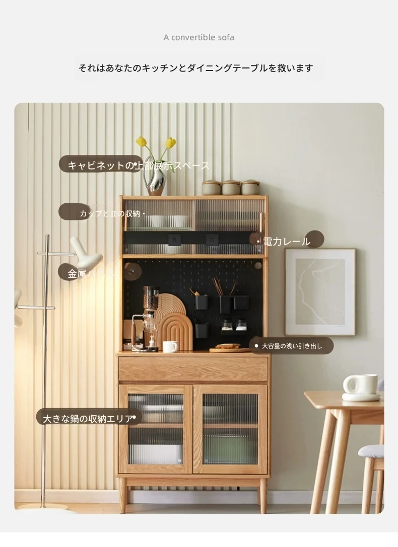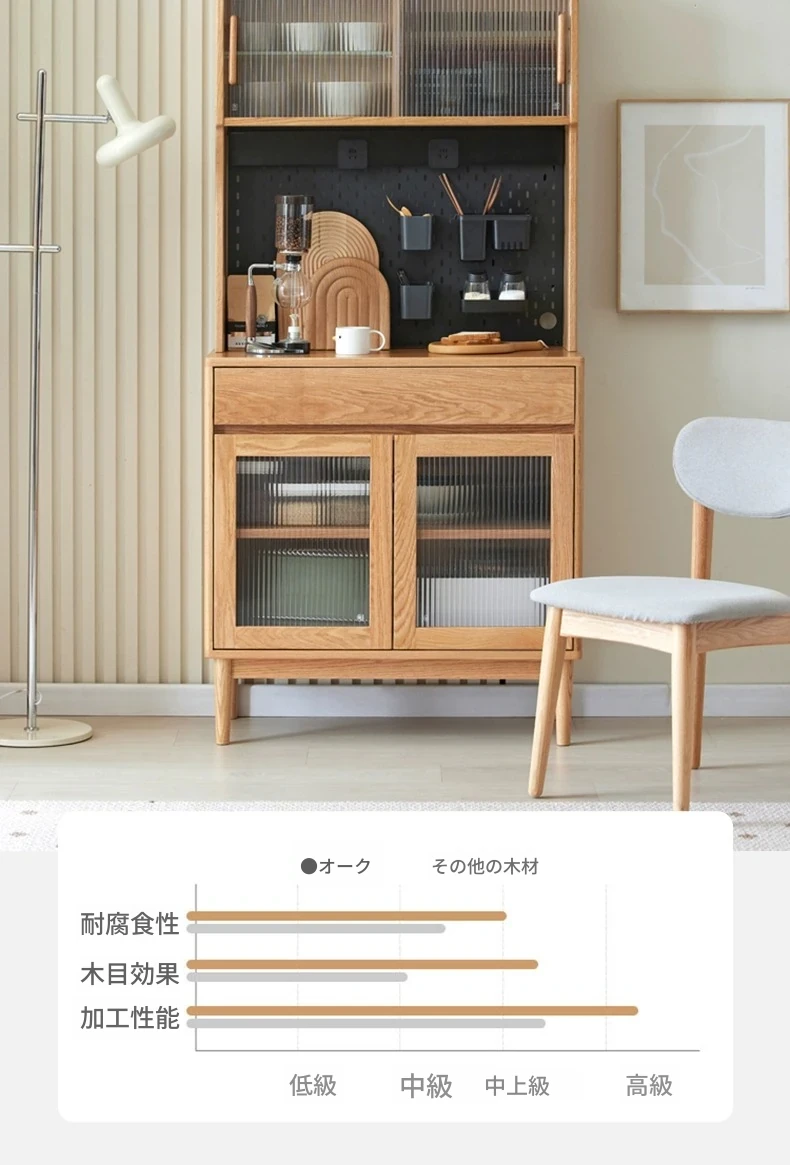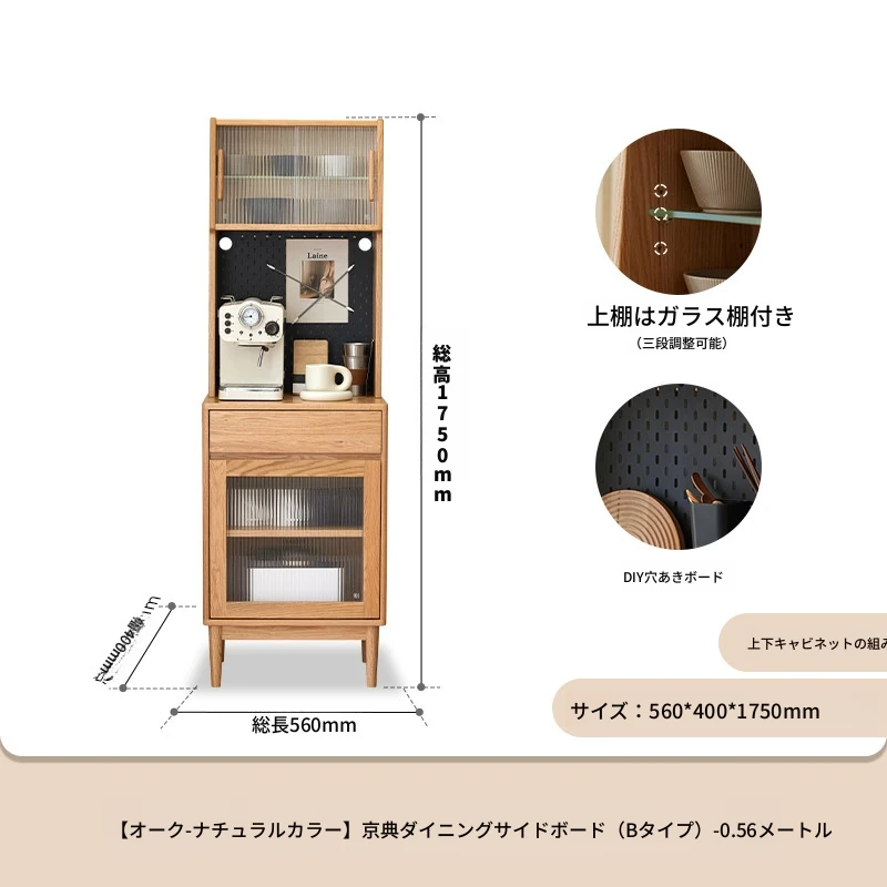 【オーク-ナチュラルウッド-上下段】0.56メートルダイニングサイドキャビネット(ピンボード)(560*400*1750mm