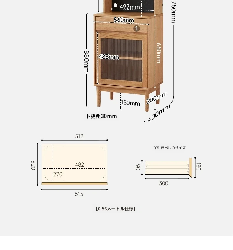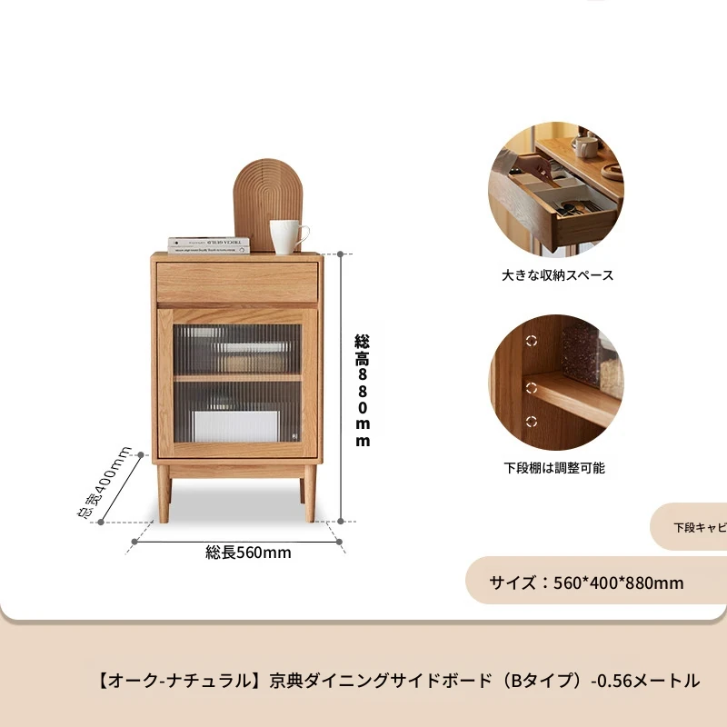 【オーク-ナチュラルウッド-下段】0.56メートルダイニングサイドキャビネット(560*400*880mm
