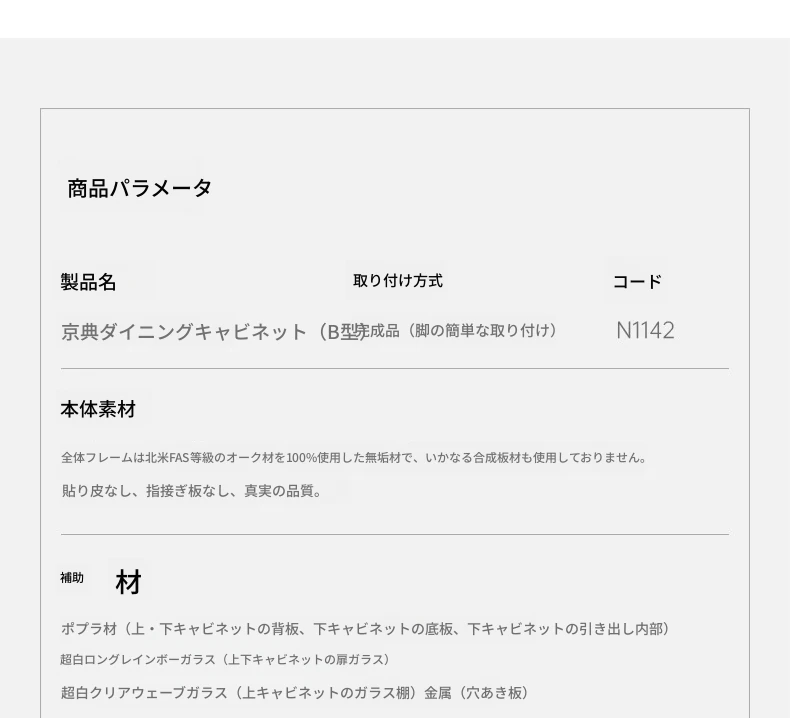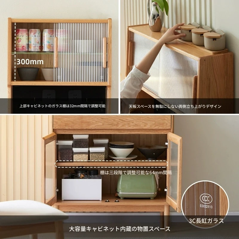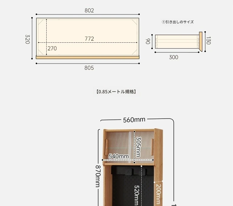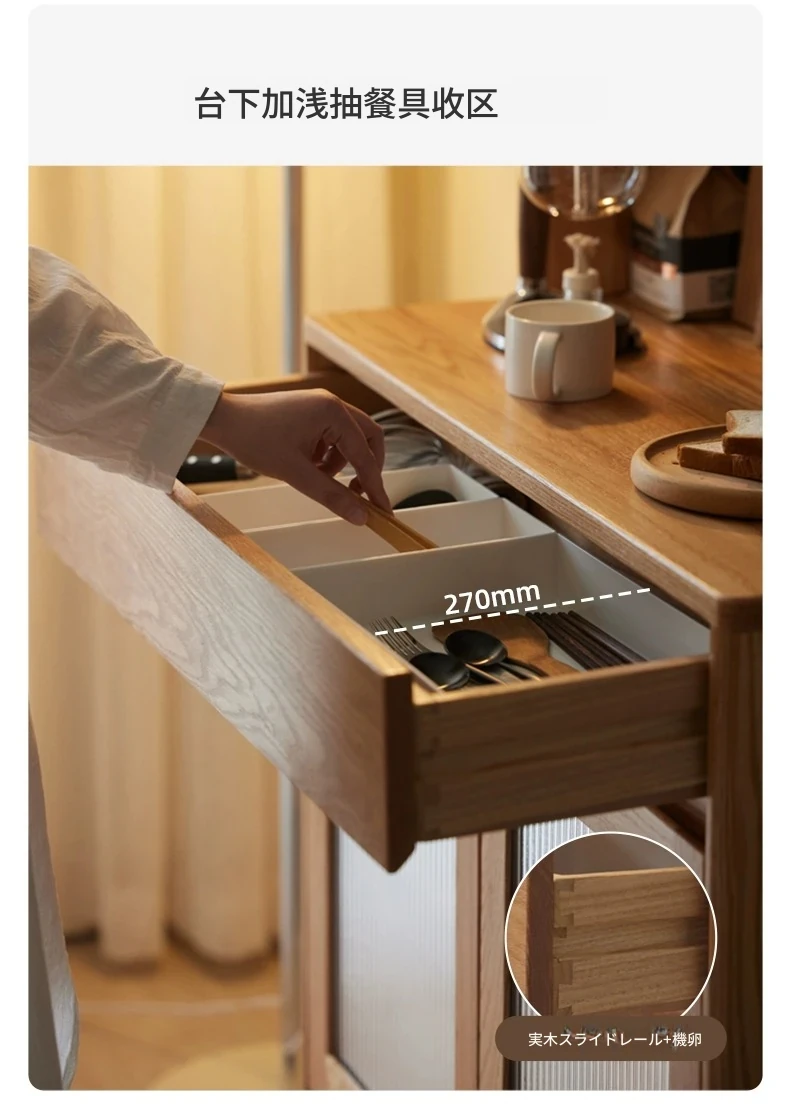 【オーク-ナチュラルウッド-下段】0.85メートルダイニングサイドキャビネット(850*400*880mm