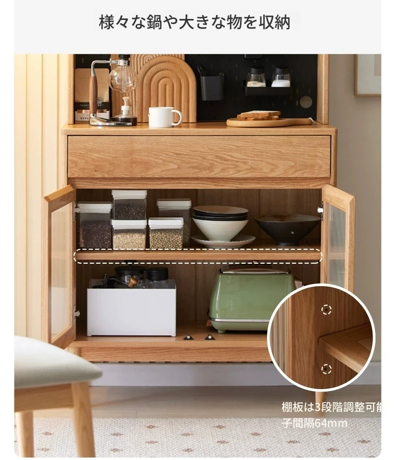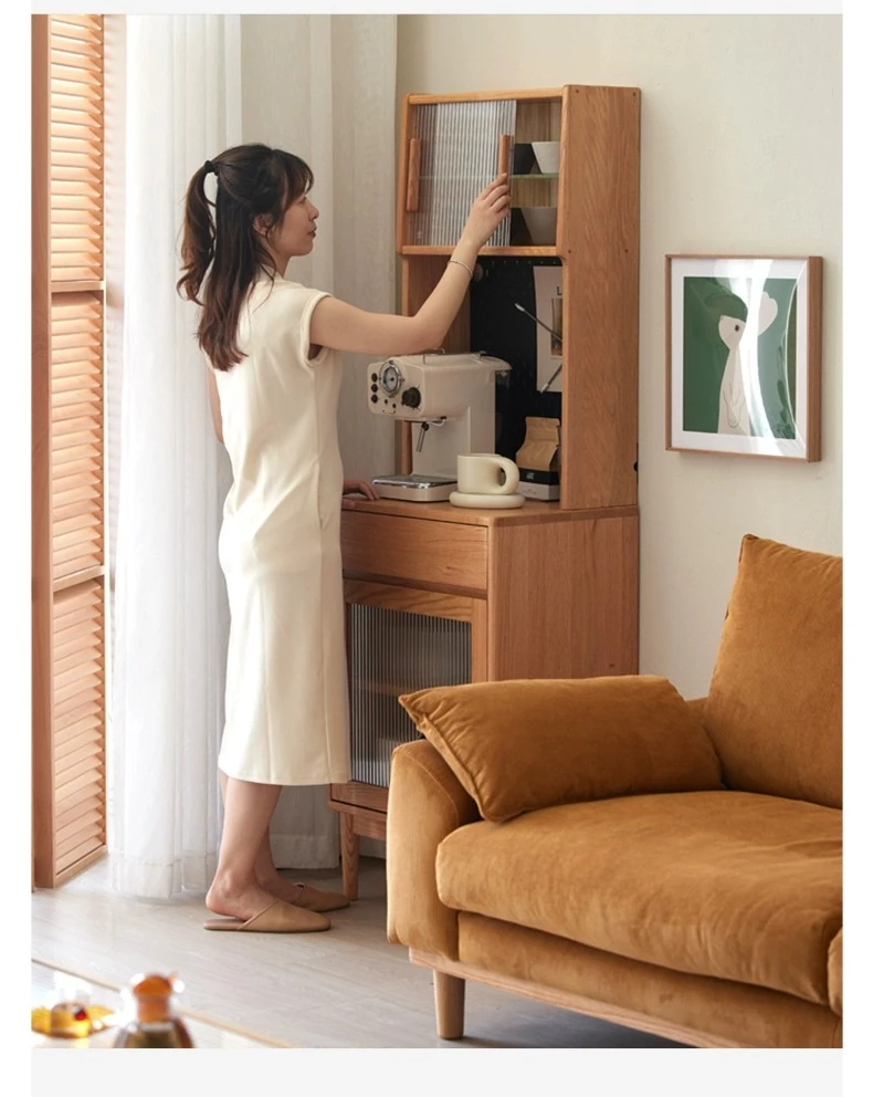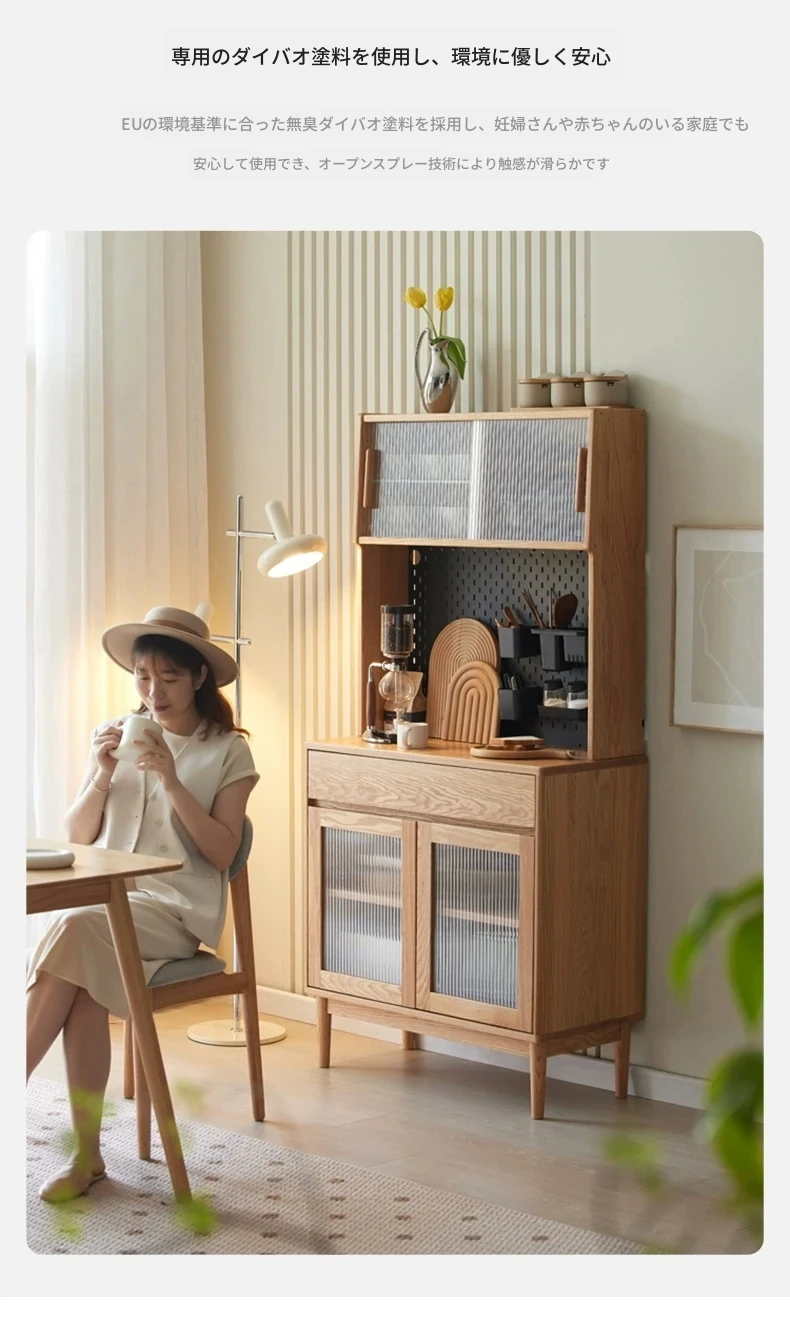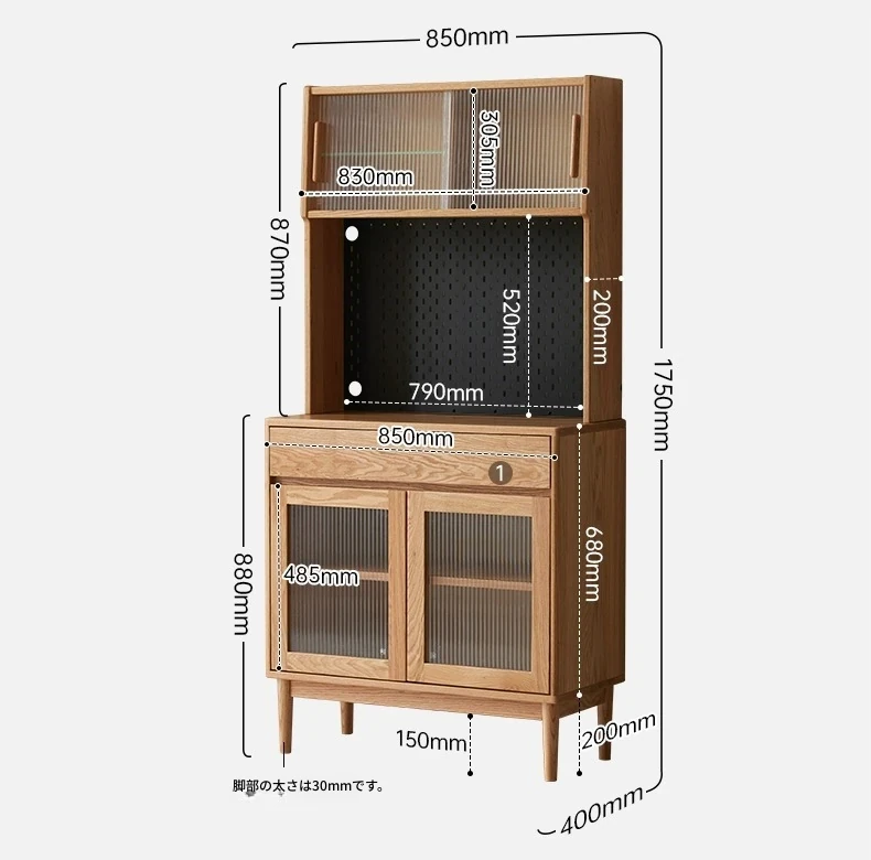 【オーク-ナチュラルウッド-上下段】0.85メートルダイニングサイドキャビネット(ピンボード)(850*400*1750mm
