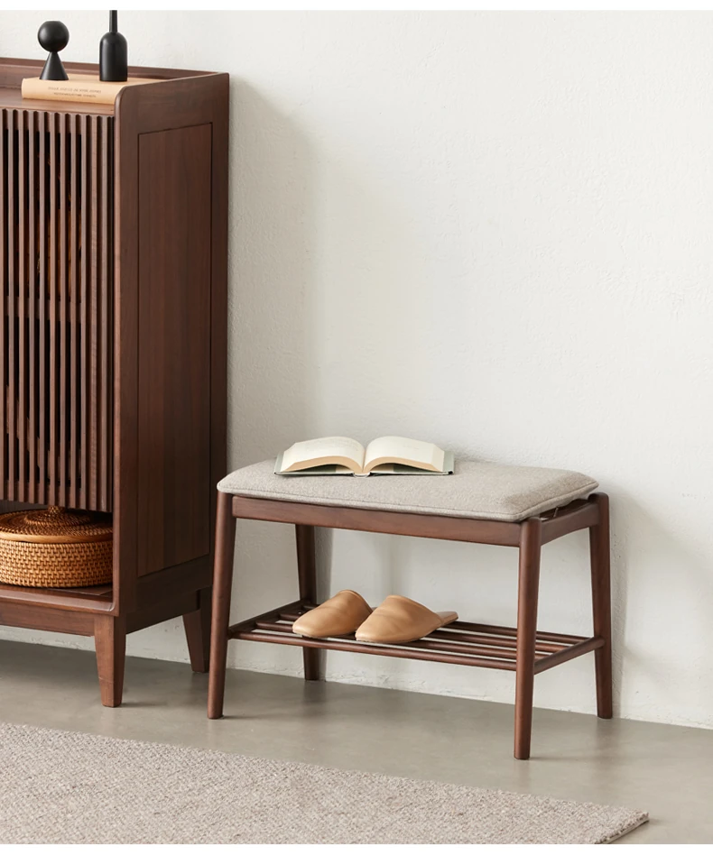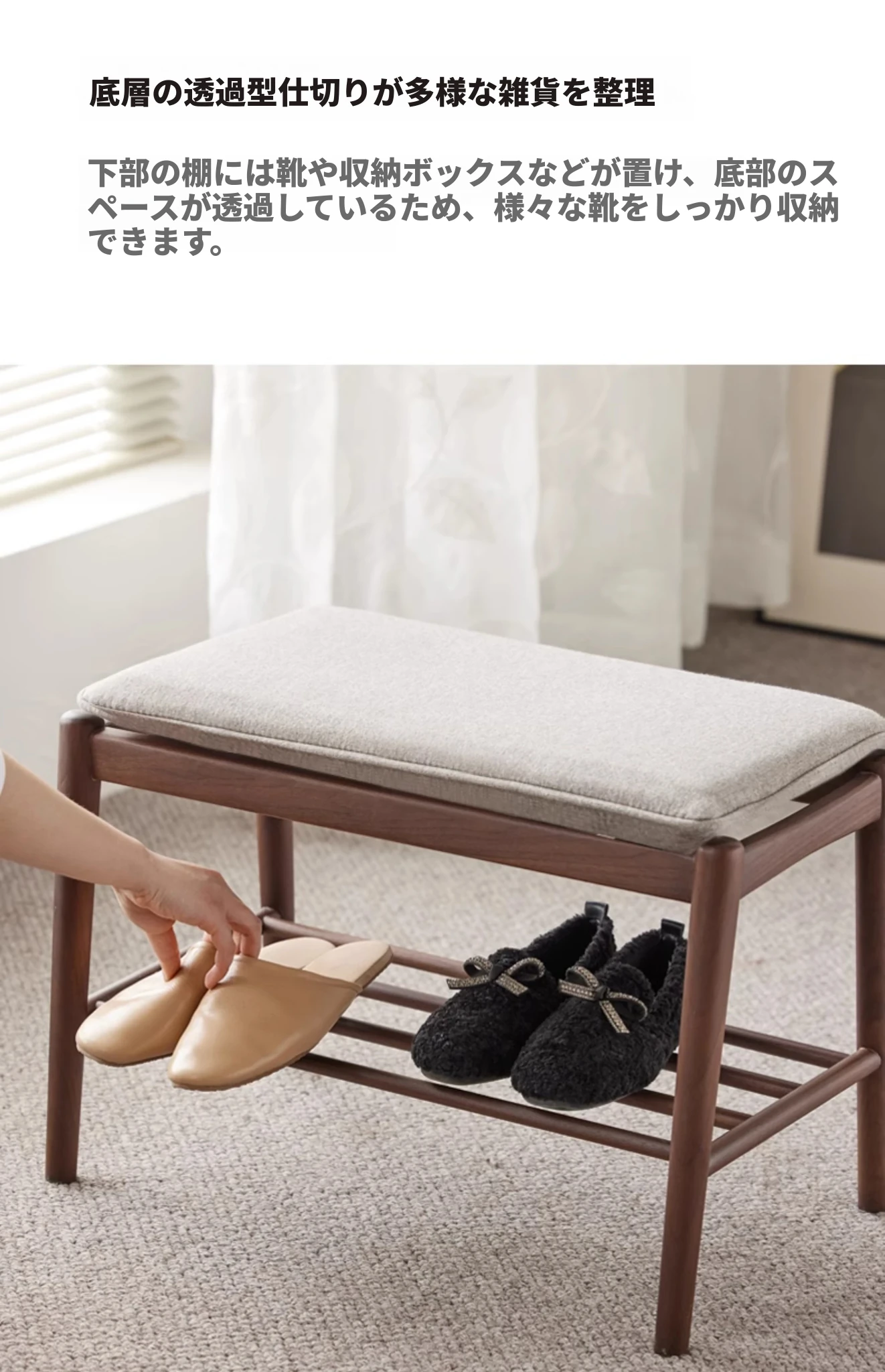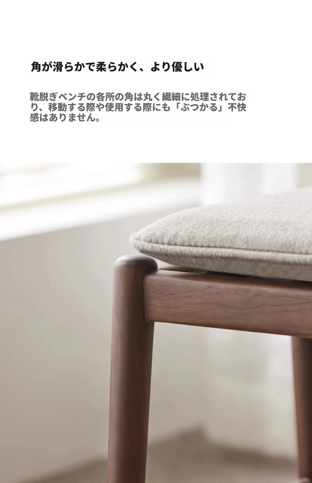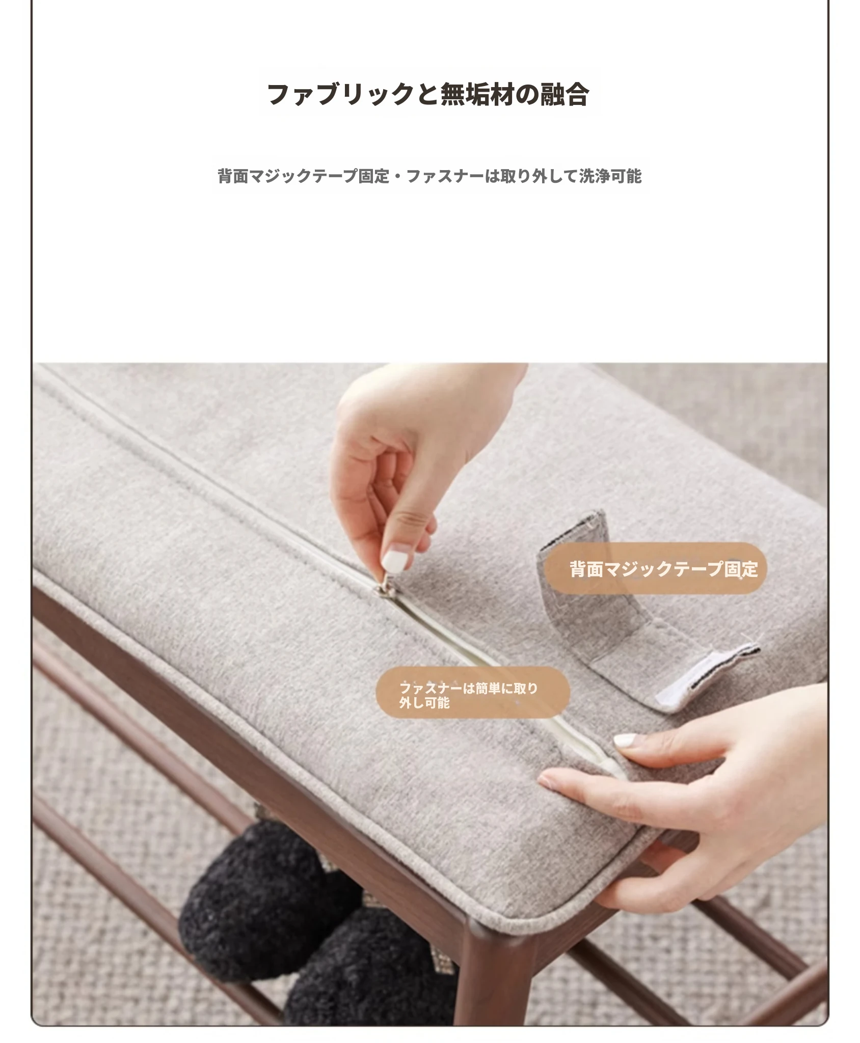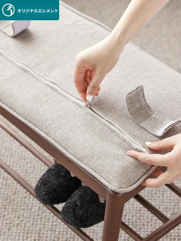 オリジナル エレメント無垢材シューズベンチ ブラックウォールナット製 玄関用ソフトパッケージ付きシューズラック一体型 おしゃれで便利な靴置き台!快適な入室体験を提供します。