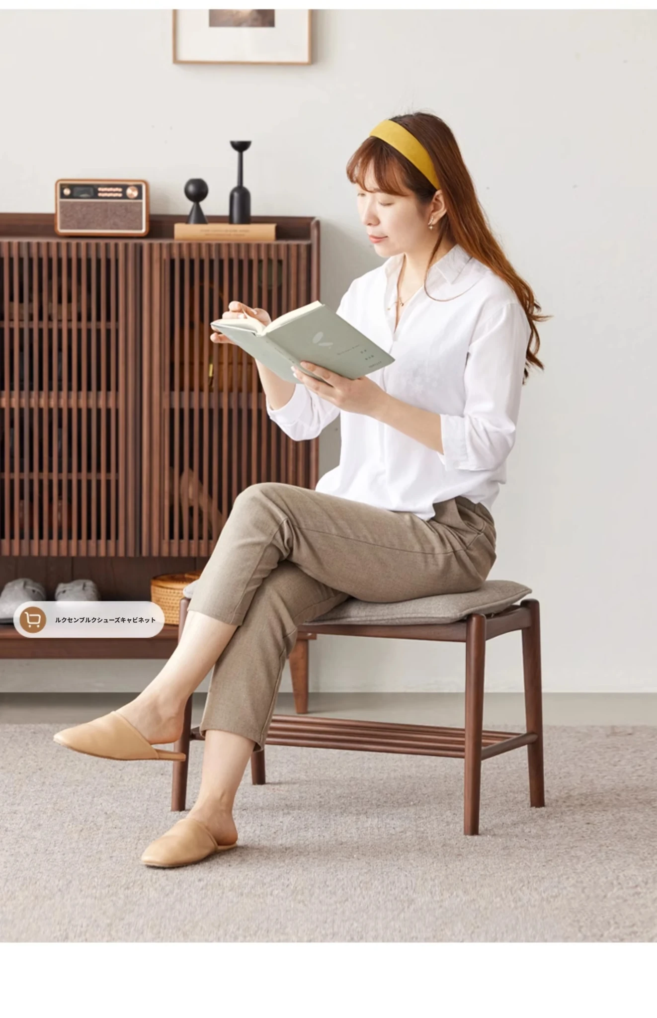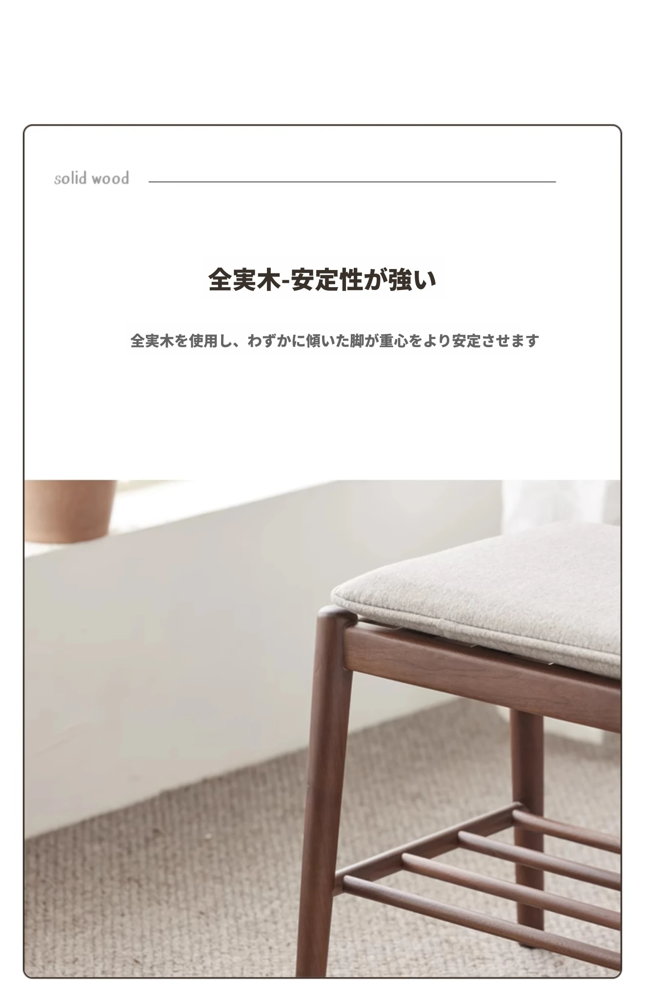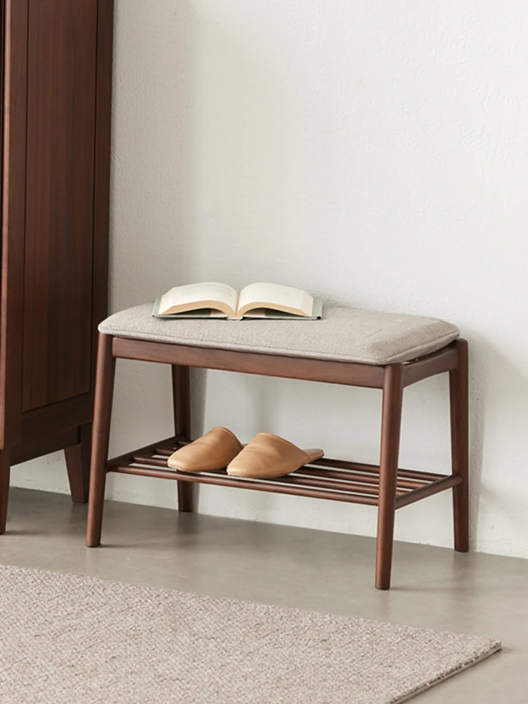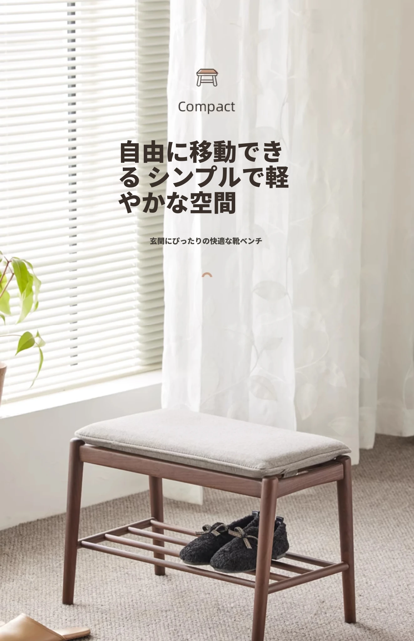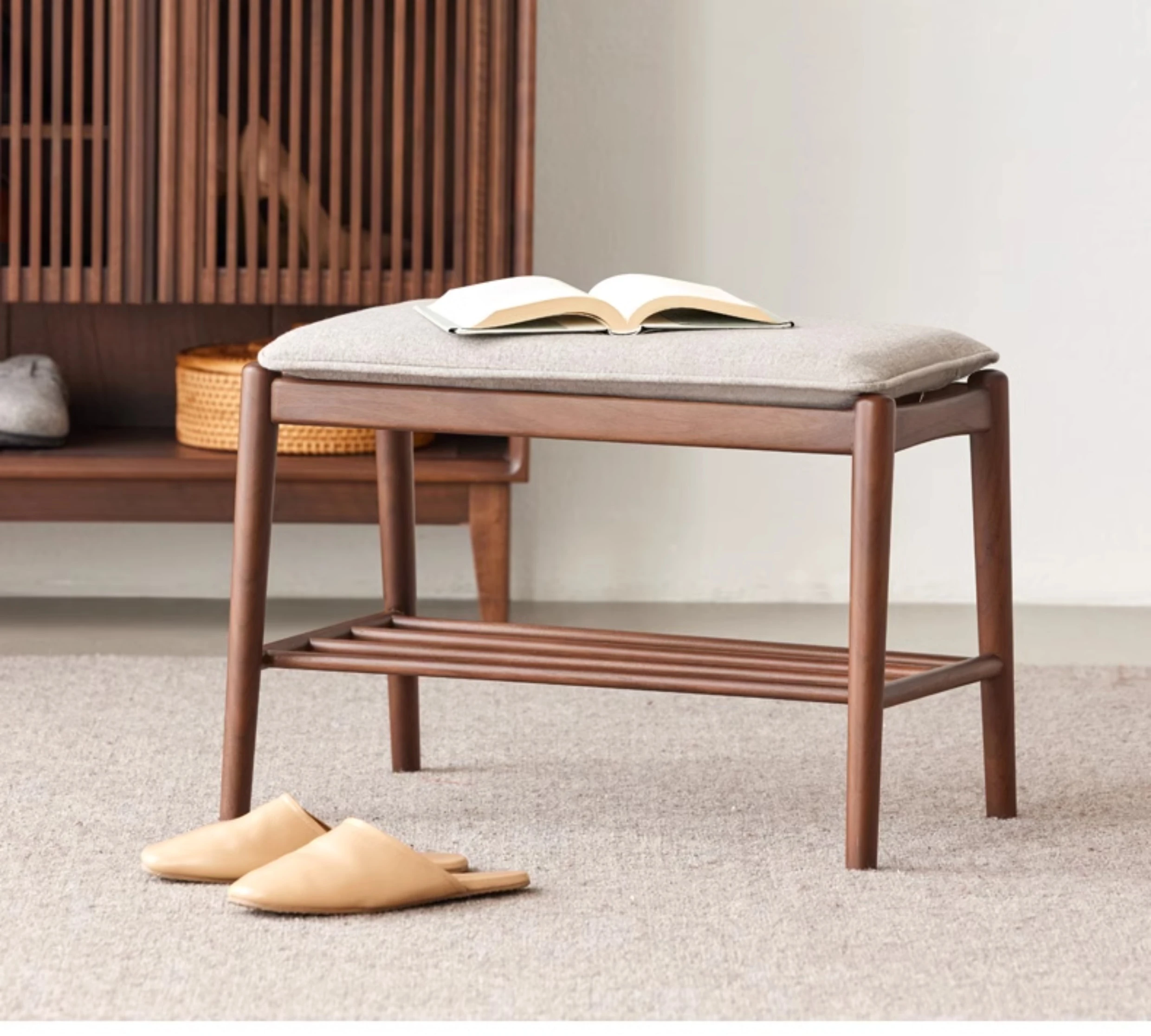 オリジナル エレメント無垢材シューズベンチ ブラックウォールナット製 玄関用ソフトパッケージ付きシューズラック一体型 おしゃれで便利な靴置き台!快適な入室体験を提供します。
