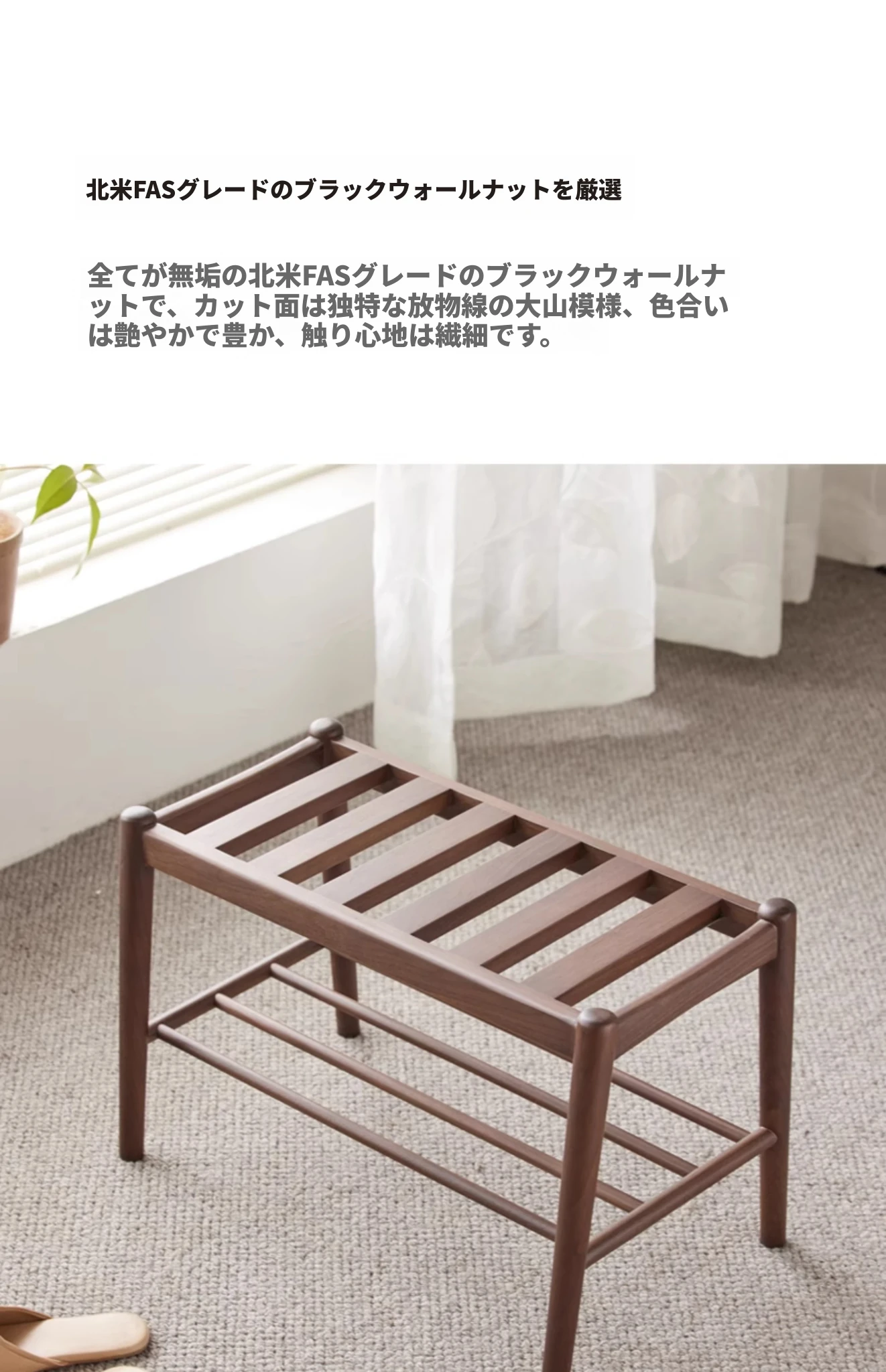 北米ブラックウォールナット0.6m靴ベンチ (600*345*420mm)
