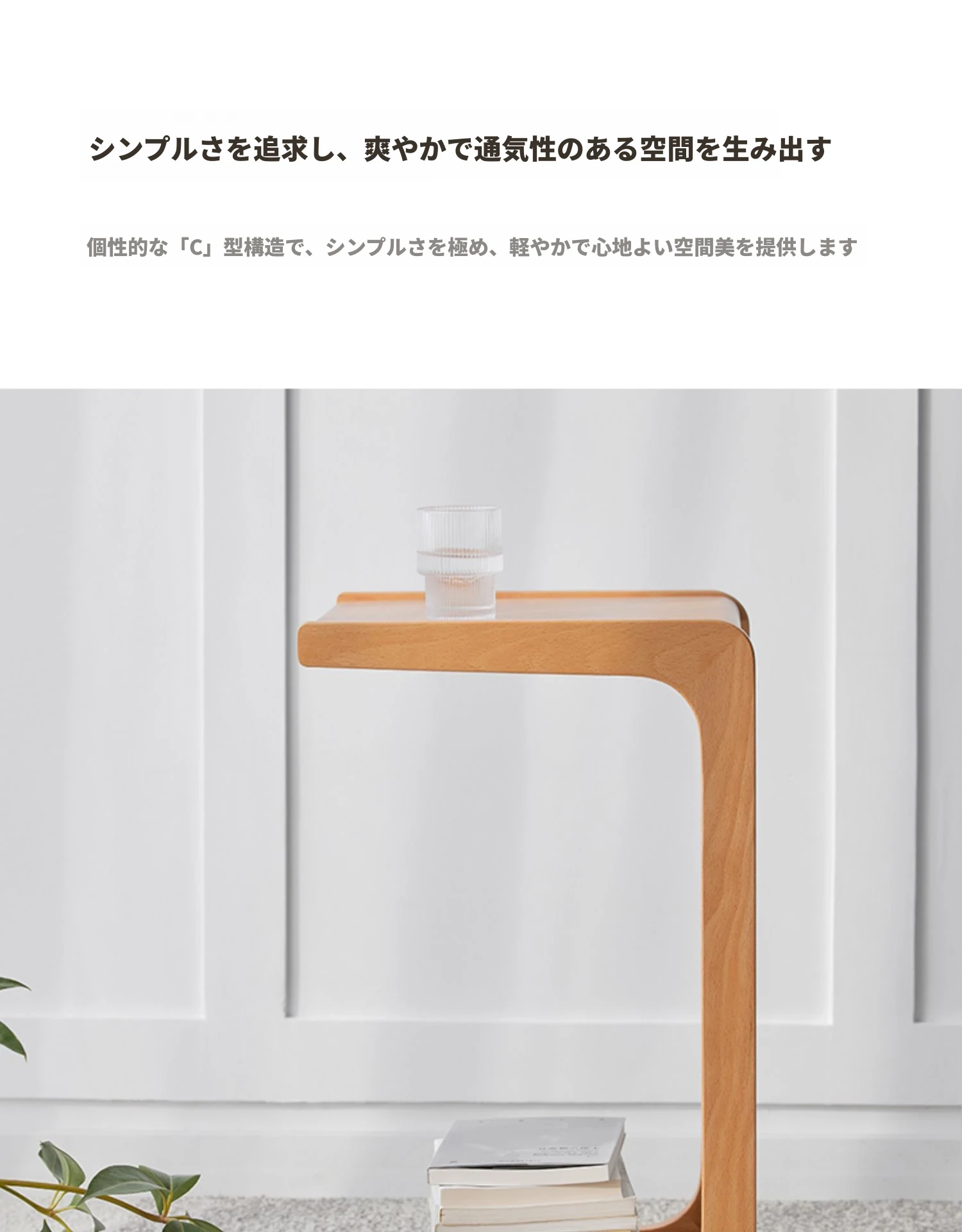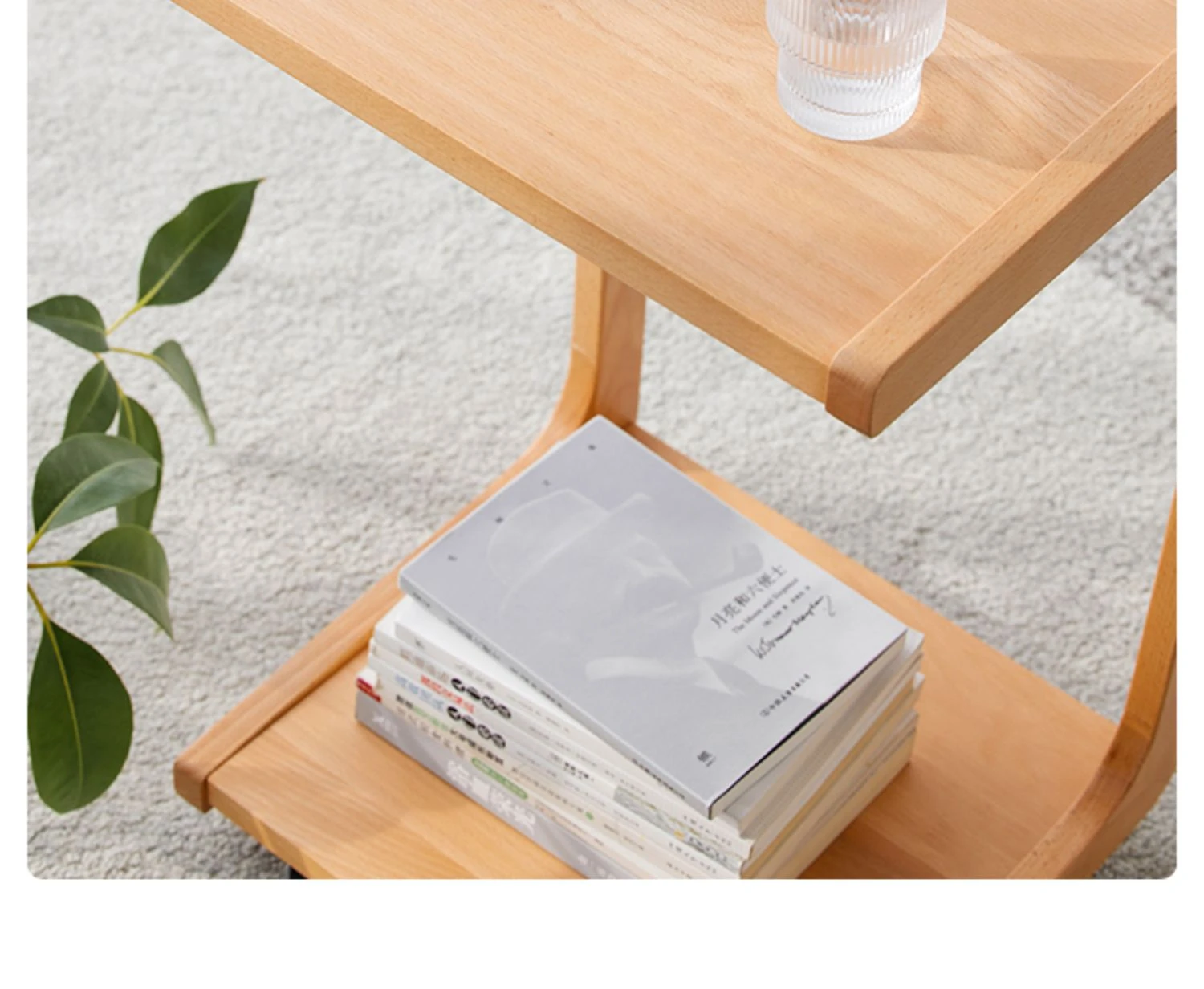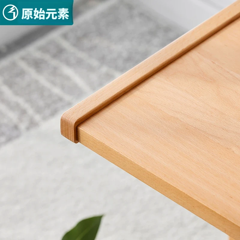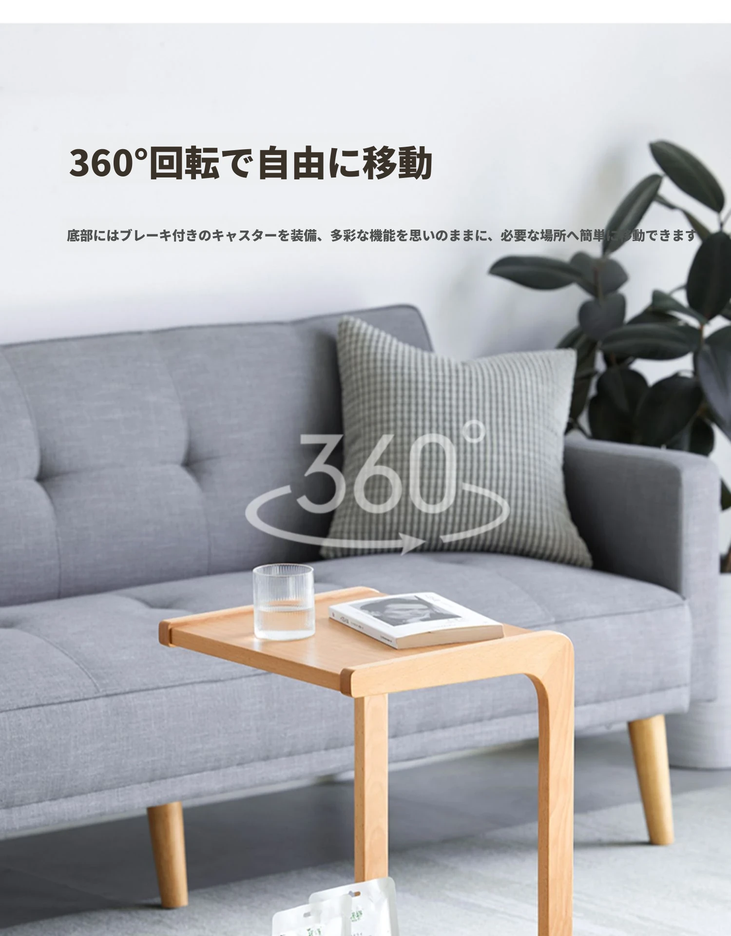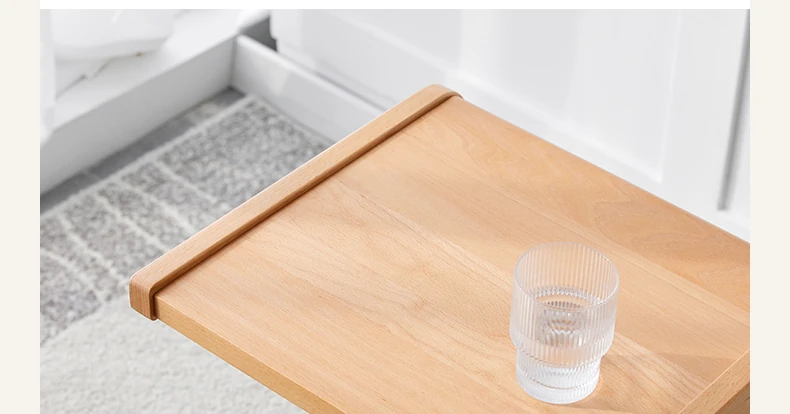 原始原素無垢材利用の北欧スタイル・シンプルなソファサイドテーブル - ビーチウッド製・C型テーブル、キャスター付きで移動便利!ベッドサイドで使いやすい。