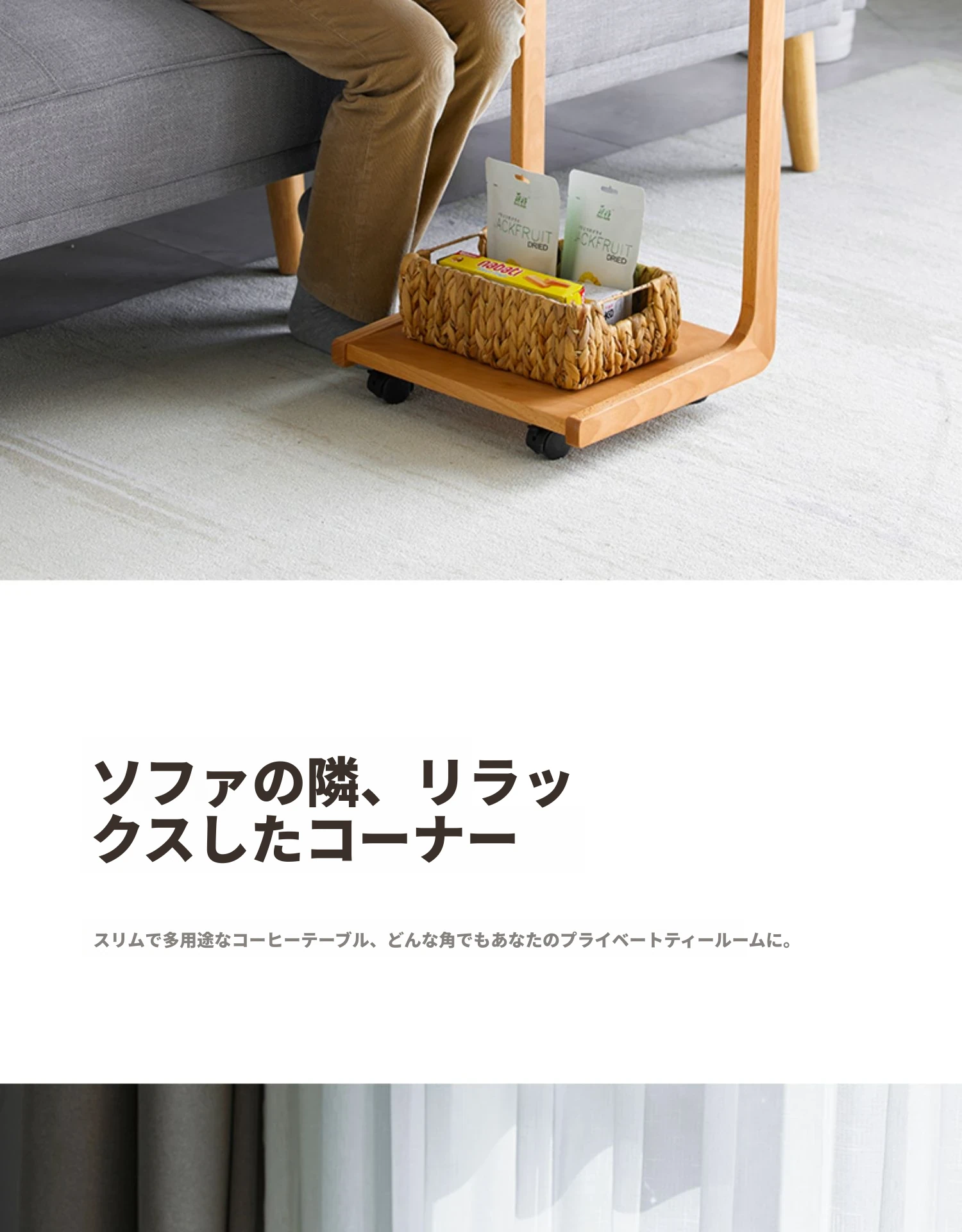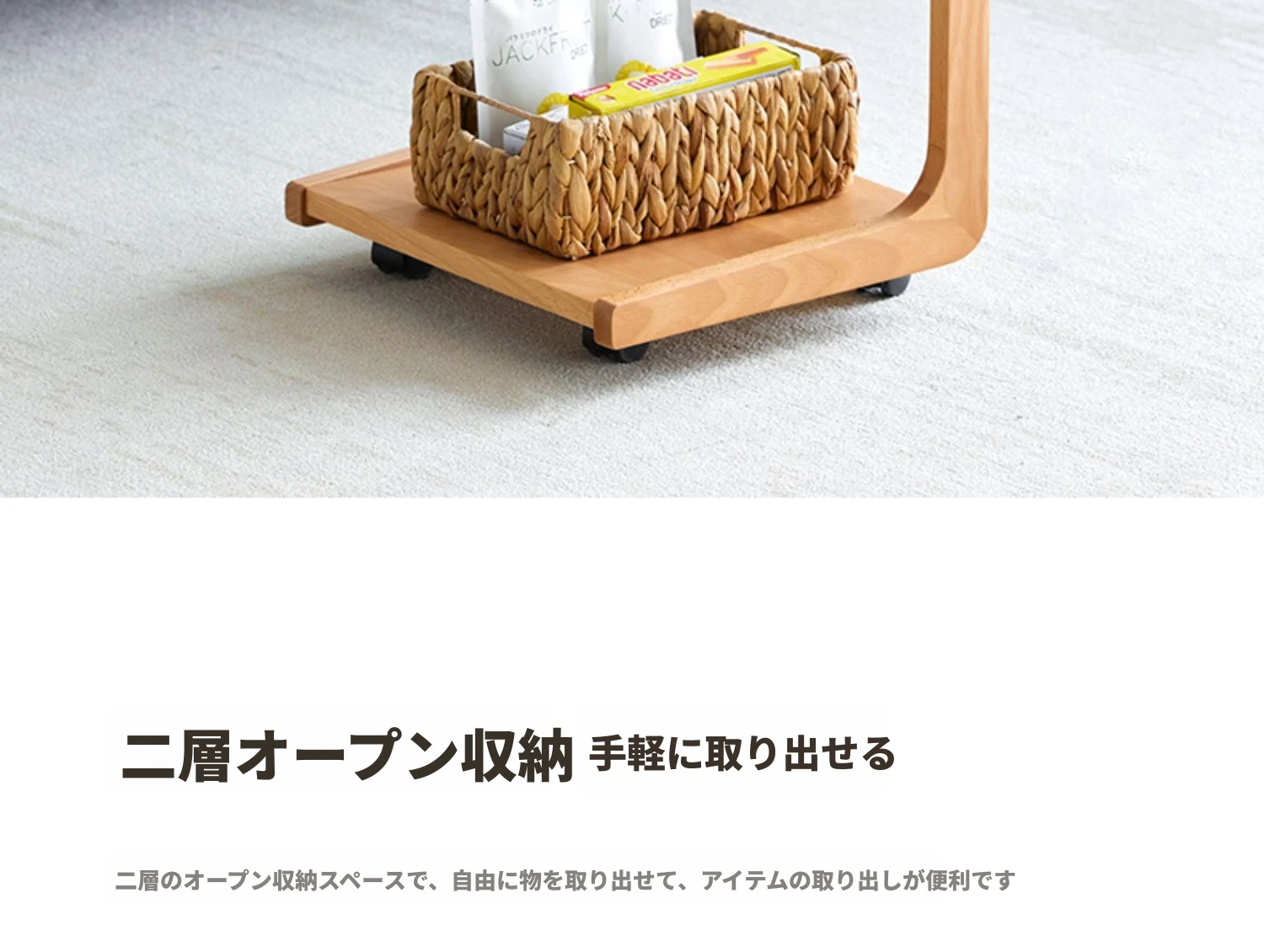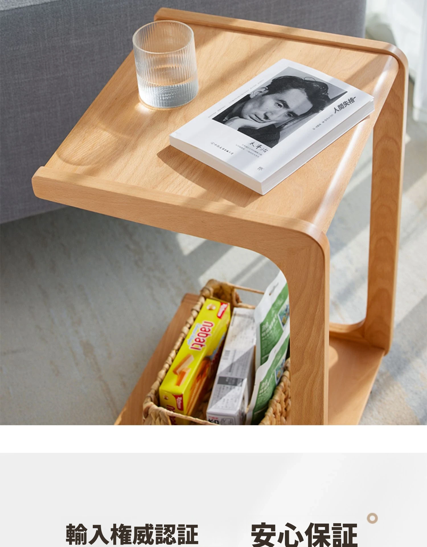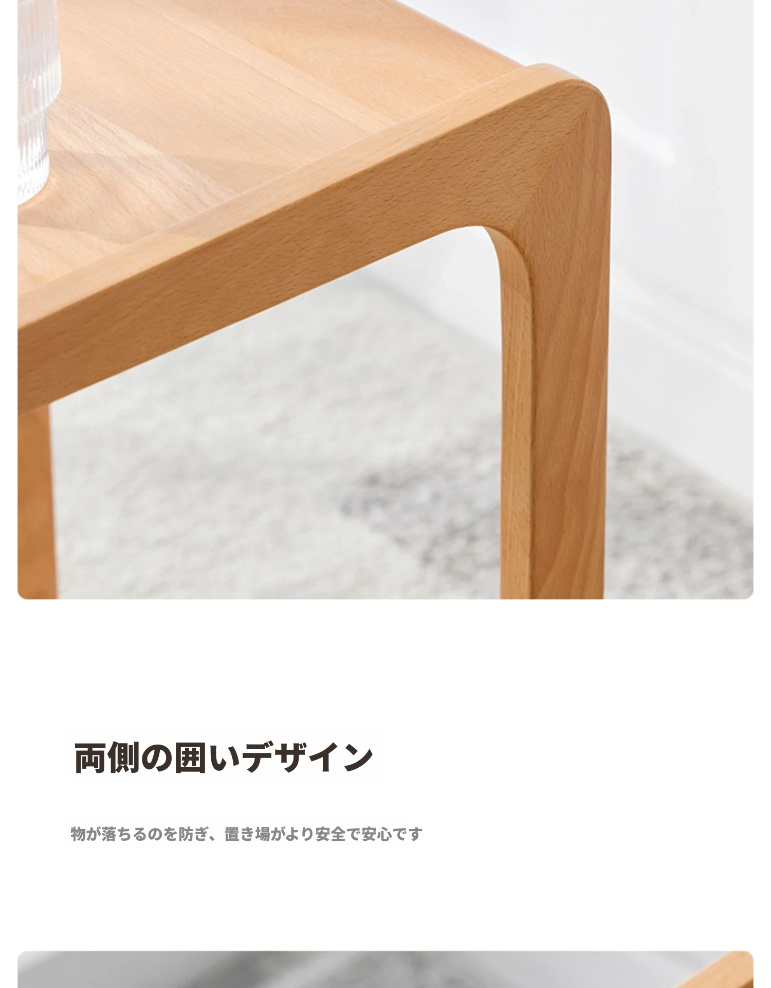 原始原素無垢材利用の北欧スタイル・シンプルなソファサイドテーブル - ビーチウッド製・C型テーブル、キャスター付きで移動便利!ベッドサイドで使いやすい。