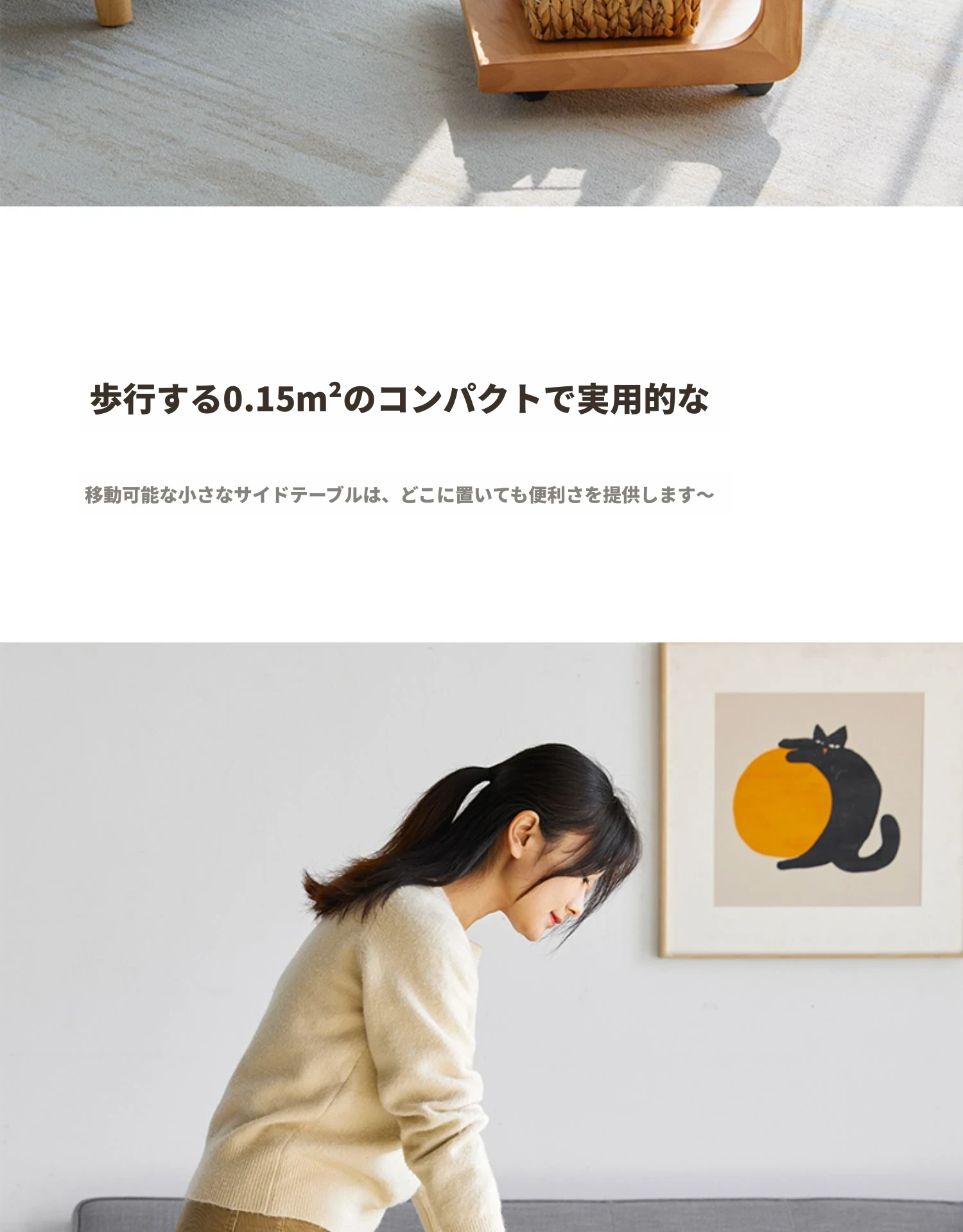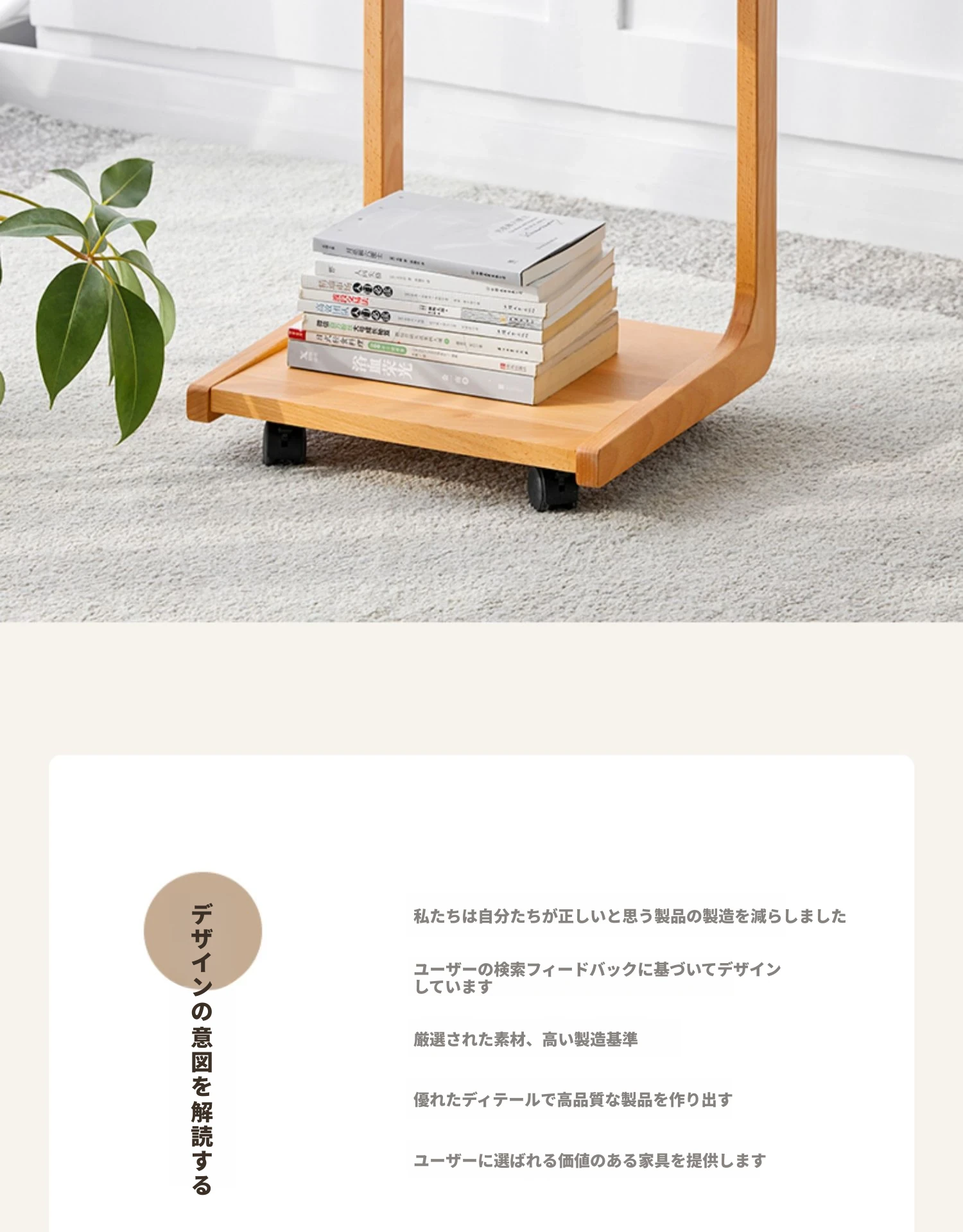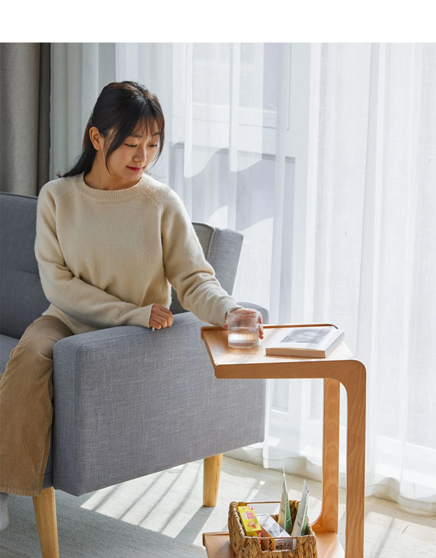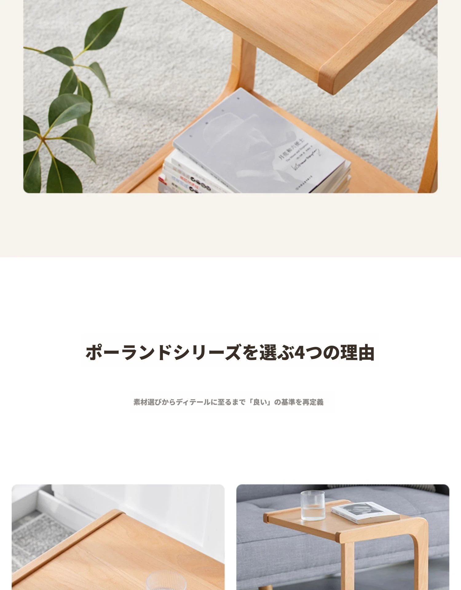 原始原素無垢材利用の北欧スタイル・シンプルなソファサイドテーブル - ビーチウッド製・C型テーブル、キャスター付きで移動便利!ベッドサイドで使いやすい。