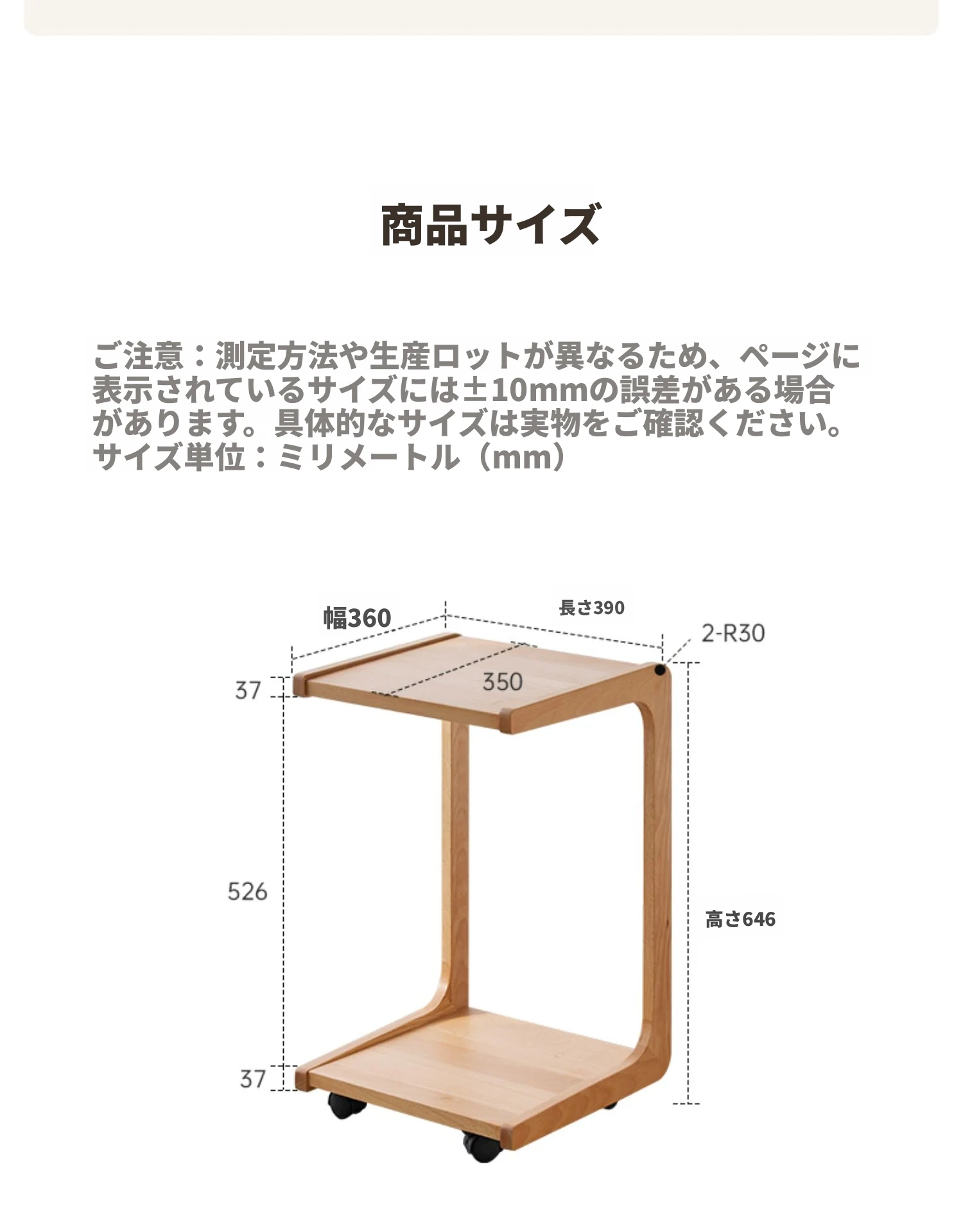 原木色 - サイドテーブル 390*360*646mm