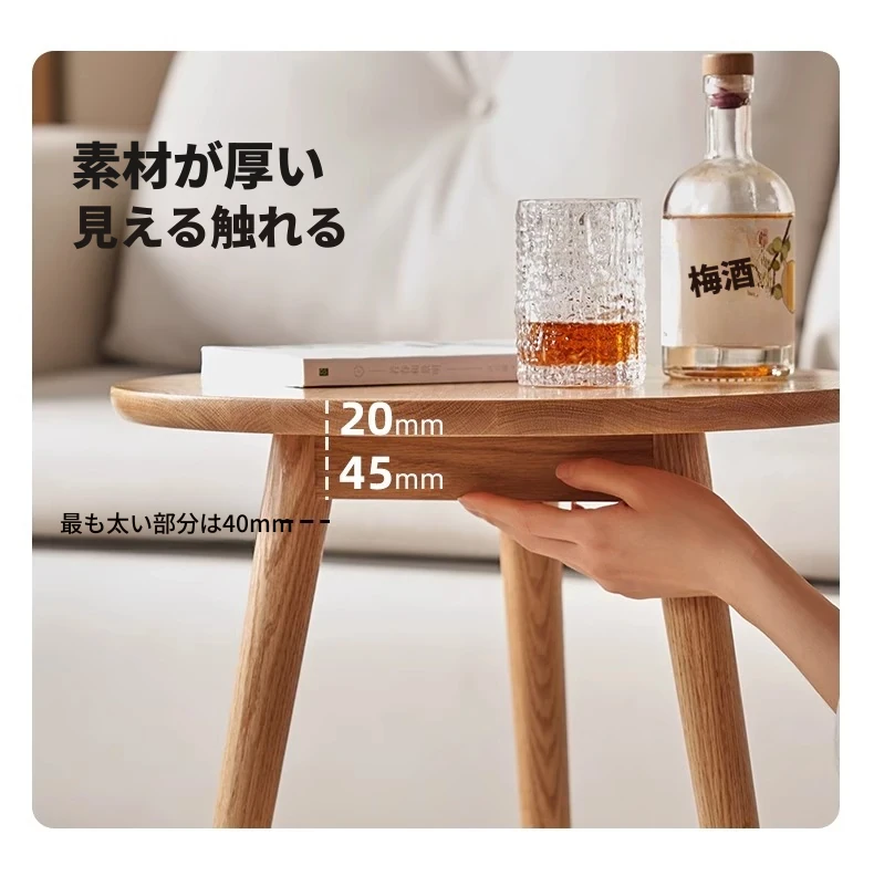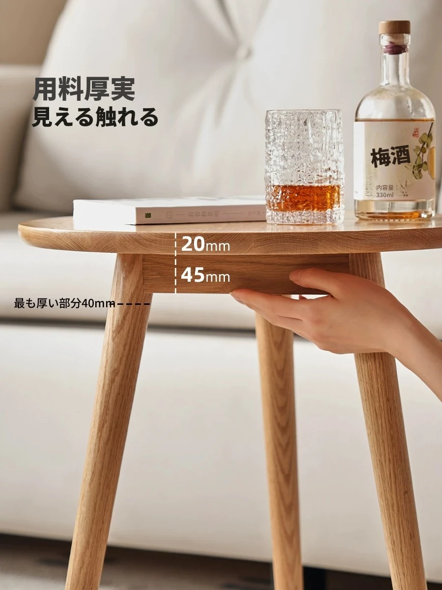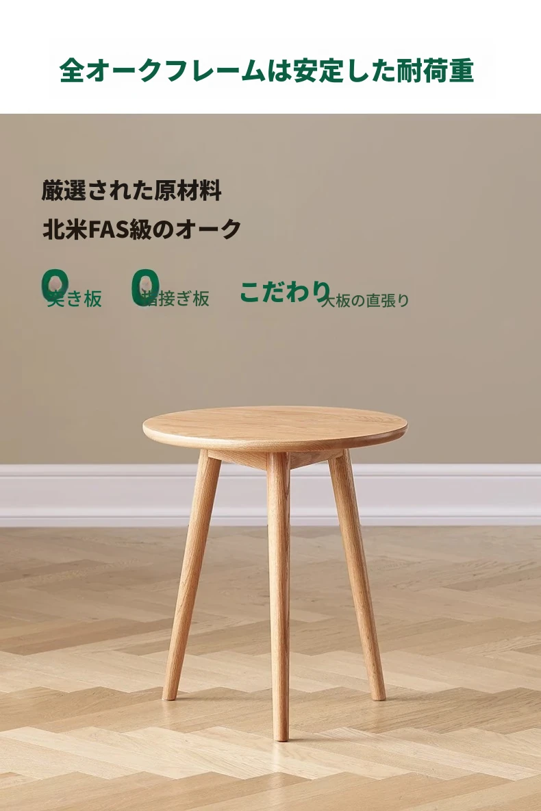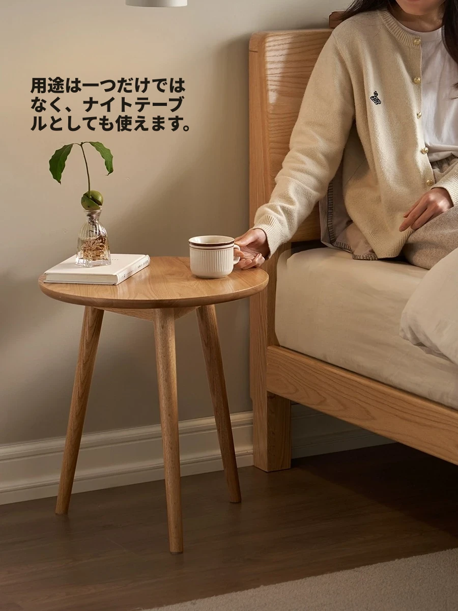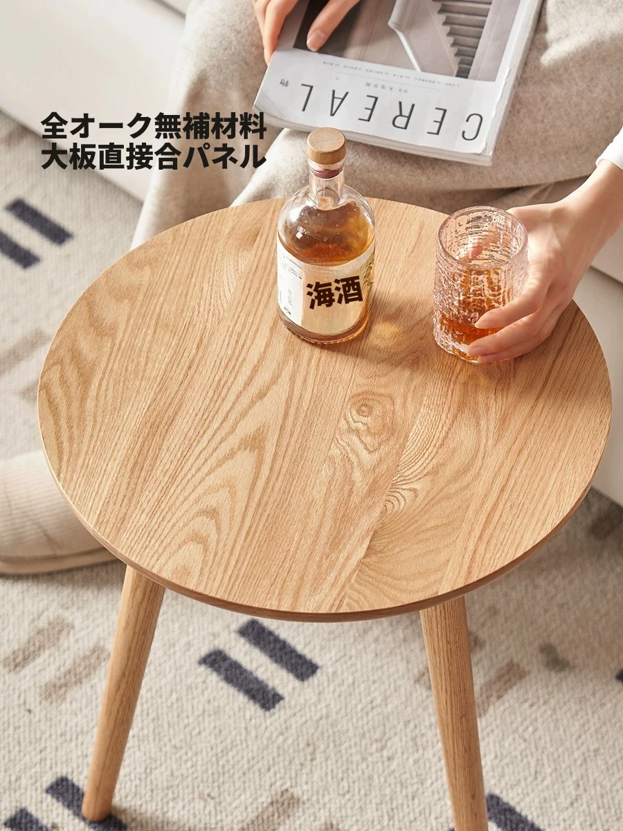 原木の素朴なスタイル!オーク材サイドテーブル 丸型デザインのシンプルなティーテーブル 家庭用リビングソファ用おしゃれなサイドテーブル