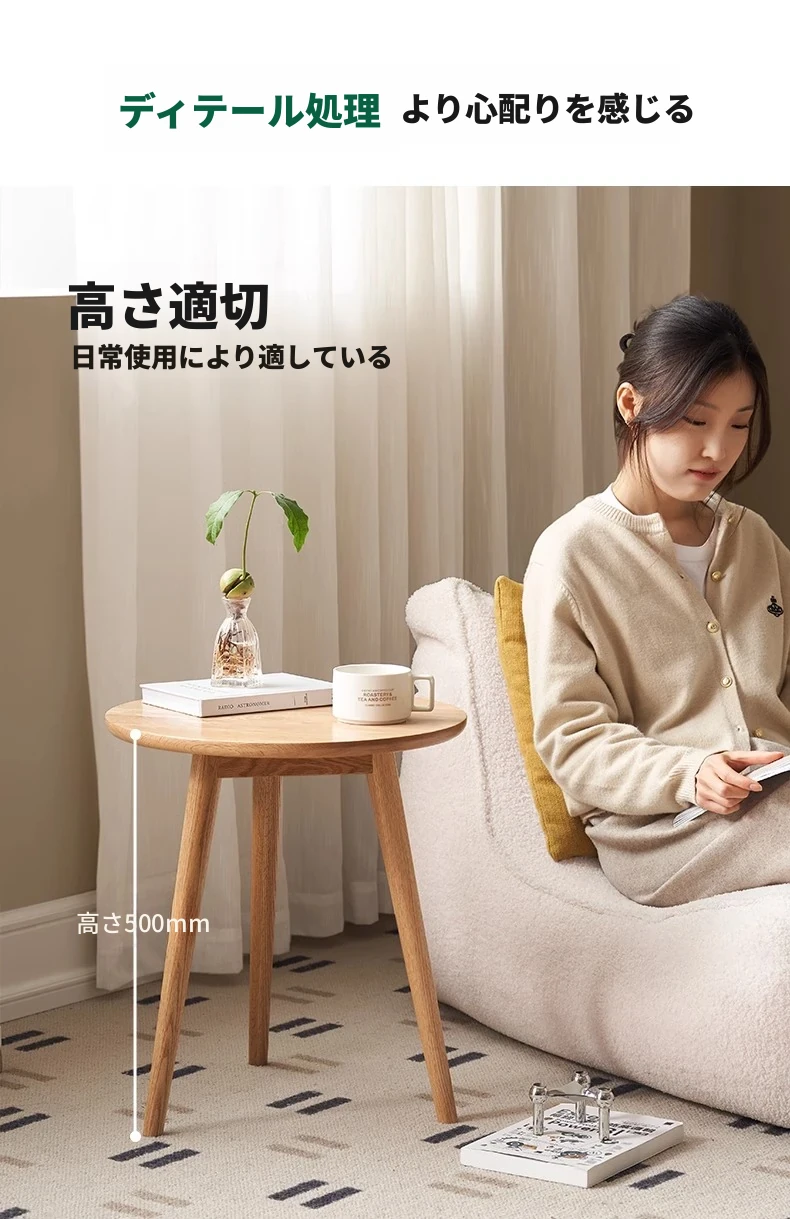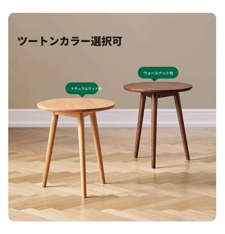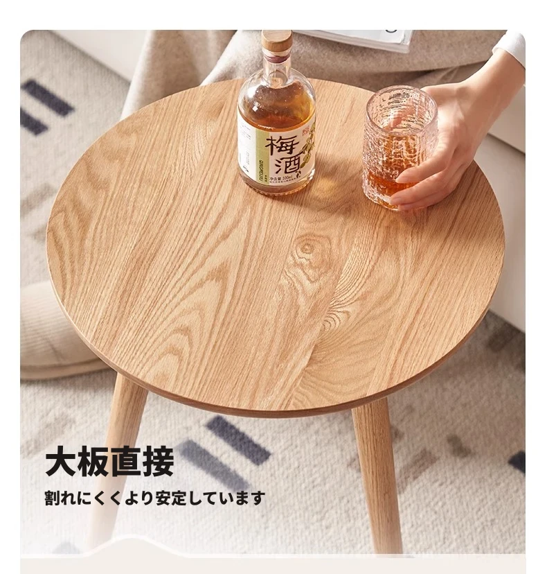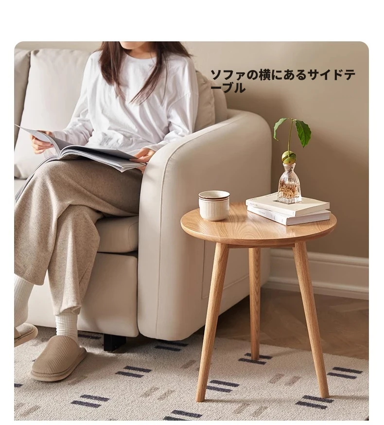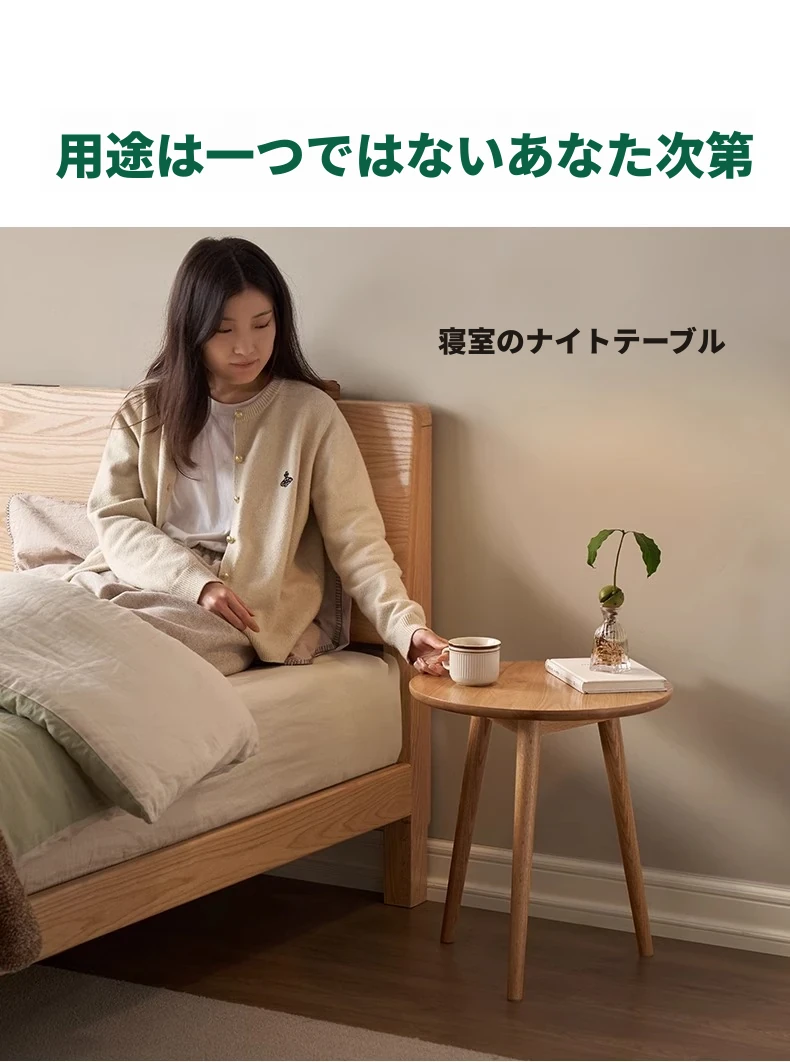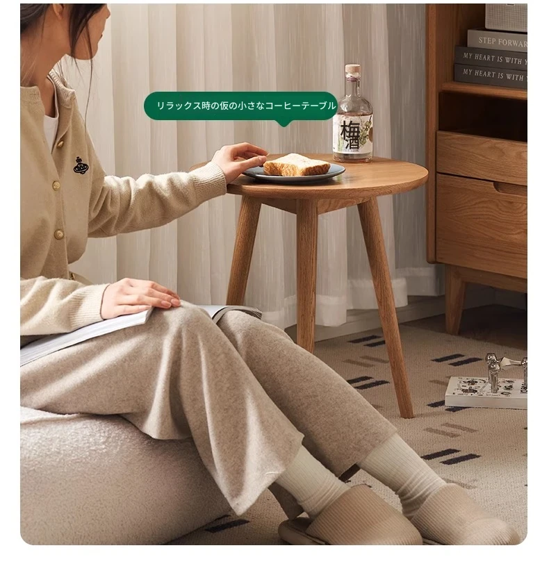 原木の素朴なスタイル!オーク材サイドテーブル 丸型デザインのシンプルなティーテーブル 家庭用リビングソファ用おしゃれなサイドテーブル