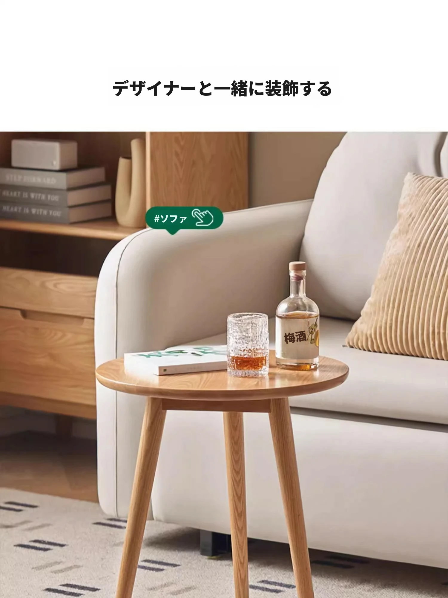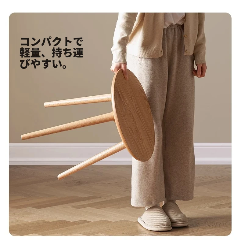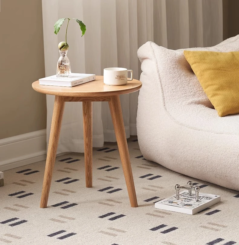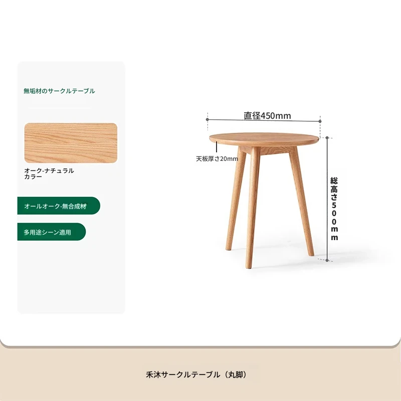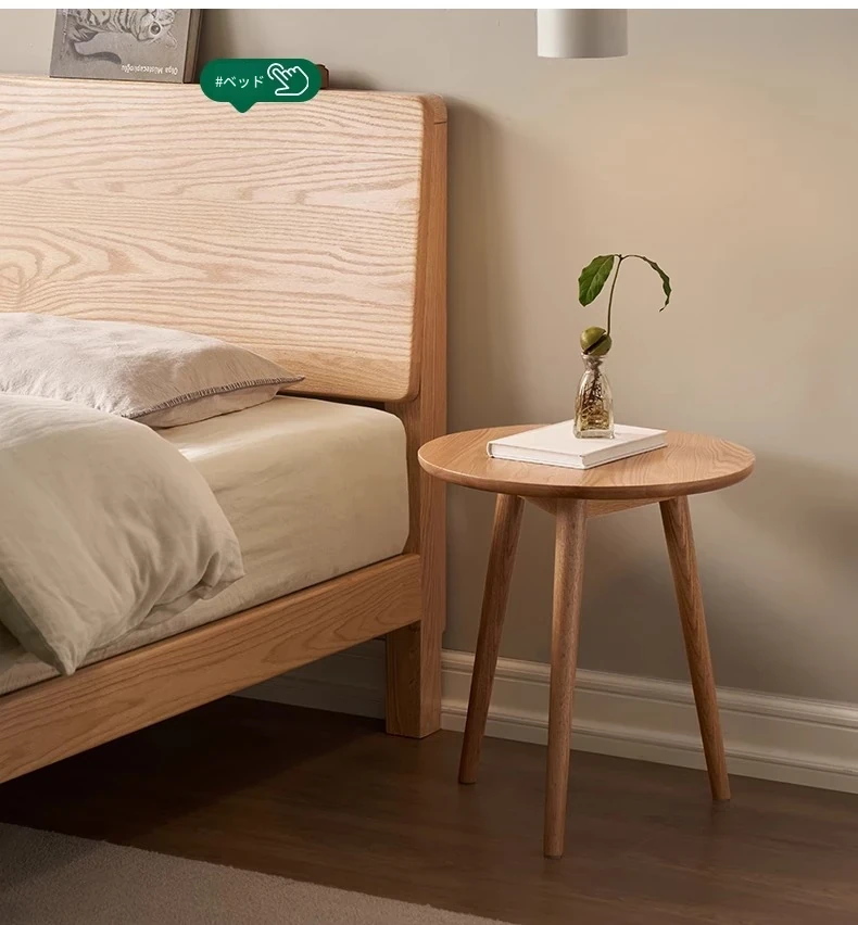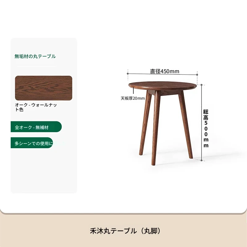 原木の素朴なスタイル!オーク材サイドテーブル 丸型デザインのシンプルなティーテーブル 家庭用リビングソファ用おしゃれなサイドテーブル