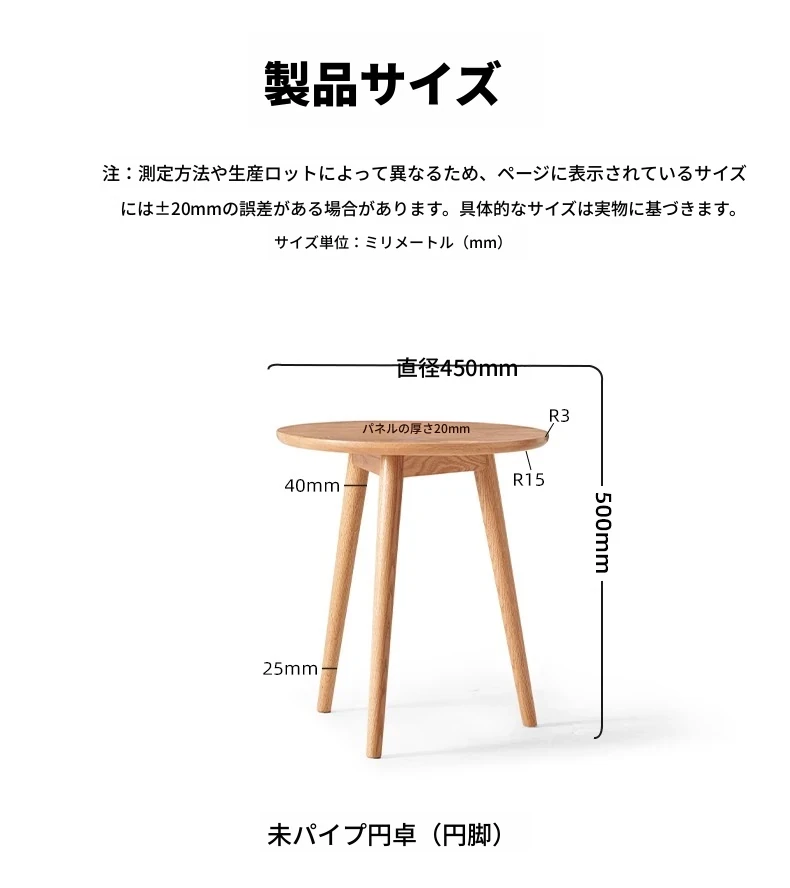 原木色-0.45メートルサイドテーブル(450*450*500mm)