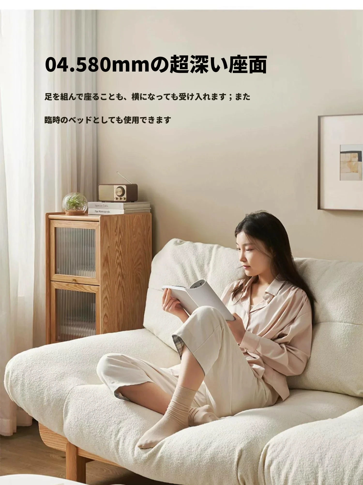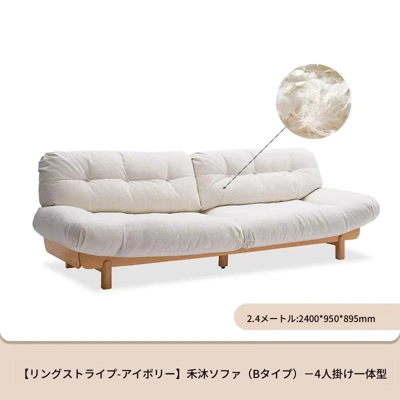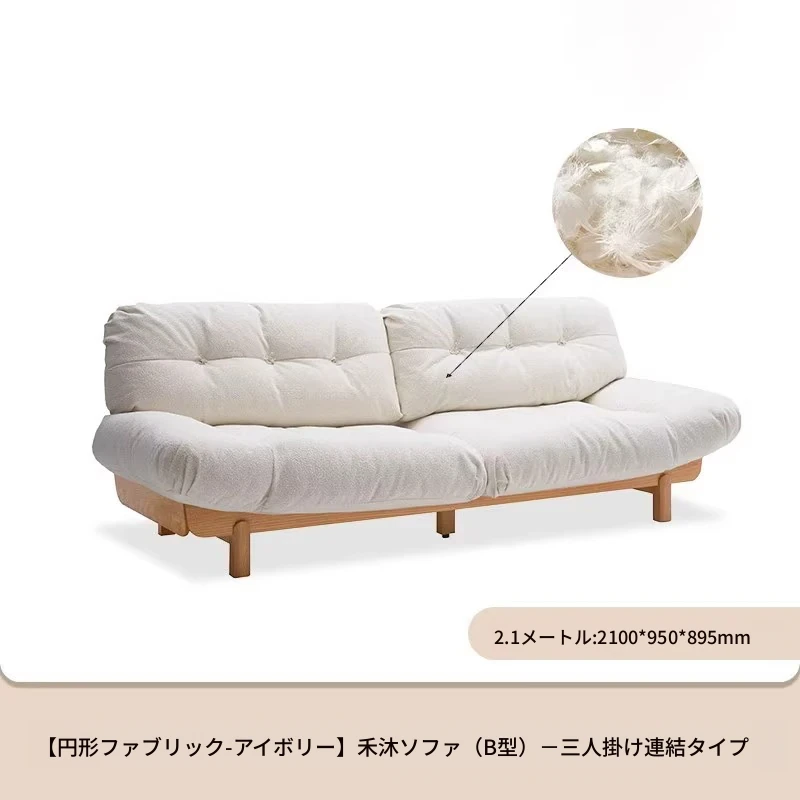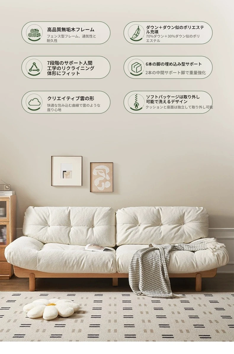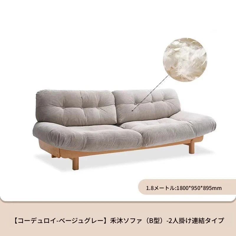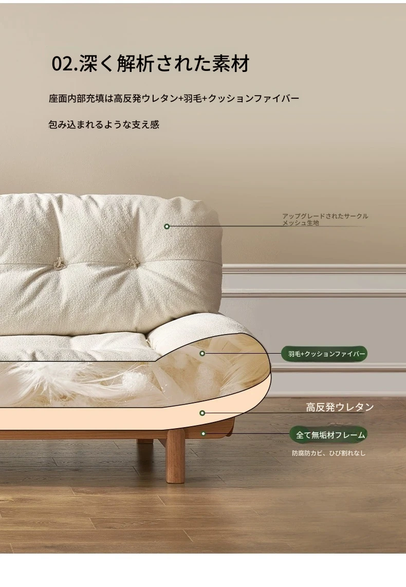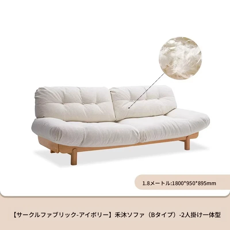 原始原素の無垢材ソファ|北欧クリームスタイル|小さなリビングに最適なオーク製ファブリックソファ|ふわふわダウンの雲のようなソファで、心地よいひとときをお楽しみください。