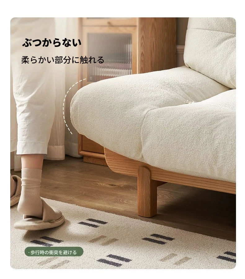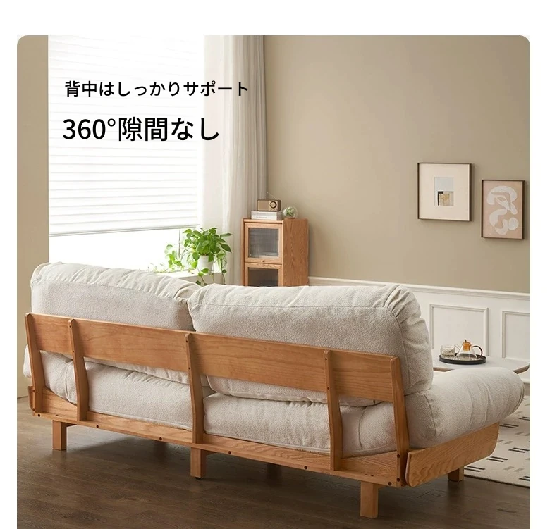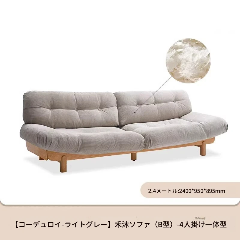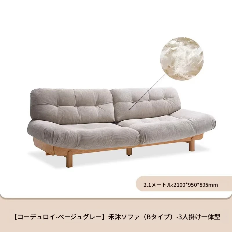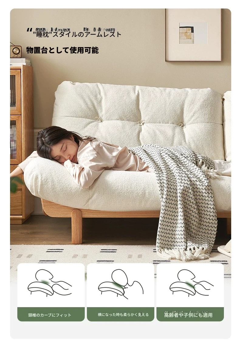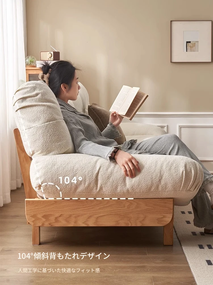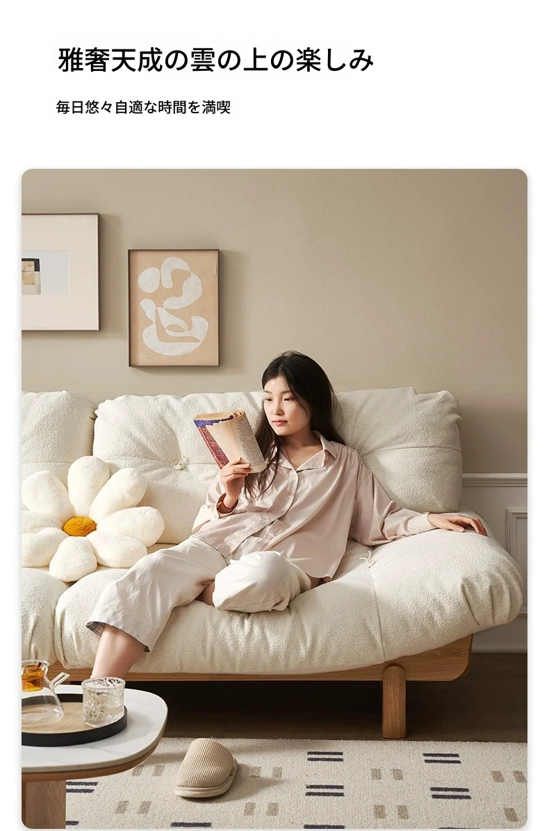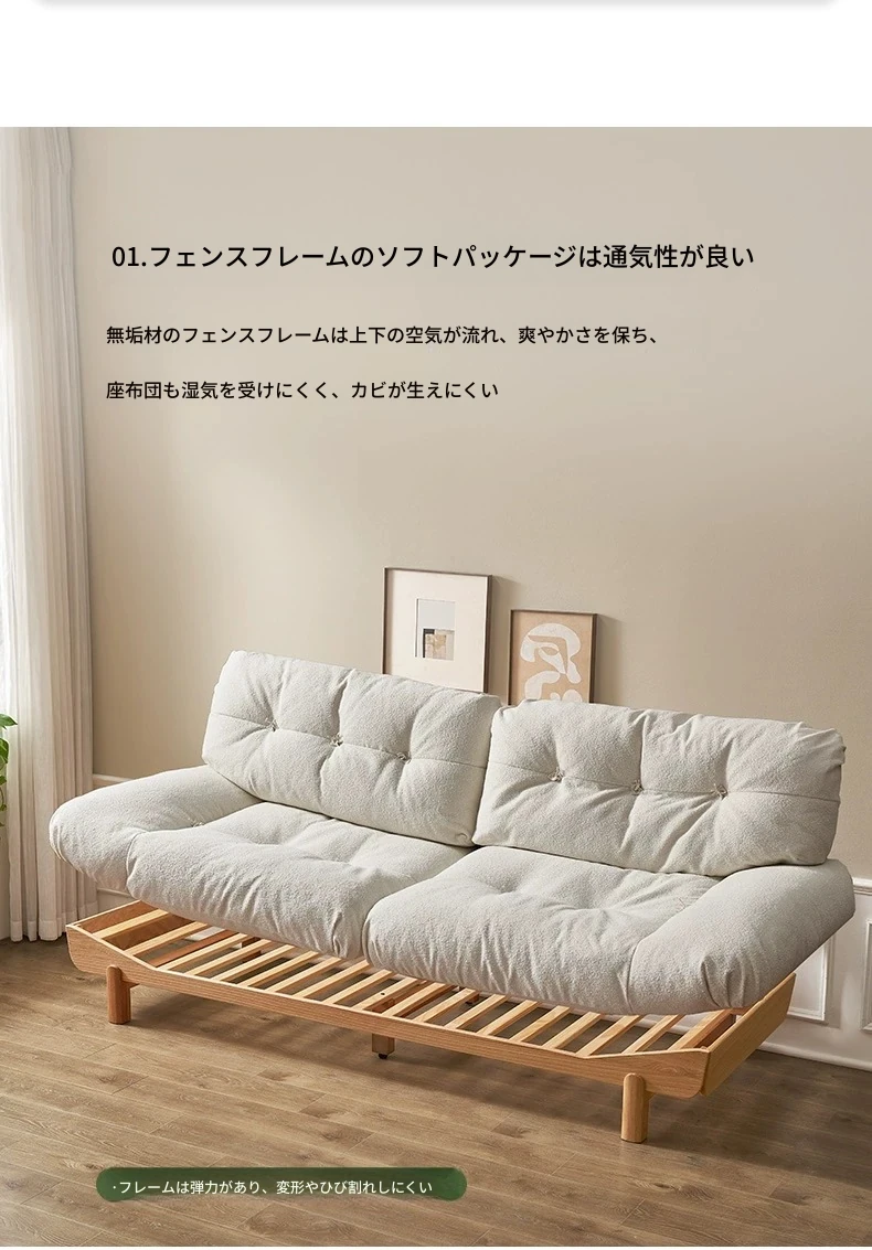 原始原素の無垢材ソファ|北欧クリームスタイル|小さなリビングに最適なオーク製ファブリックソファ|ふわふわダウンの雲のようなソファで、心地よいひとときをお楽しみください。