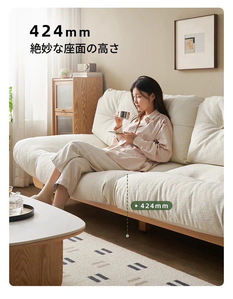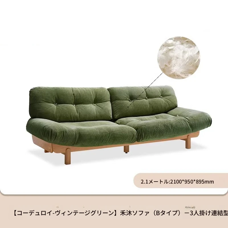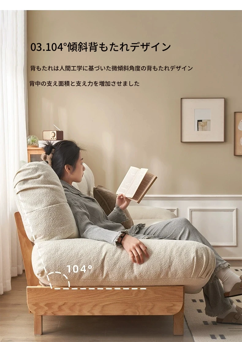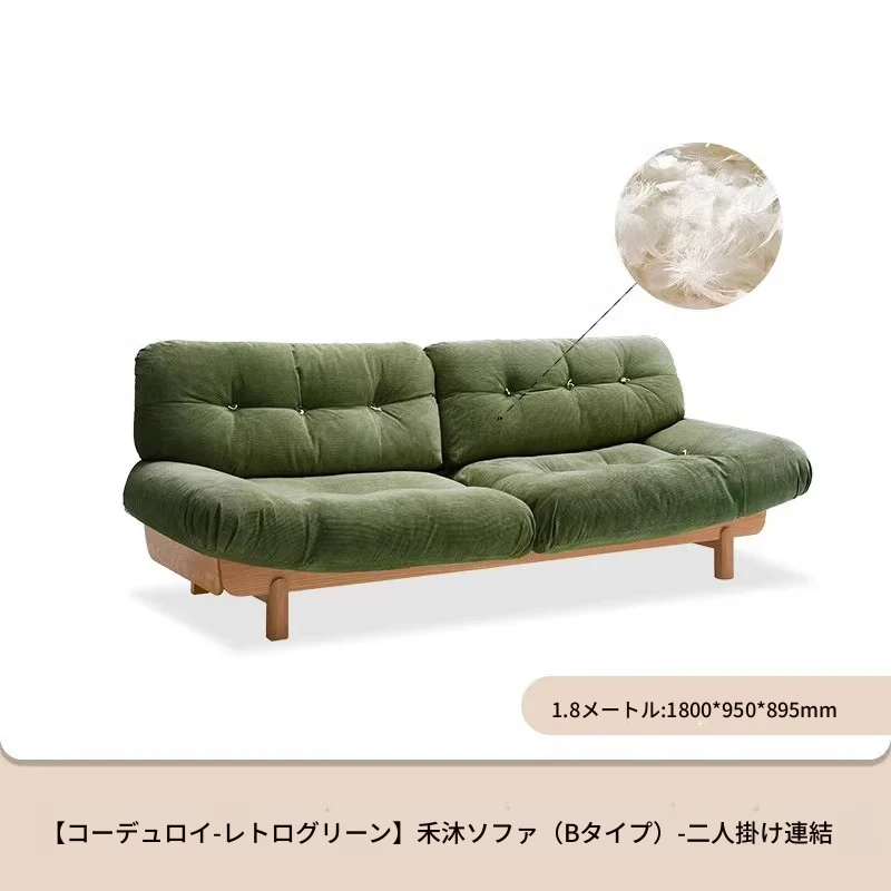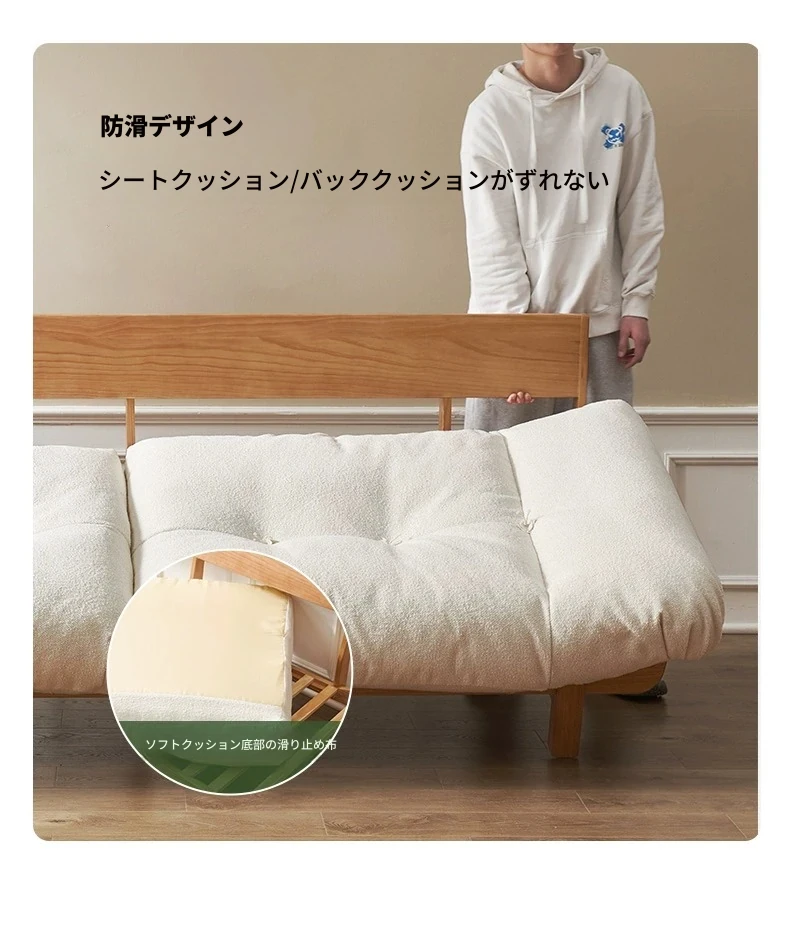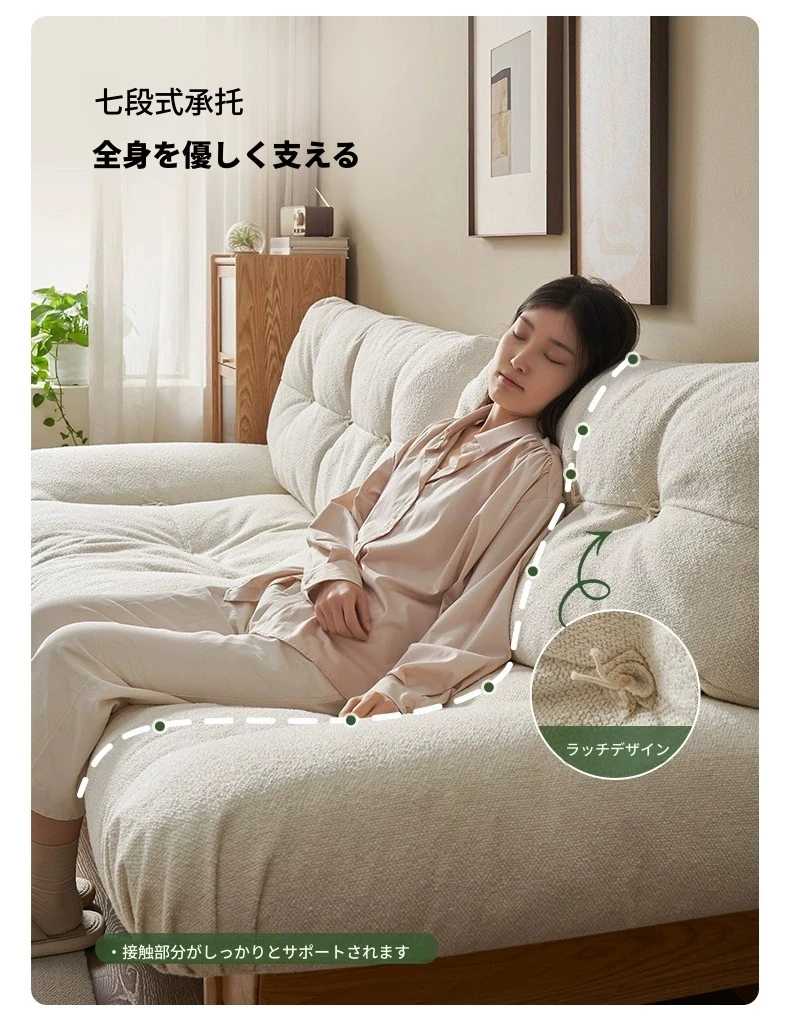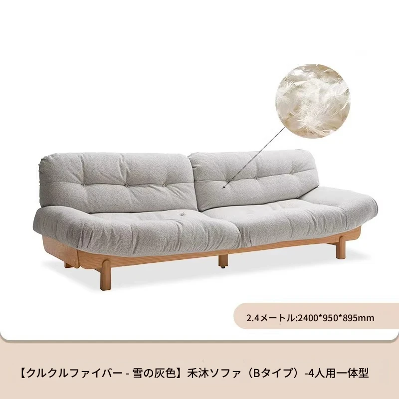 原始原素の無垢材ソファ|北欧クリームスタイル|小さなリビングに最適なオーク製ファブリックソファ|ふわふわダウンの雲のようなソファで、心地よいひとときをお楽しみください。