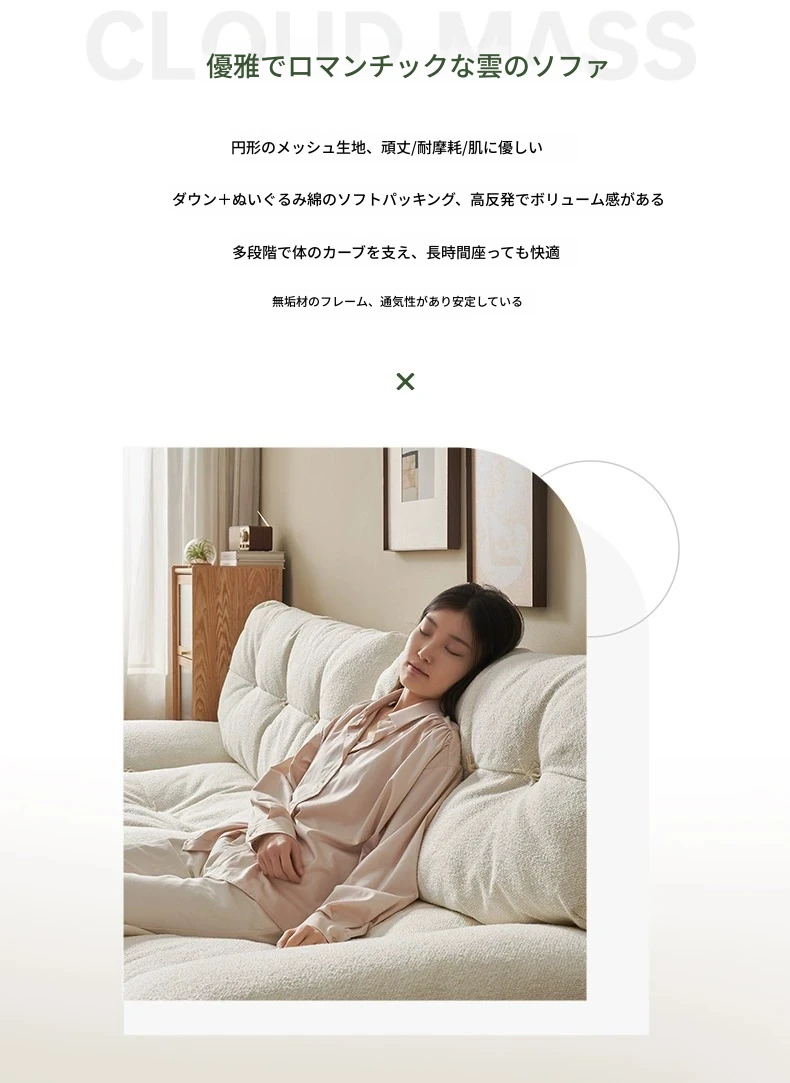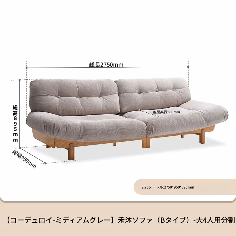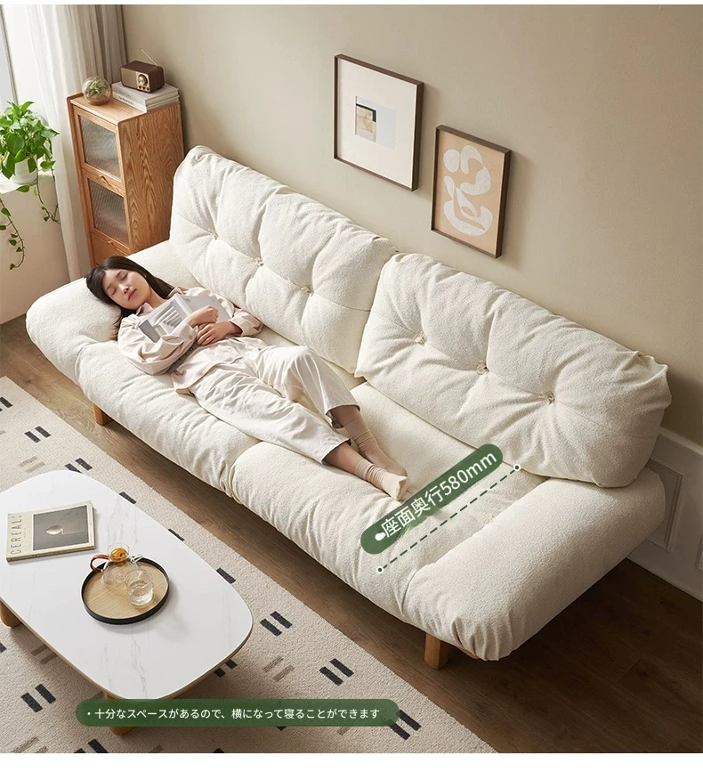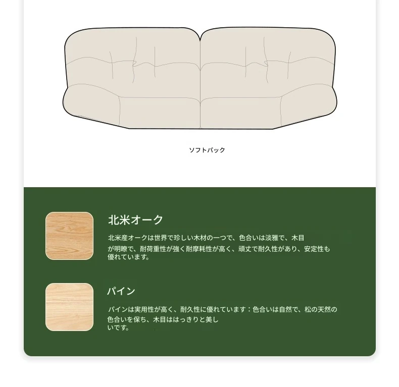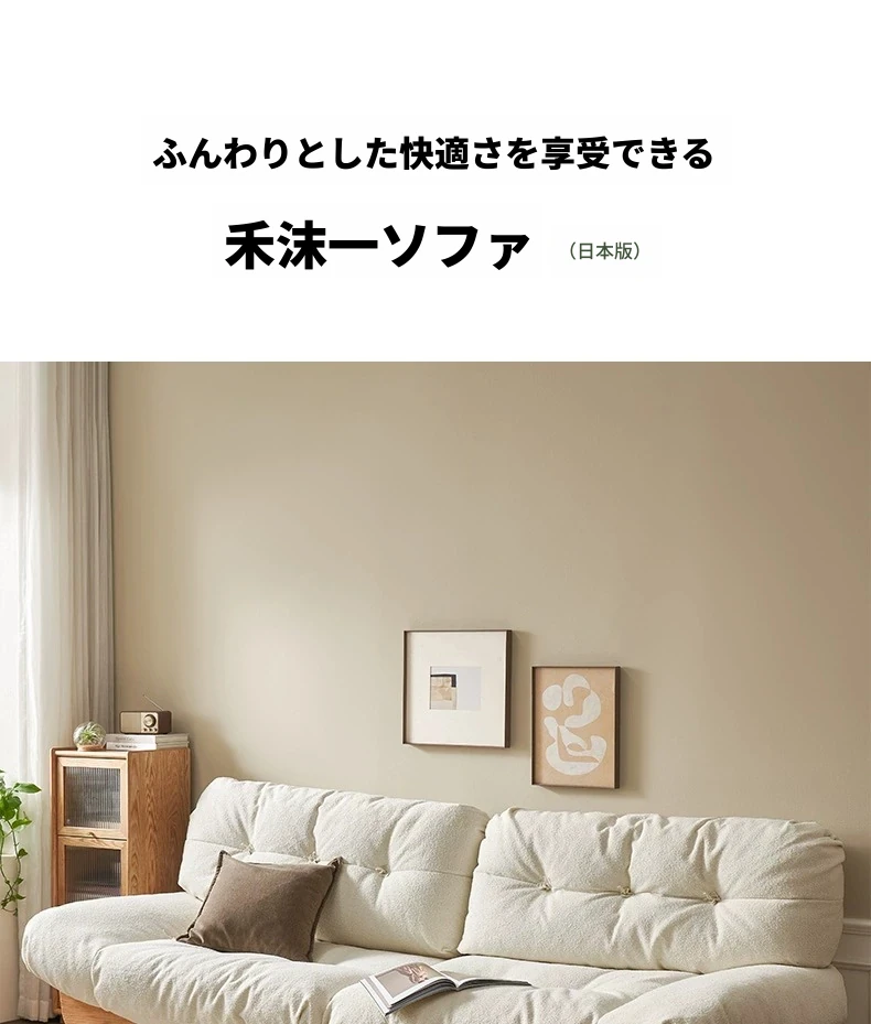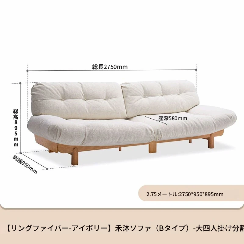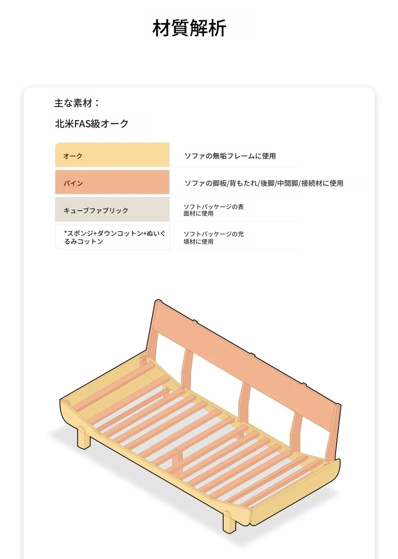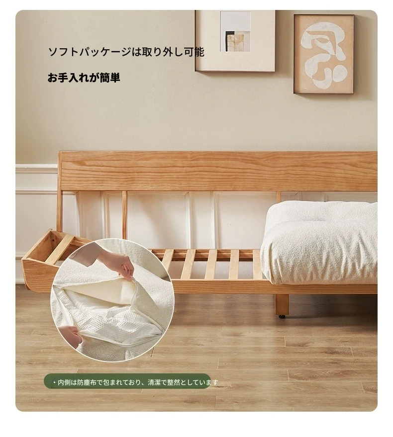 原始原素の無垢材ソファ|北欧クリームスタイル|小さなリビングに最適なオーク製ファブリックソファ|ふわふわダウンの雲のようなソファで、心地よいひとときをお楽しみください。