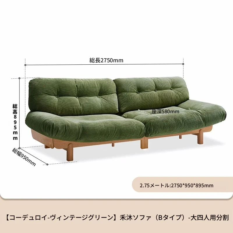 (コーデュロイ)レトログリーン-大四人ソファ分割型