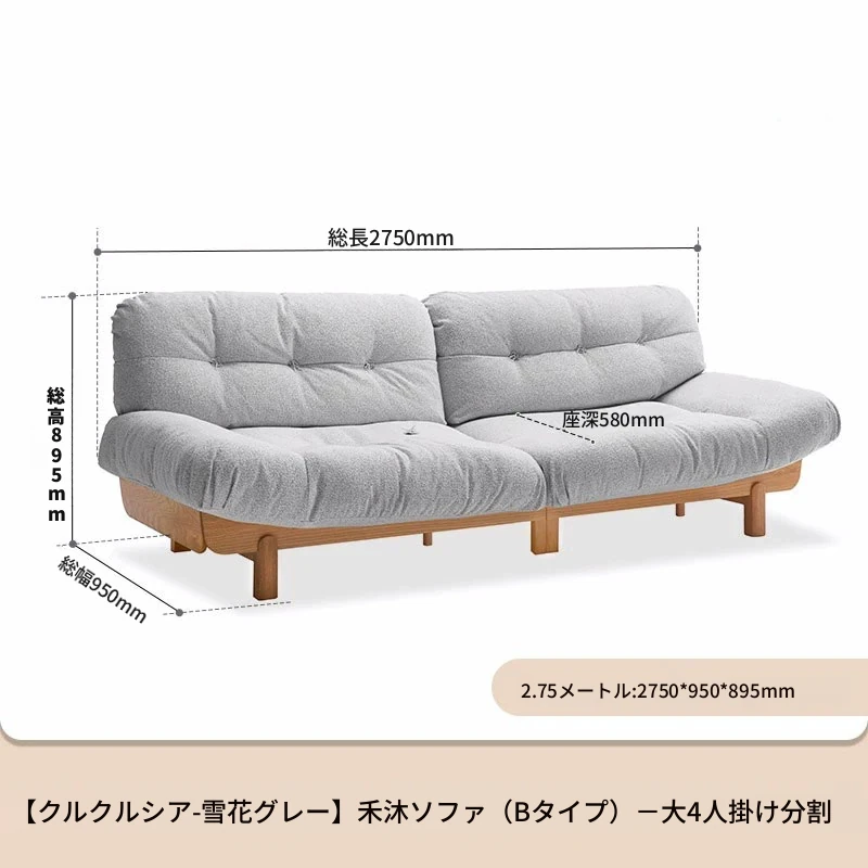 (サークルファブリック)雪のような灰色-大四人ソファ分割型