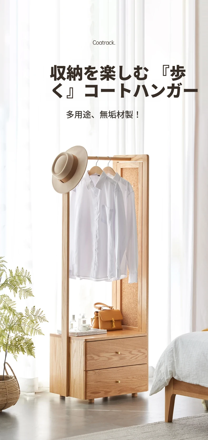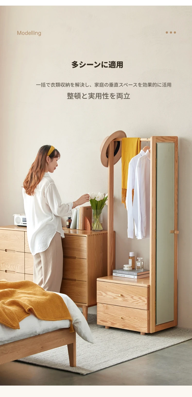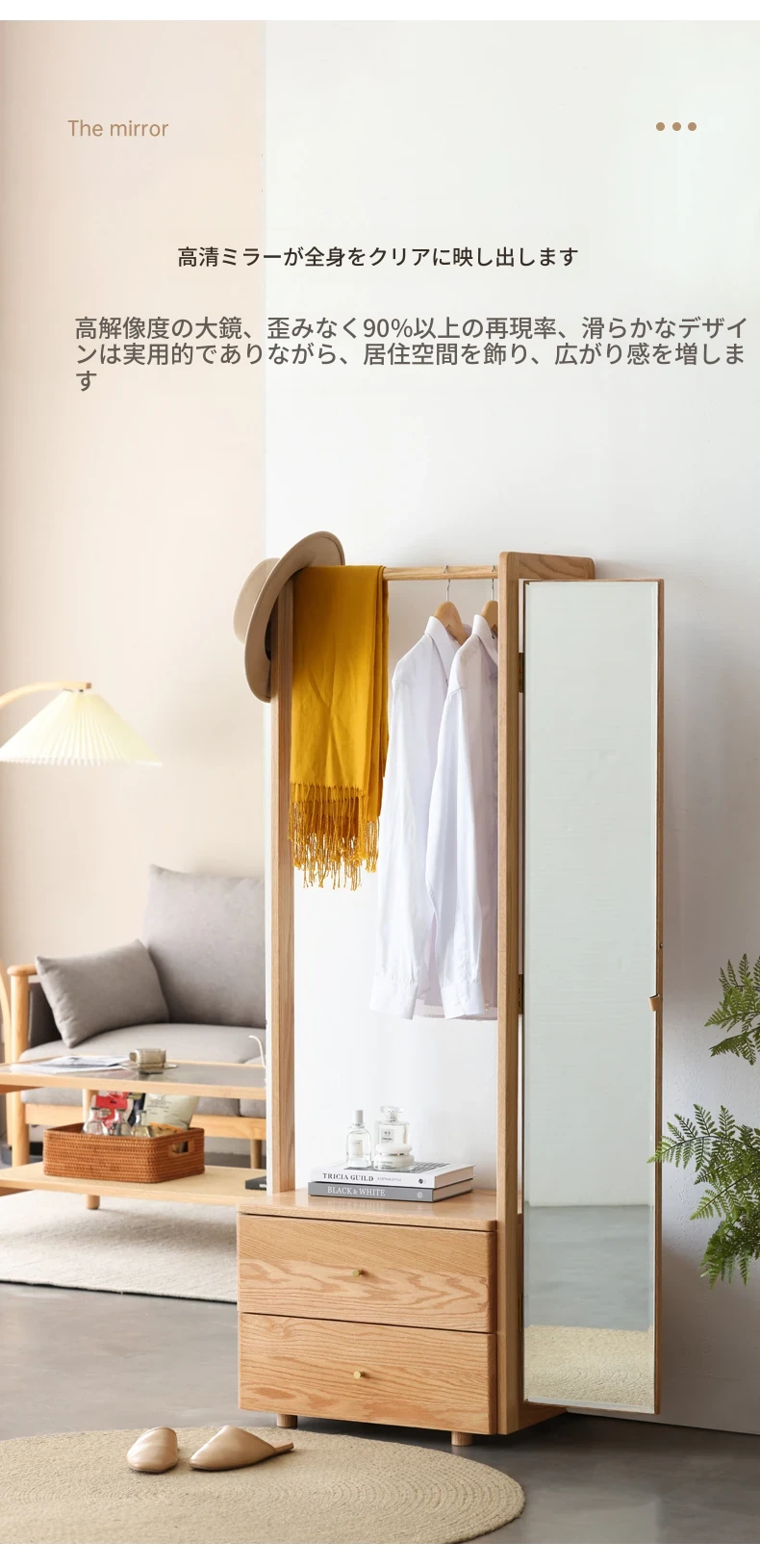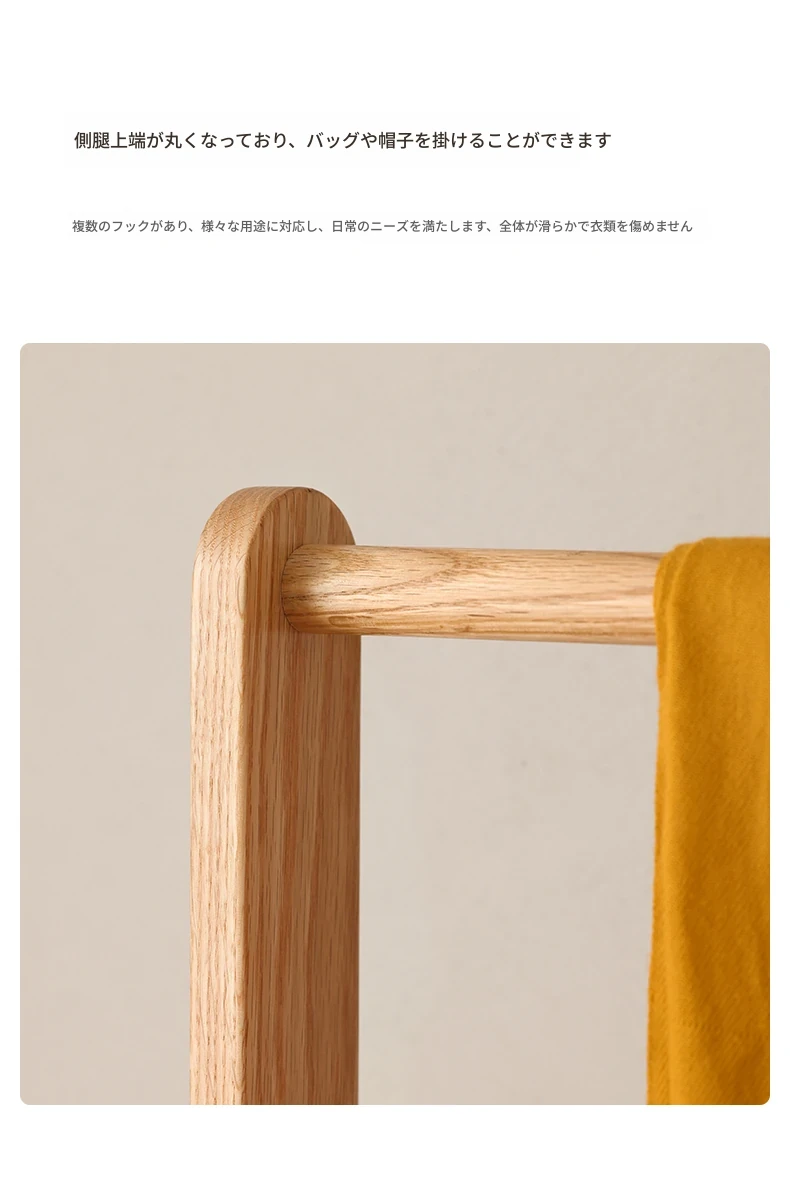 原木素材の全木製コートハンガー - 北欧風シンプルデザイン、コンパクトサイズ!居間や寝室にぴったりなスタンド式衣類ハンガーと鏡の一体型。おしゃれで機能的な収納で、あなたの部屋をもっと素敵に演出します!