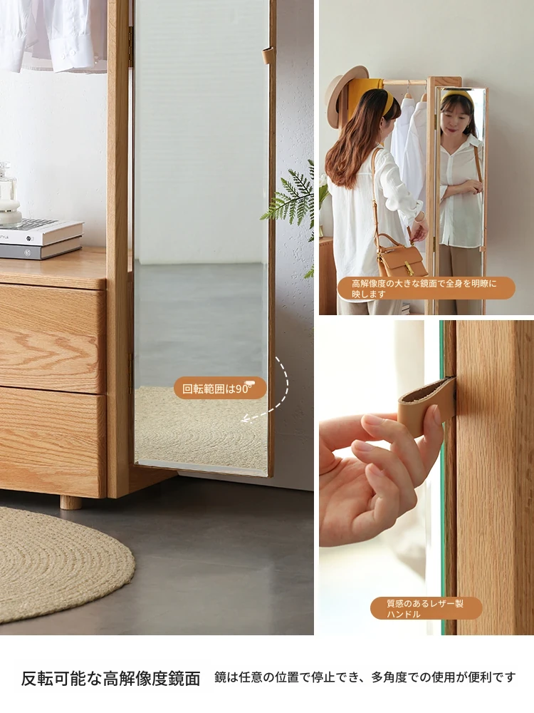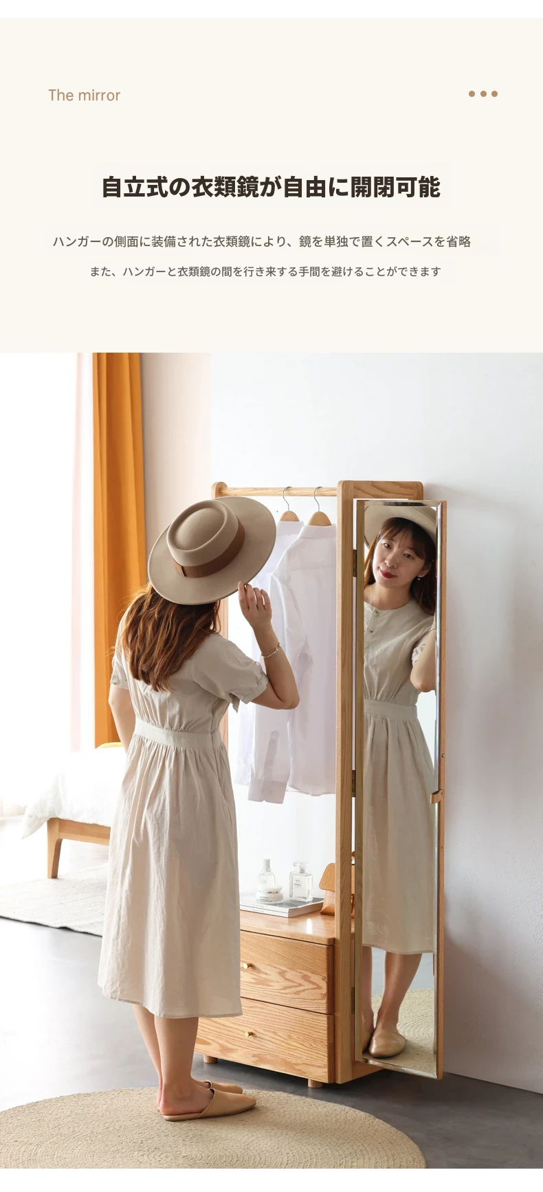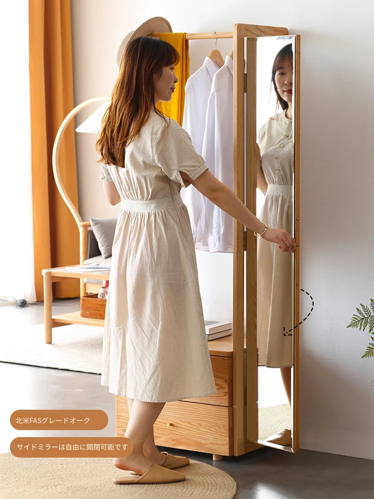 原木色-衣類鏡・ハンガー一体型 600*400*1680mm