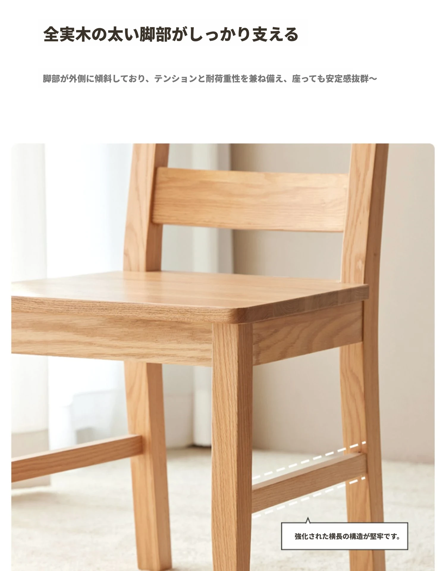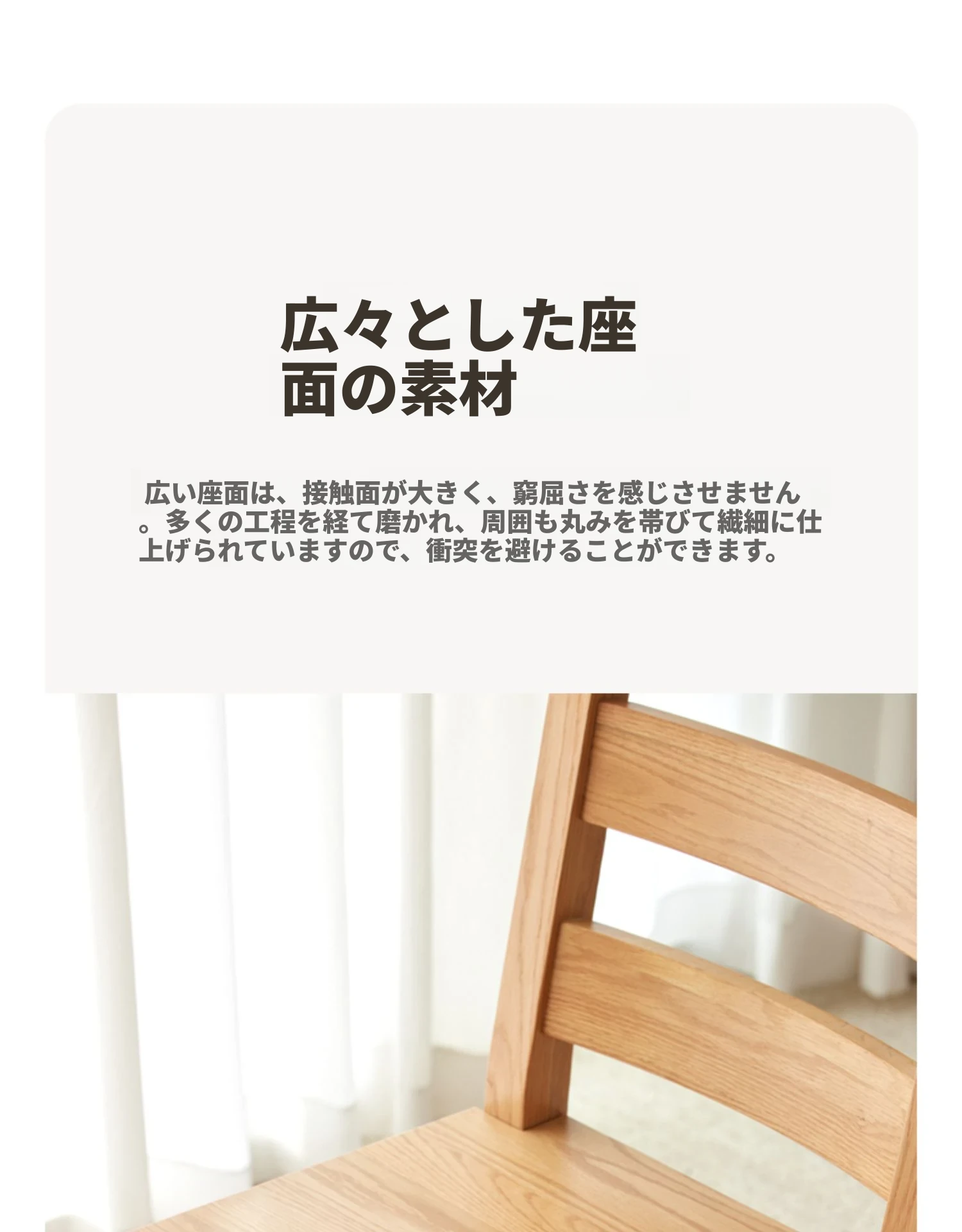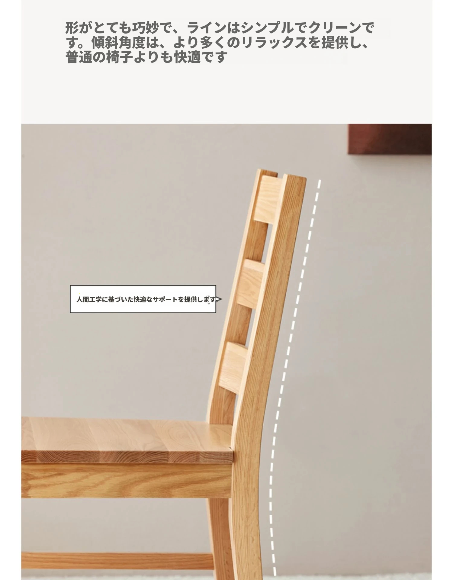 北欧スタイルのシンプルな無垢材ダイニングチェア|高品質オーク材使用で心地よい座り心地|リビングや書斎に最適なモダンデザインの食事用椅子