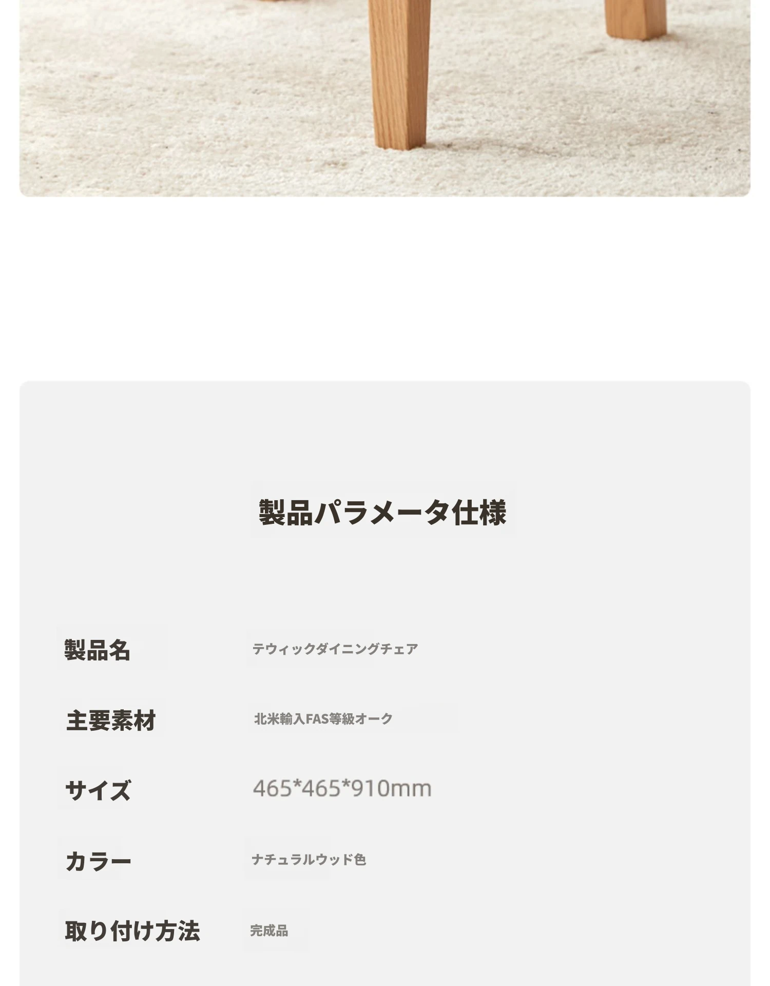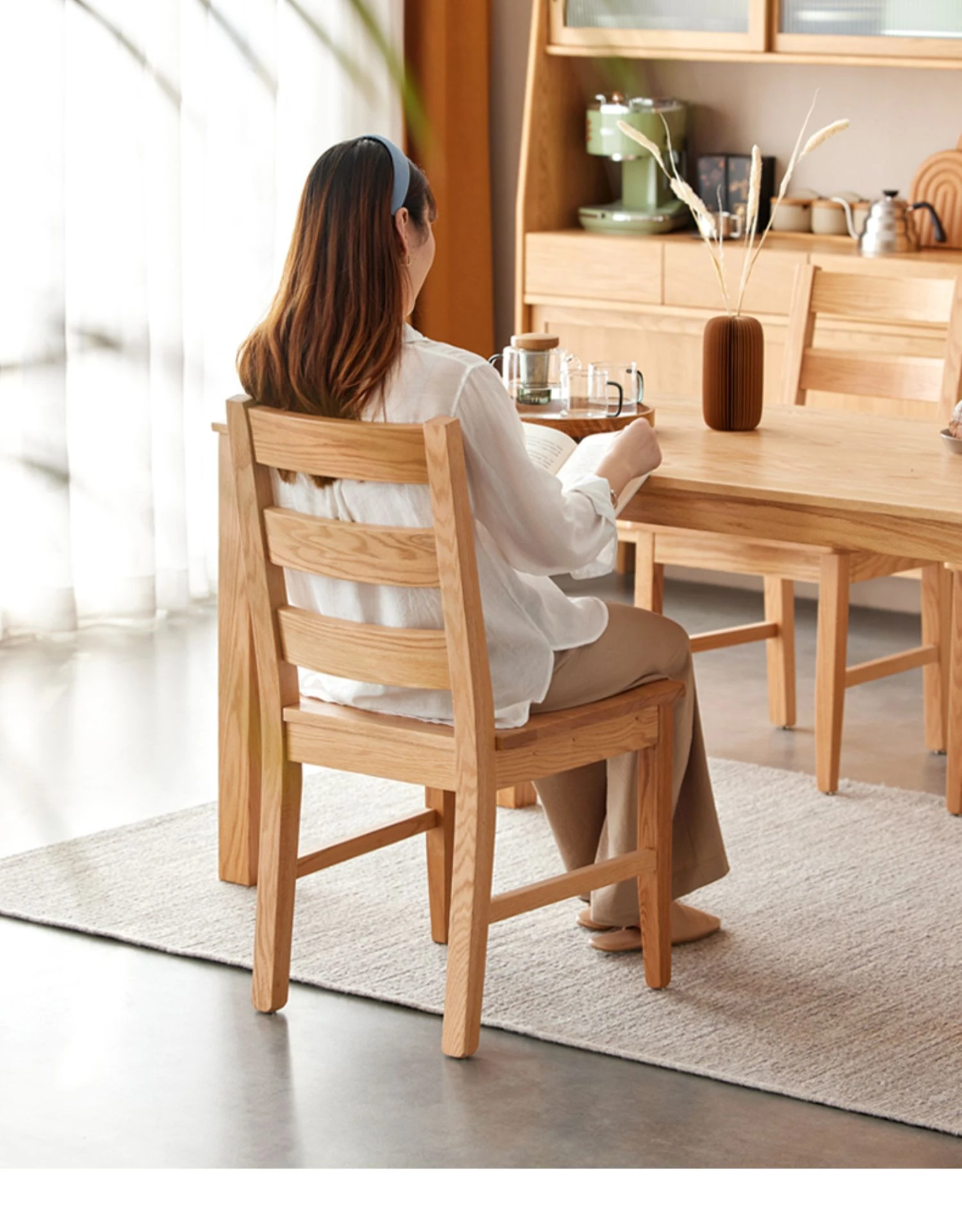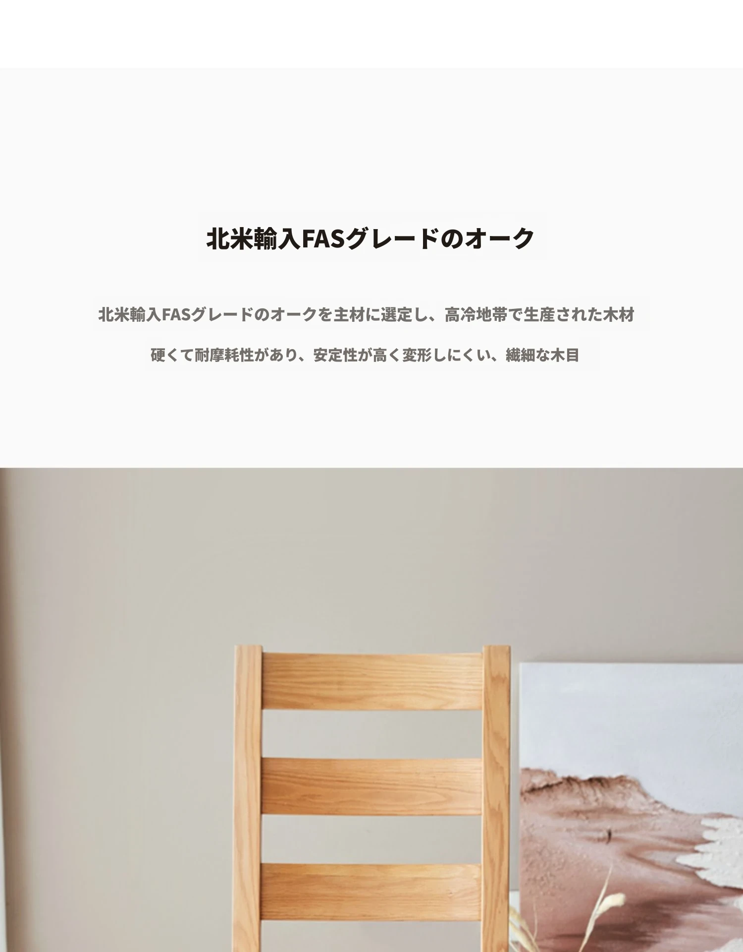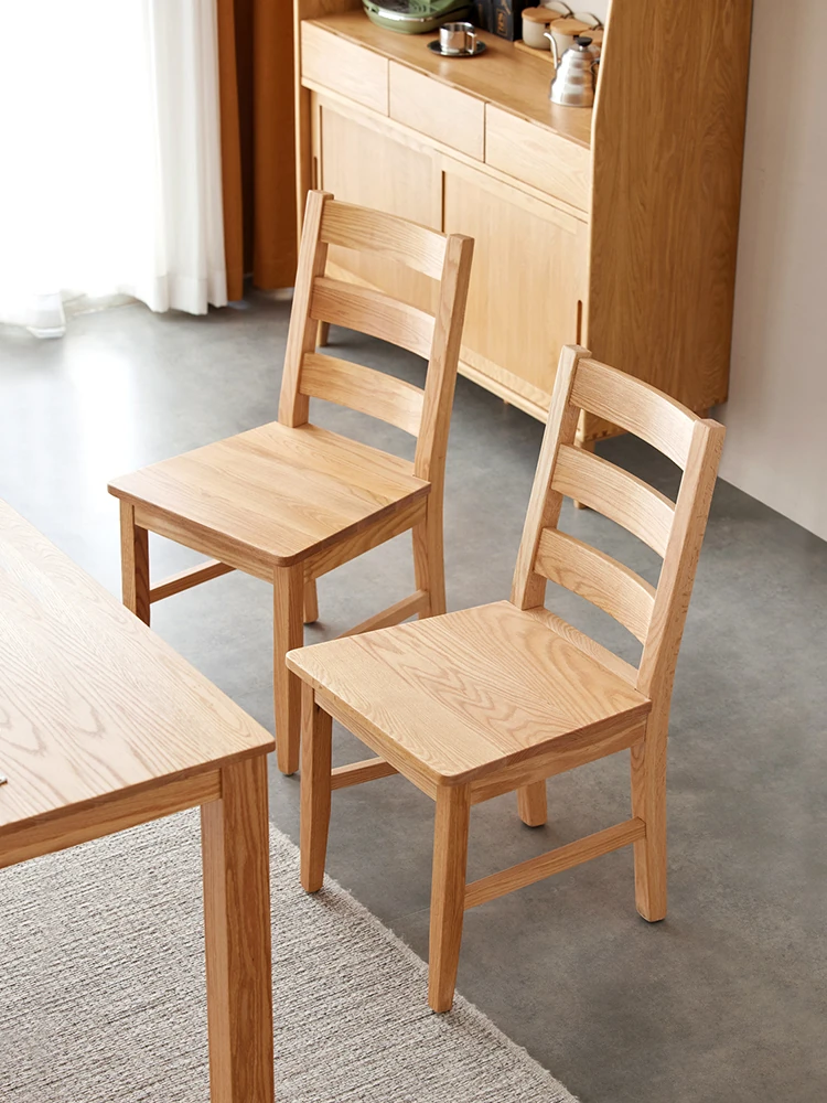 北欧スタイルのシンプルな無垢材ダイニングチェア|高品質オーク材使用で心地よい座り心地|リビングや書斎に最適なモダンデザインの食事用椅子