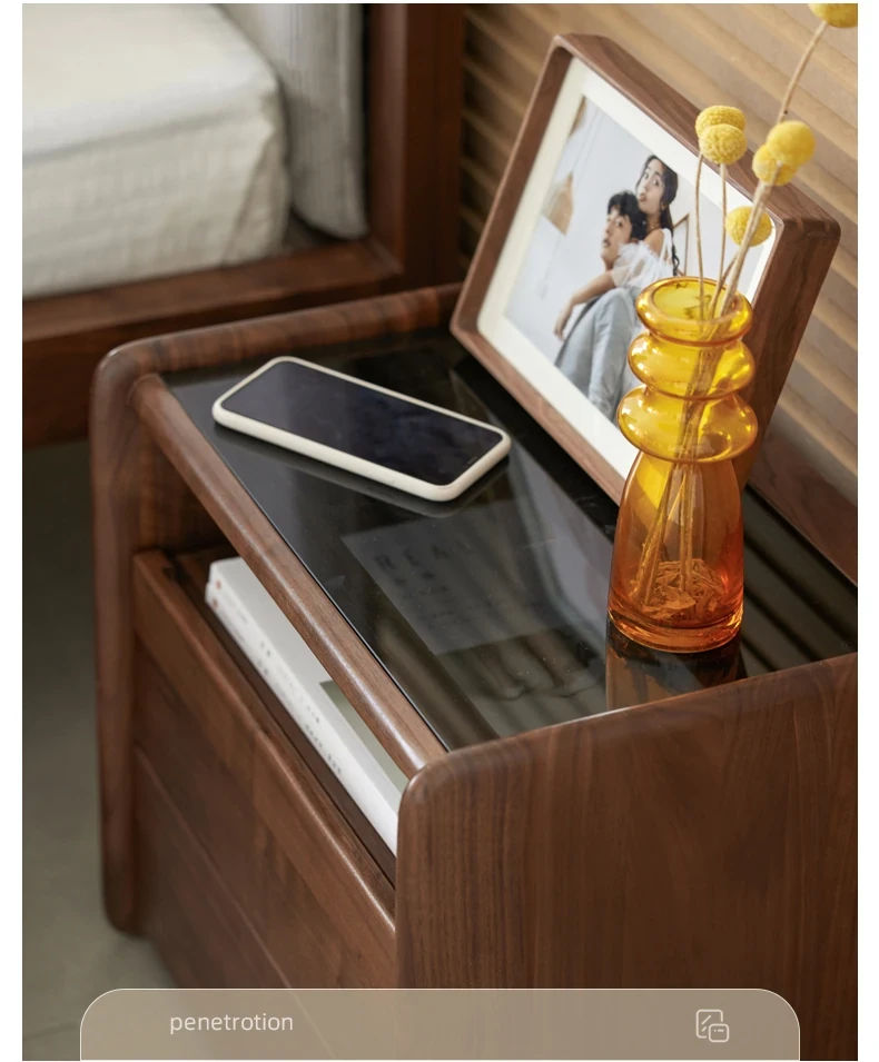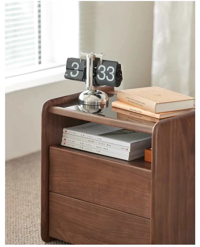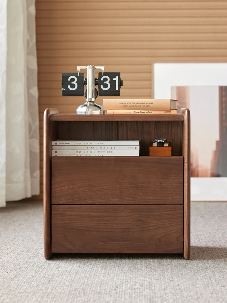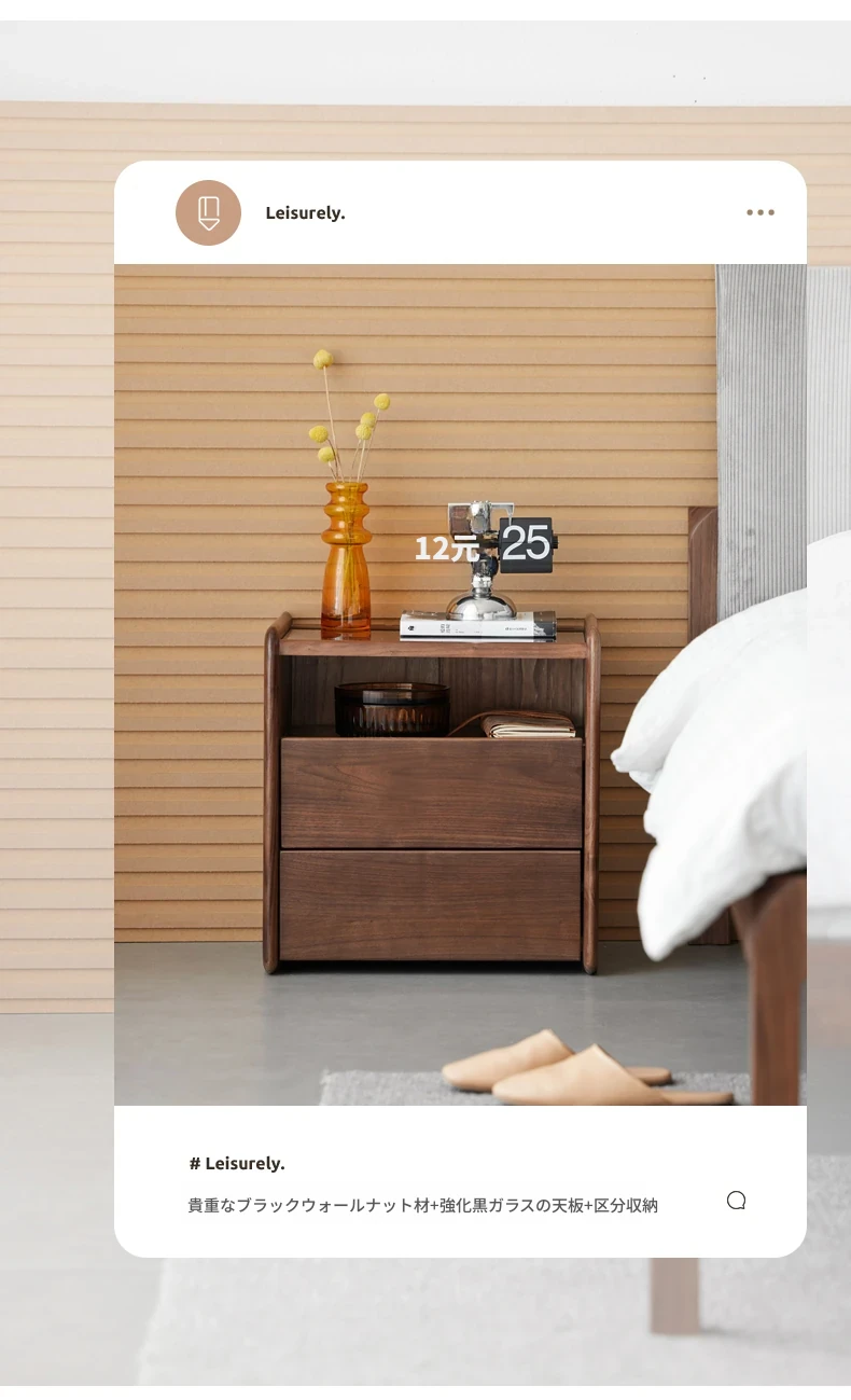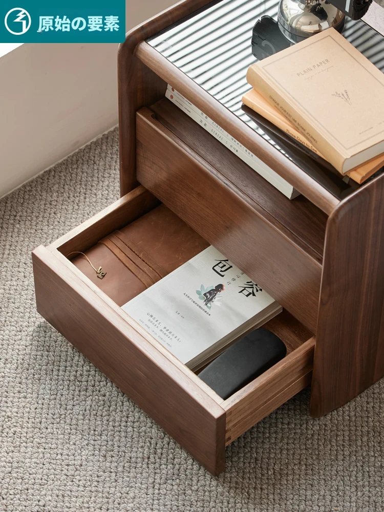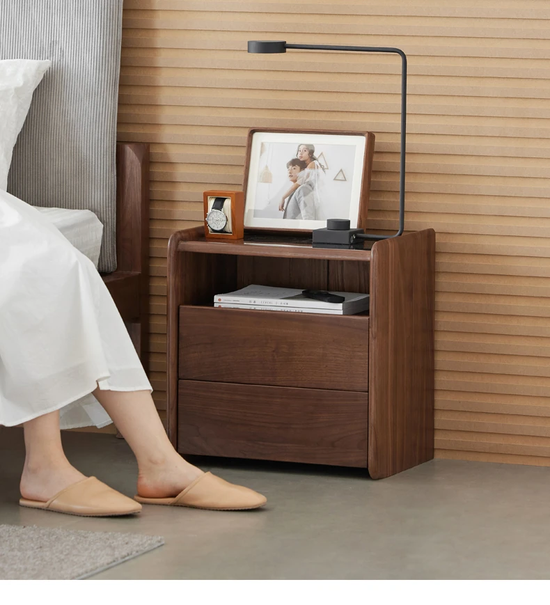 原材料へのこだわり! 北欧スタイルの本無垢材ナイトテーブル - 高級ブラックウォールナット製、収納力抜群のフロアタイプ・寝室用キャビネット!