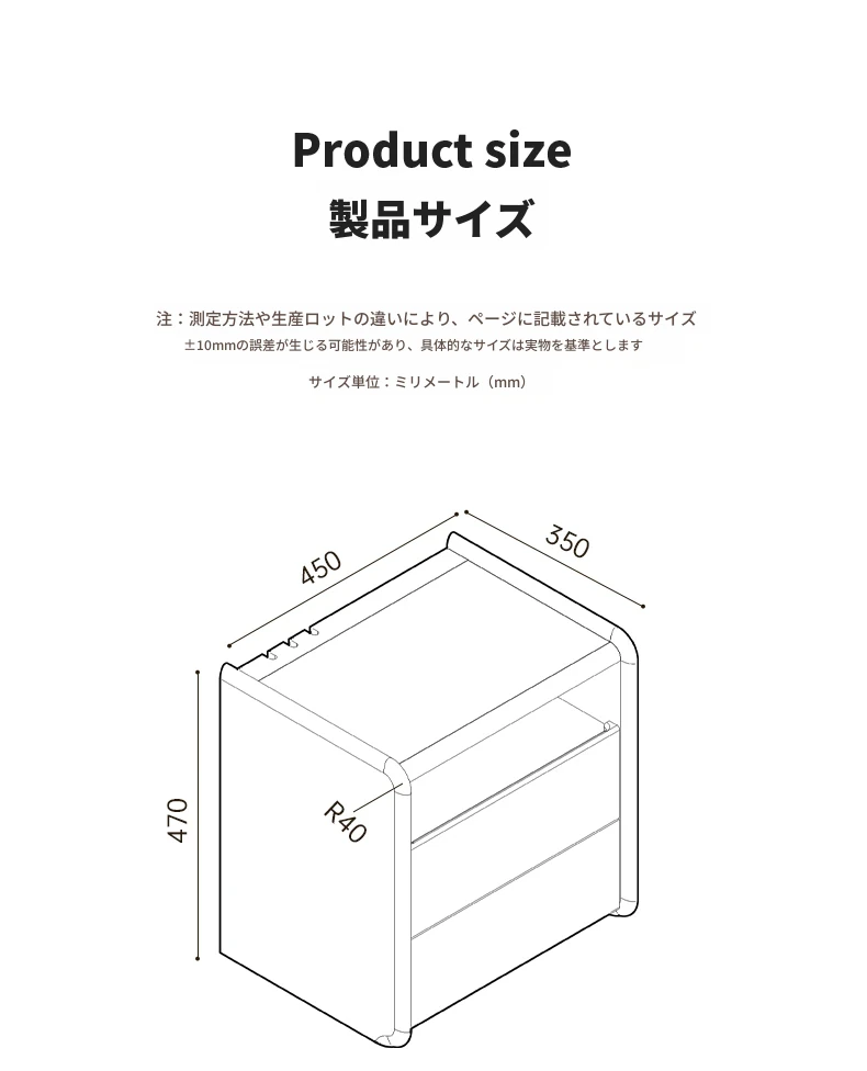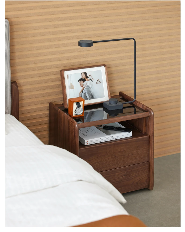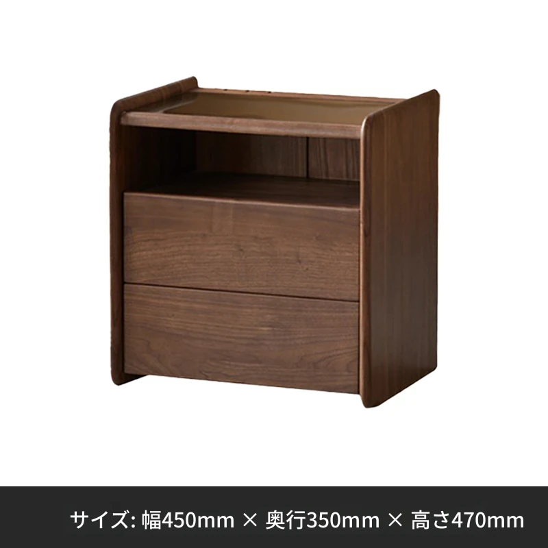 ブラックウォールナットベッドサイドテーブル(2引き出し1オープン)450*350*470mm