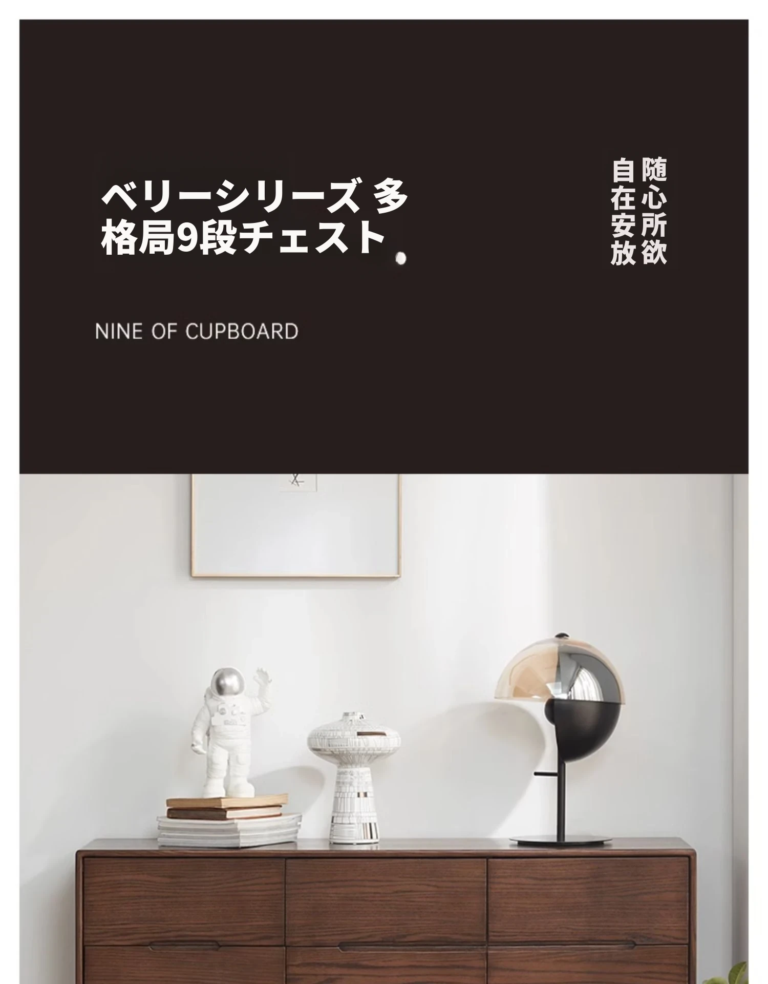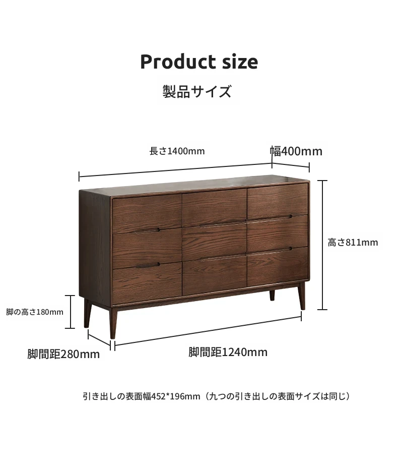 ブラックウォールナット色-幅広9段チェスト(F8031) 1400*400*811mm
