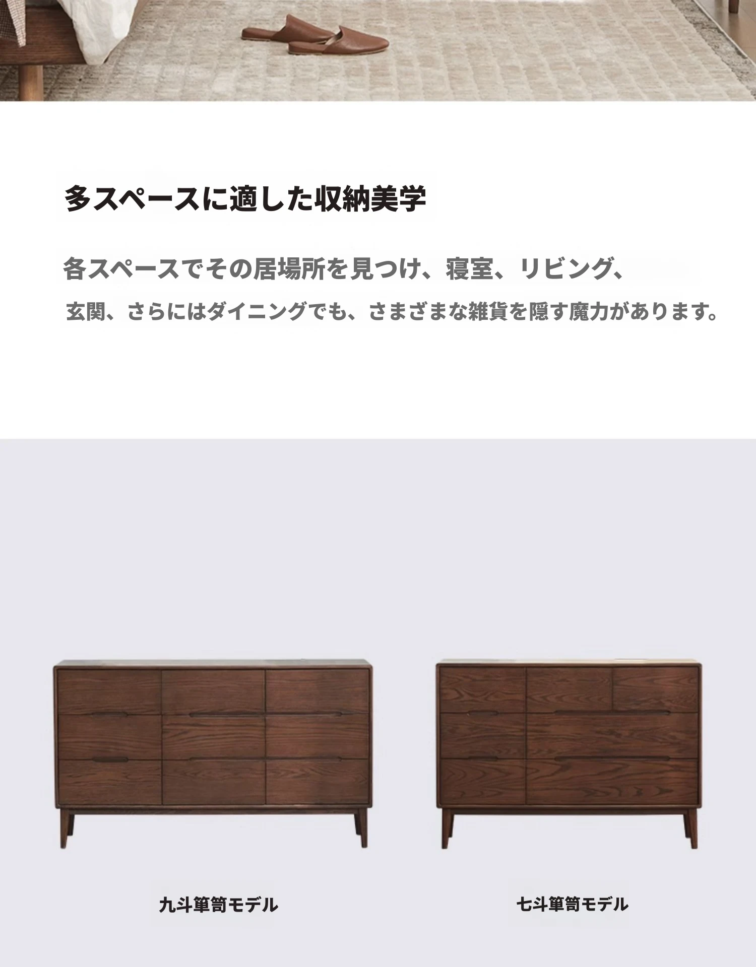 原木の魅力あふれる北欧スタイルの全実木チェスト - 橡木製のシンプルでおしゃれな9引き出しキャビネット。小さなお部屋にもぴったりな収納力抜群のクローゼット。あなたの寝室をスッキリ整理!