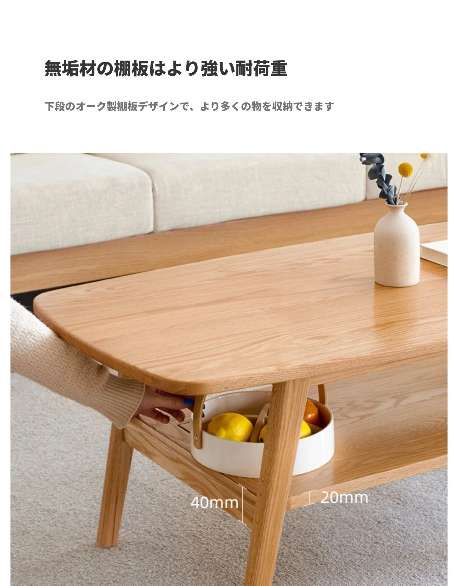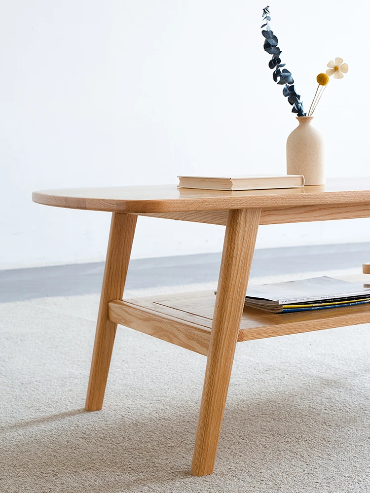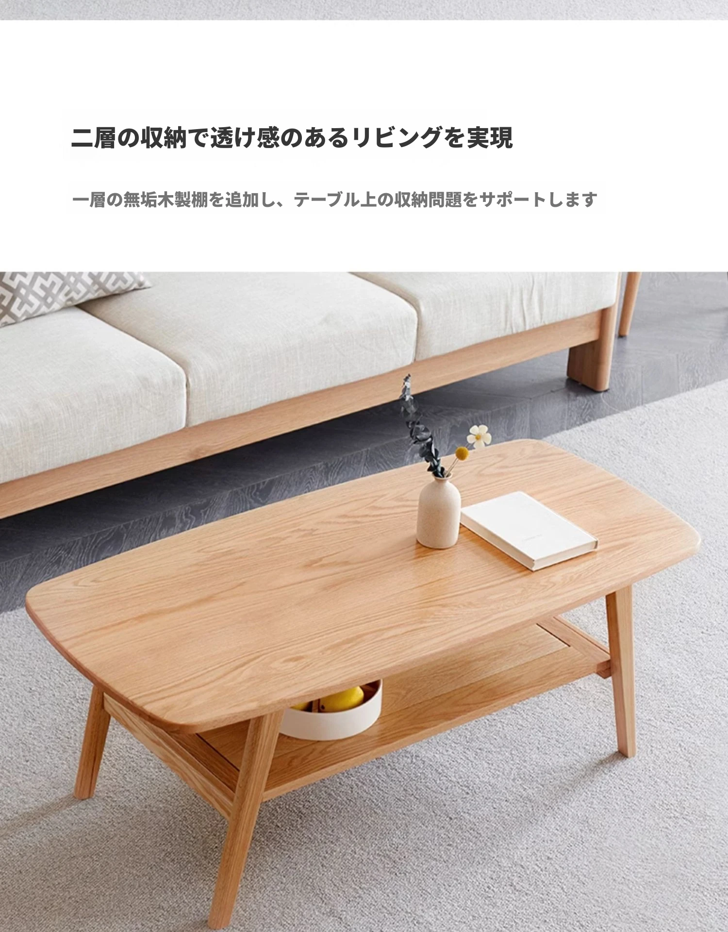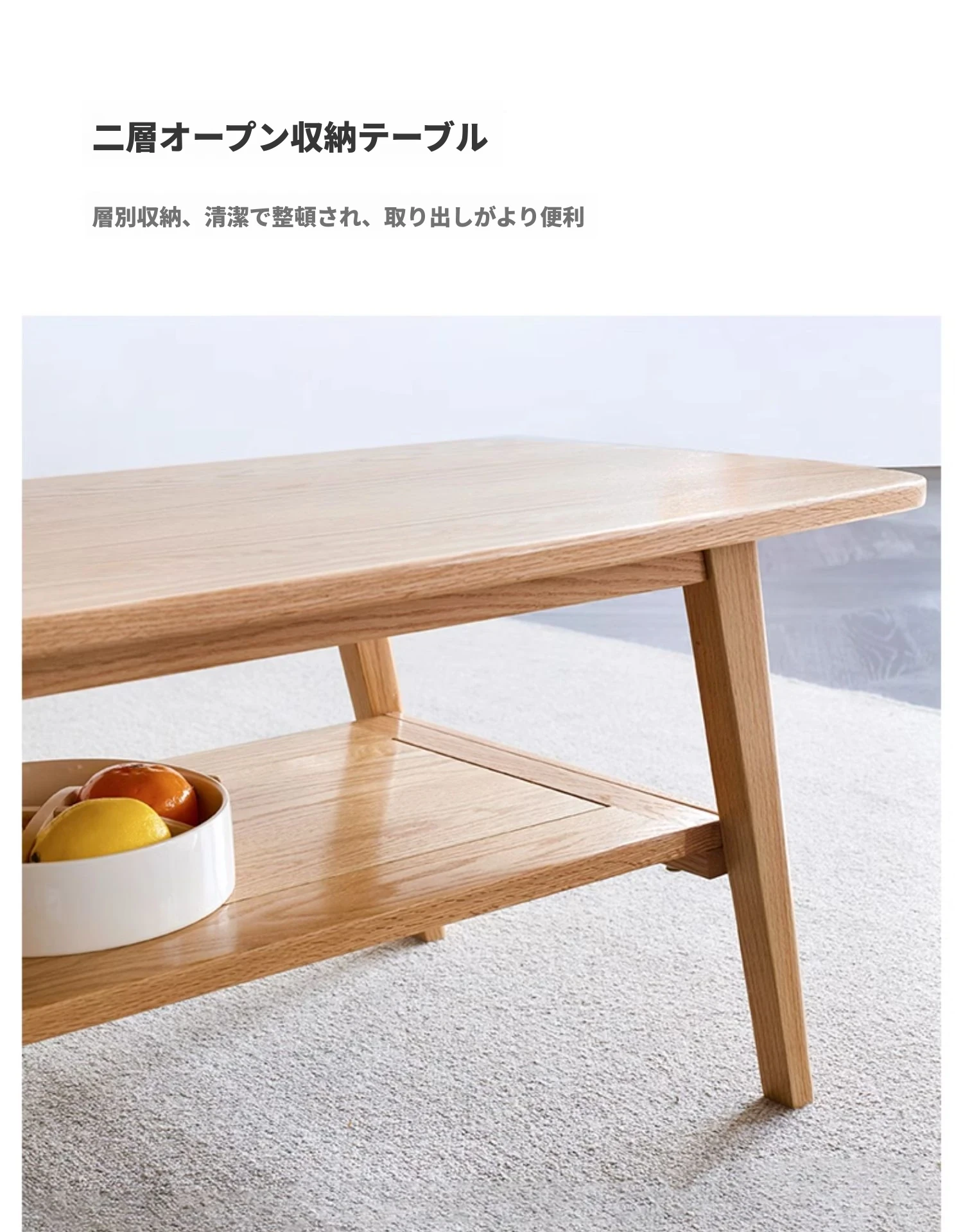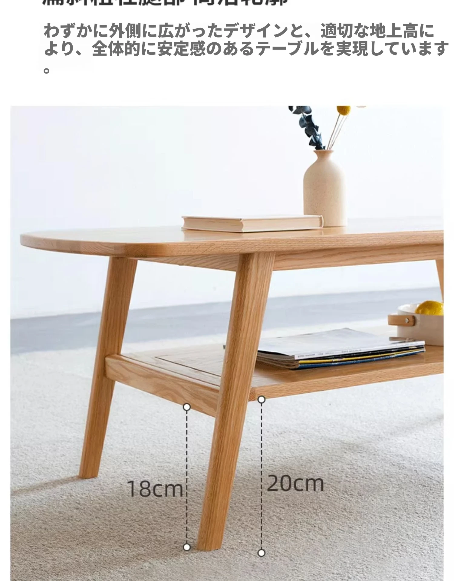 ナチュラルオークの無垢材製ミニコーヒーテーブル|北欧スタイルのシンプルデザイン|小さなリビングやお部屋にぴったりの二段式テーブル|おしゃれな茶台でくつろぎのひとときを提供します!