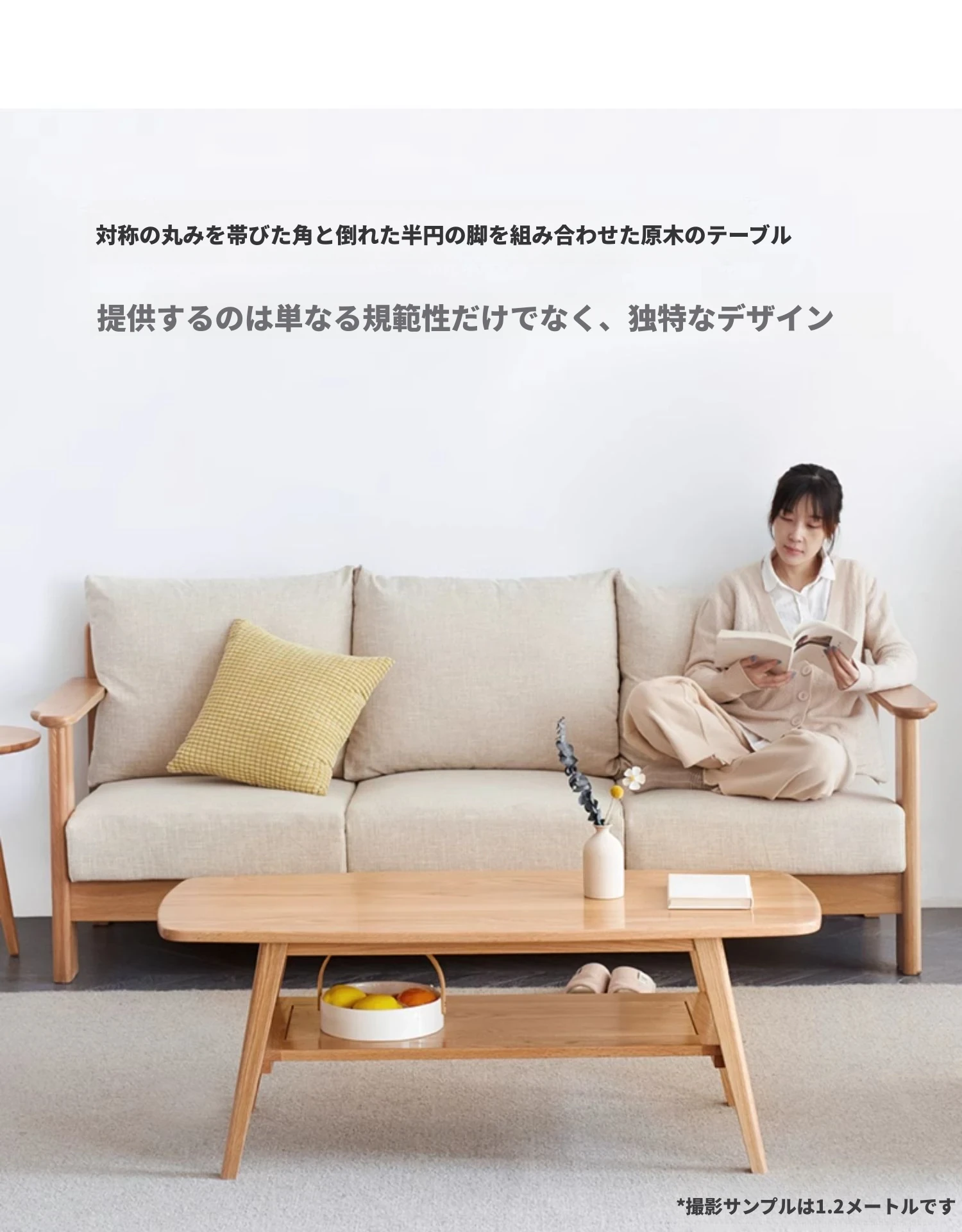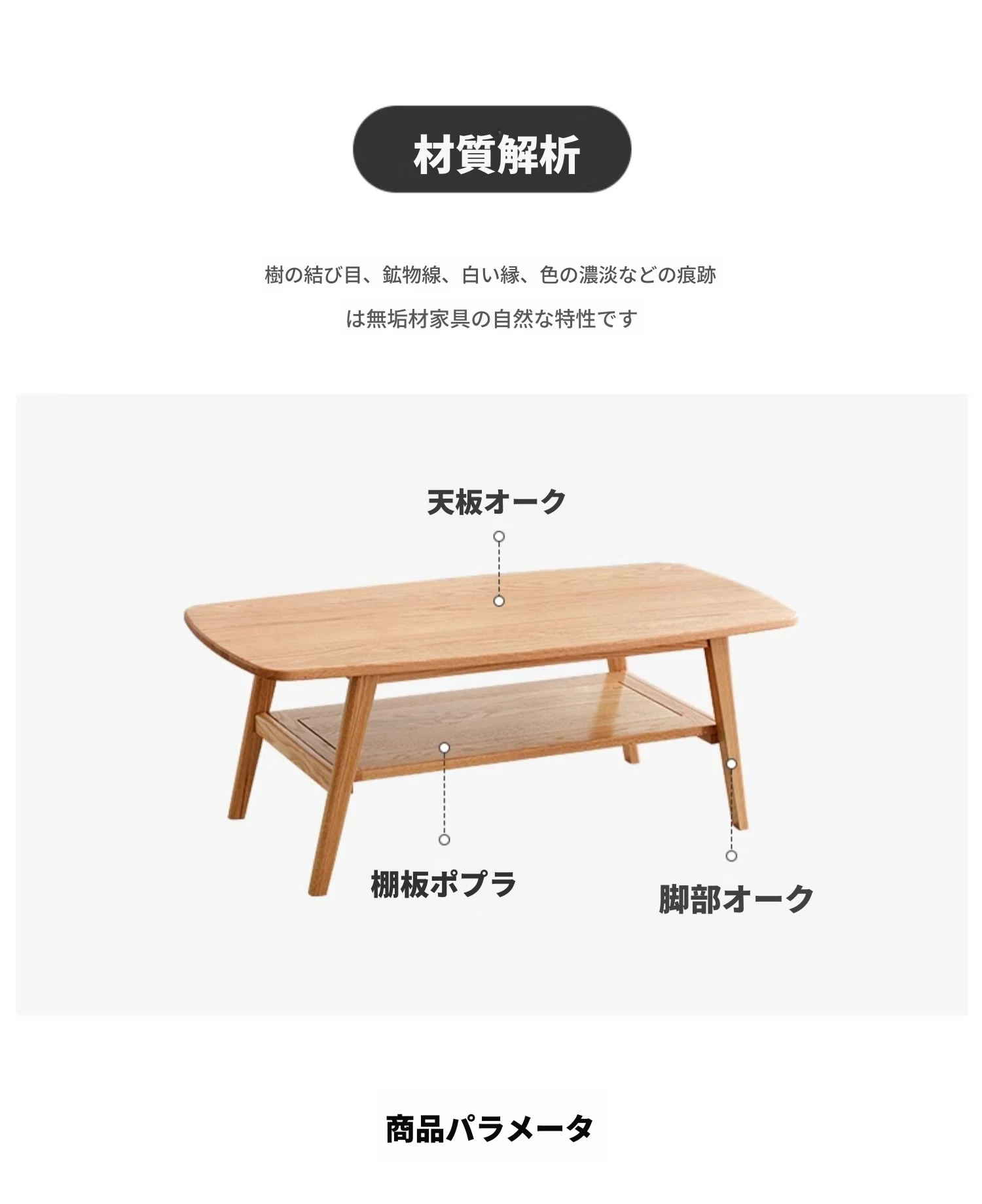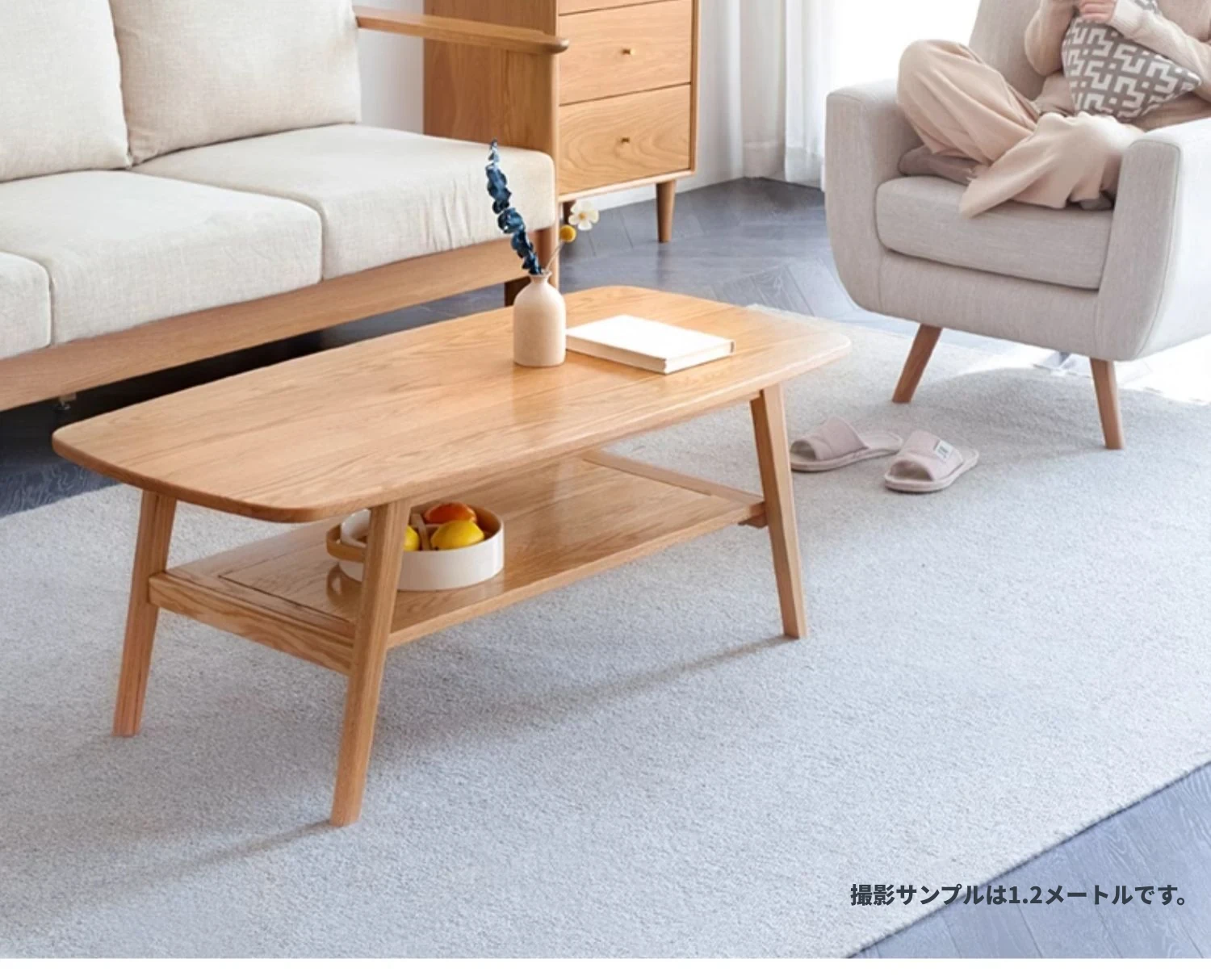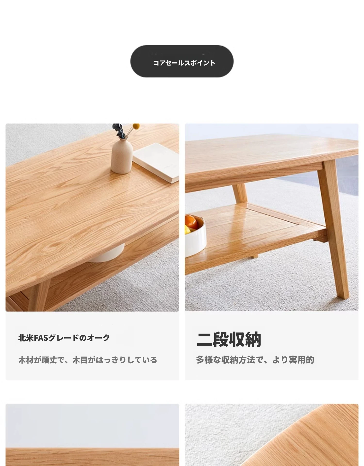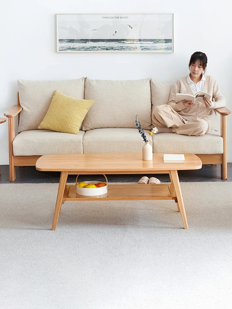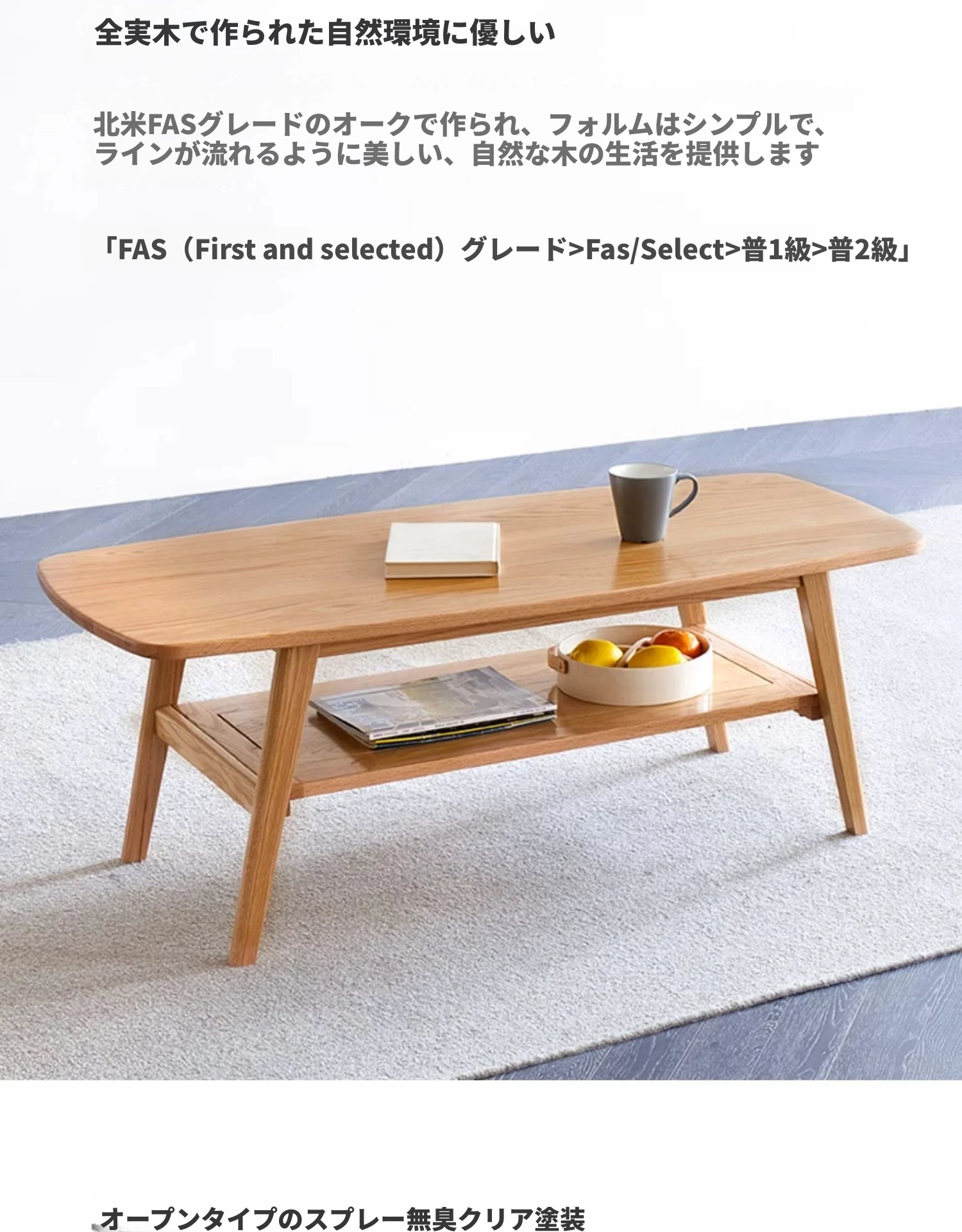 ナチュラルオークの無垢材製ミニコーヒーテーブル|北欧スタイルのシンプルデザイン|小さなリビングやお部屋にぴったりの二段式テーブル|おしゃれな茶台でくつろぎのひとときを提供します!