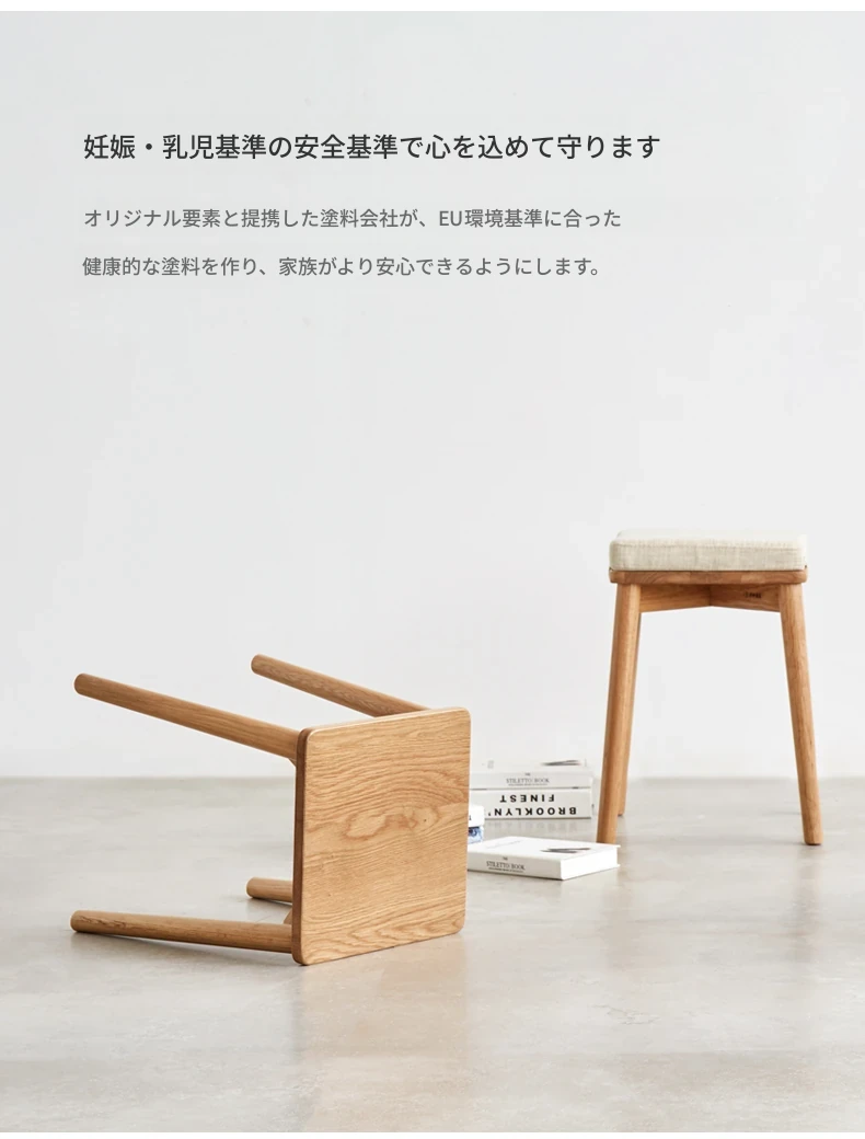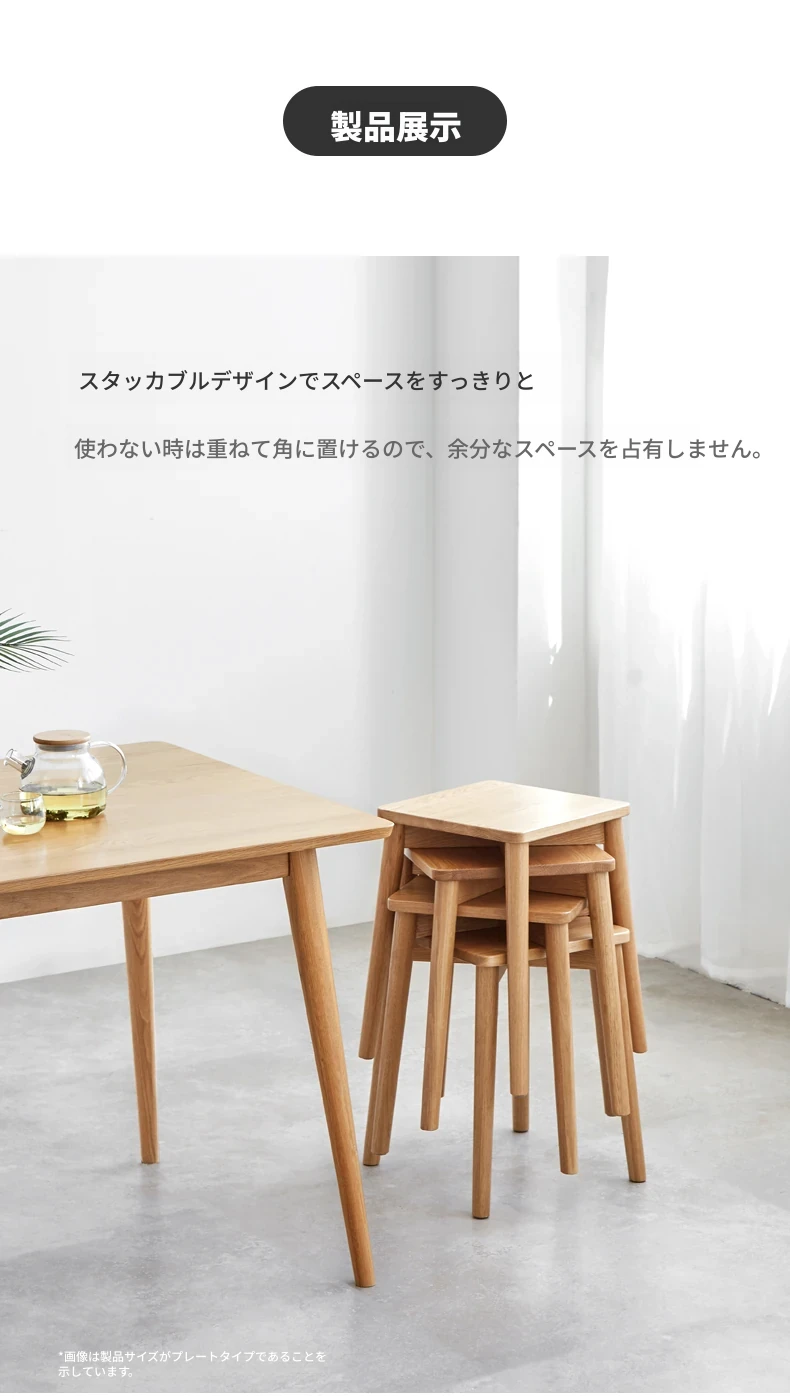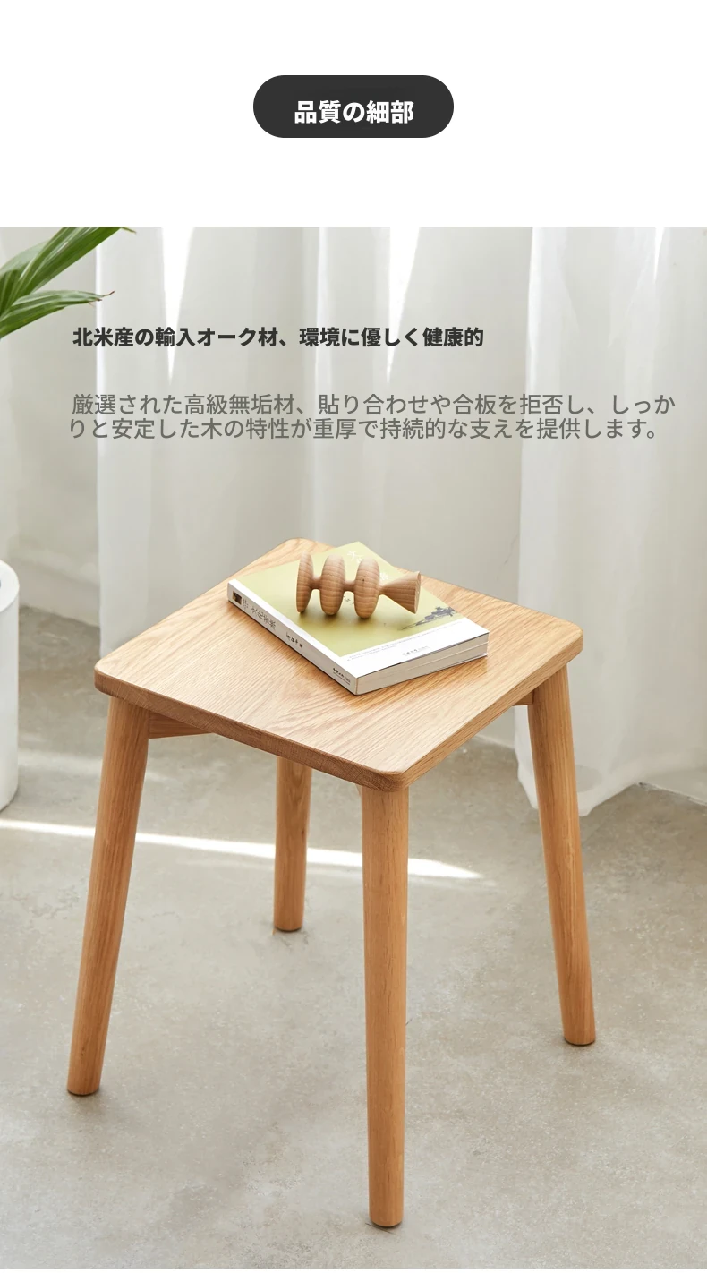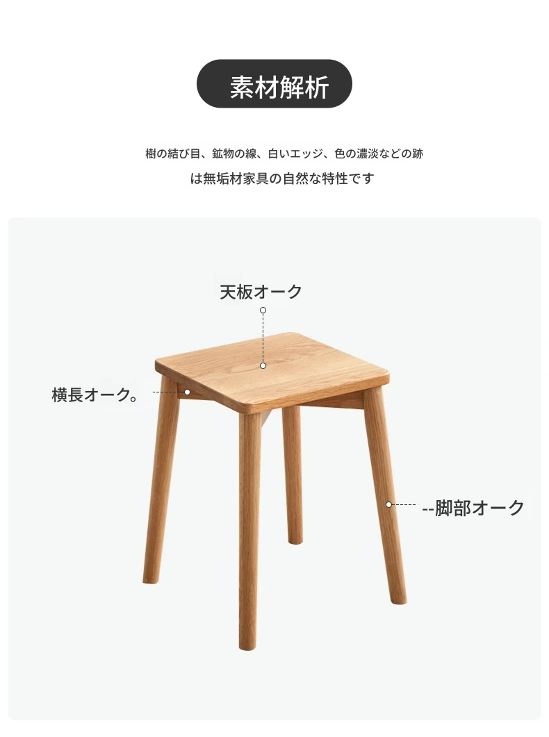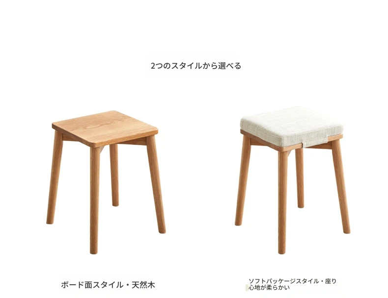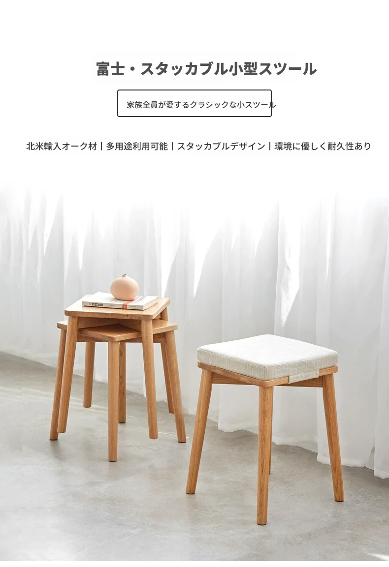 原始素材の無垢材使用!モダンでシンプルな北欧スタイルのスタッキング可能なオーク製スツール。狭いスペースにもぴったりな靴置きやメイクアップチェアとして最適です!