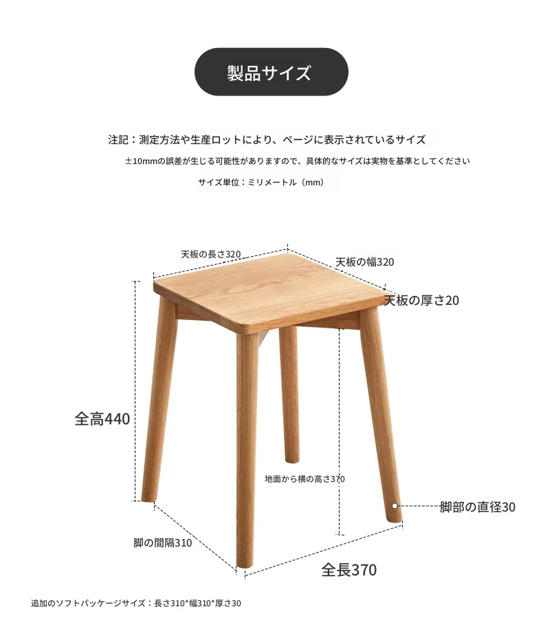 原木色-オーク製スクエアスツール (即納)