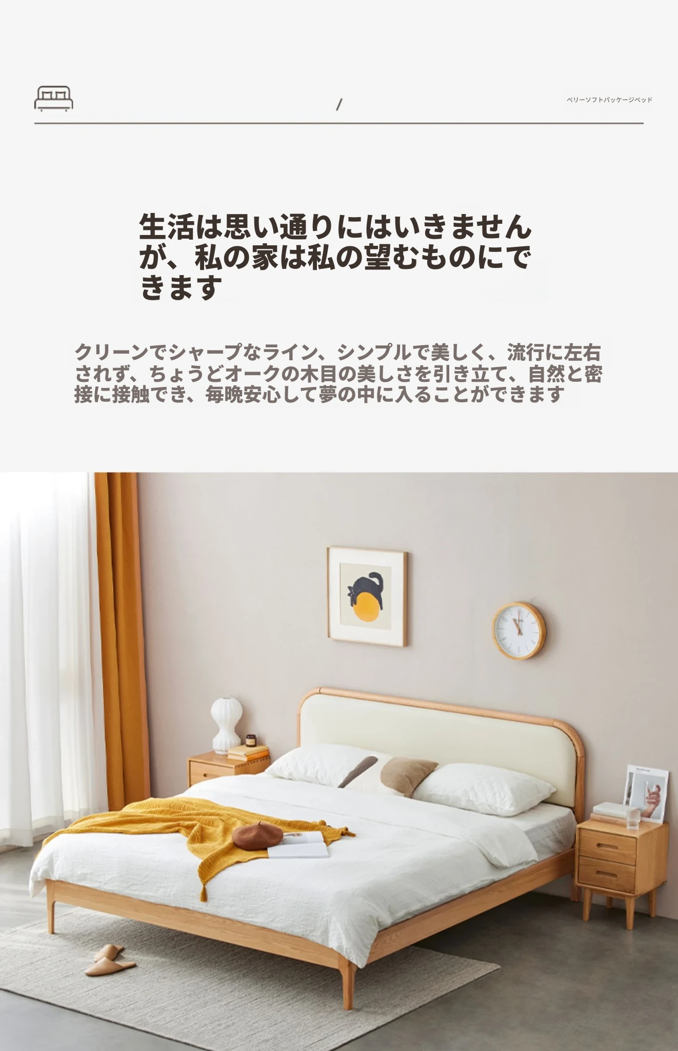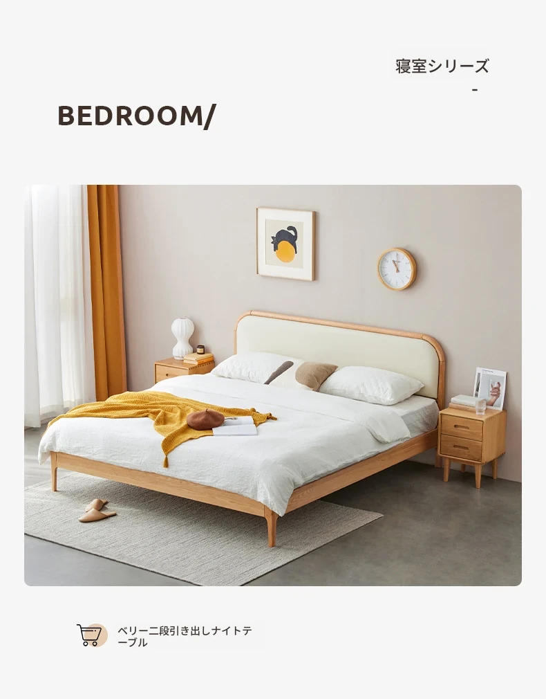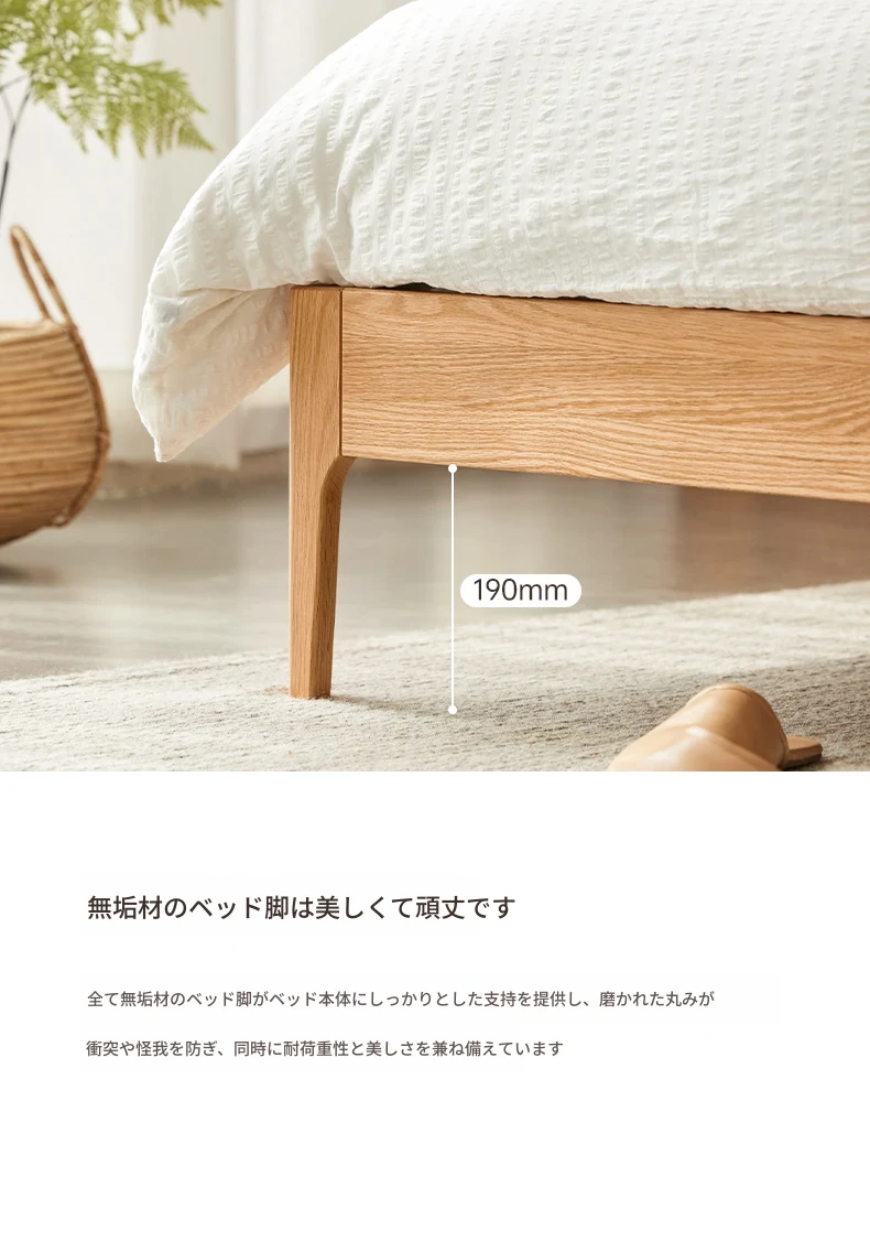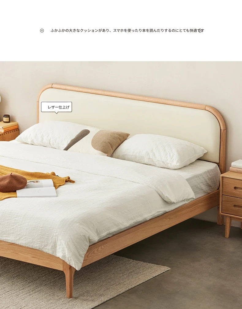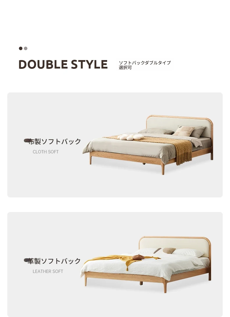 北欧スタイルの無垢材ダブルベッド!現代的でシンプルなデザイン、1.5mと1.8mの選べるサイズ。オーク材の温もりとクリーミーなソフトパッキングが特徴。主寝室にぴったりな上質な一品を手に入れよう!