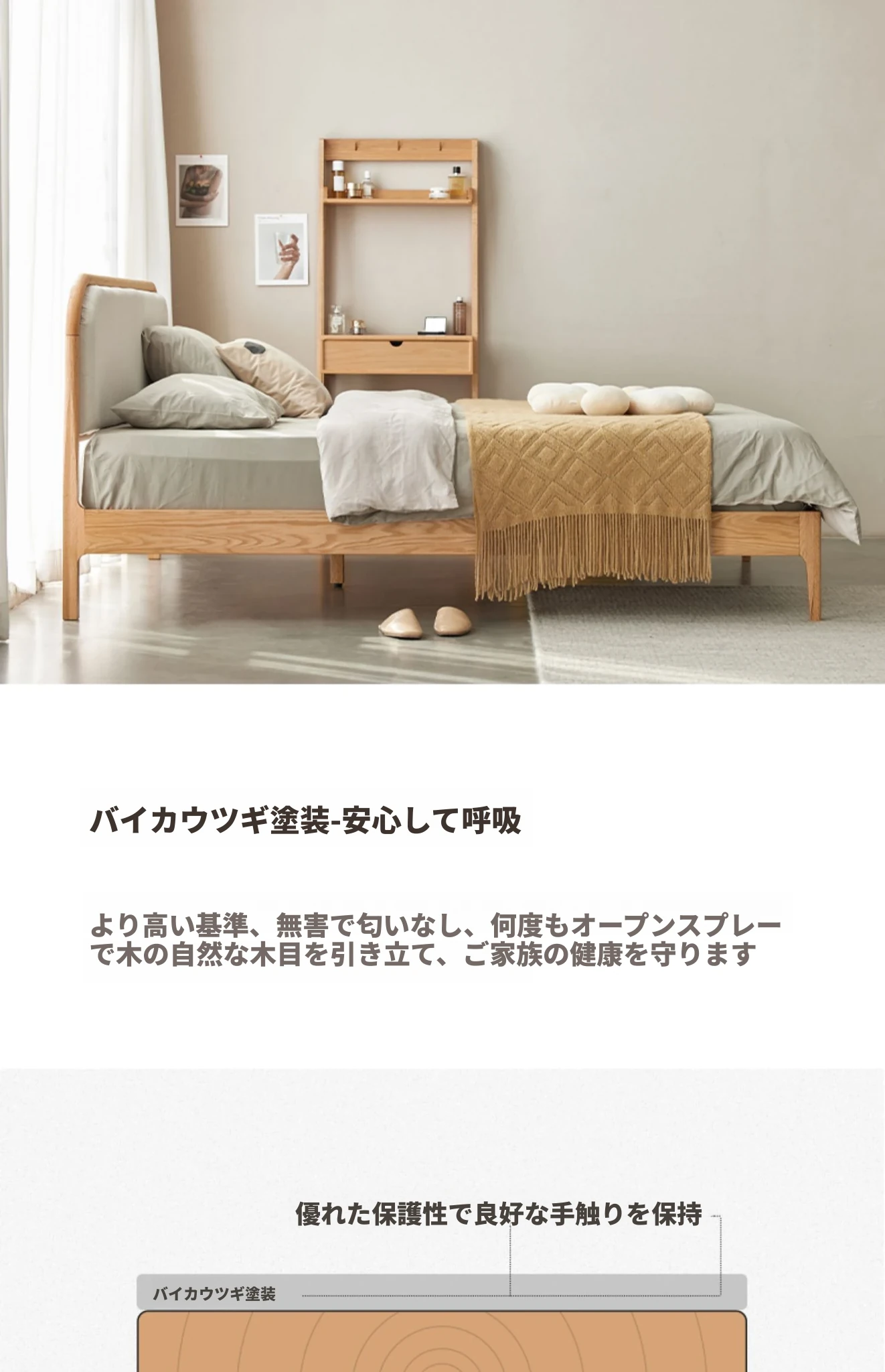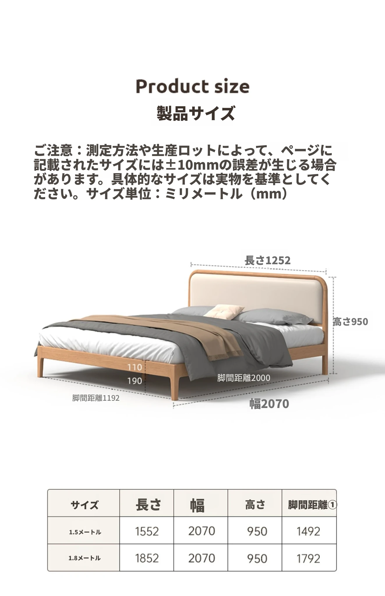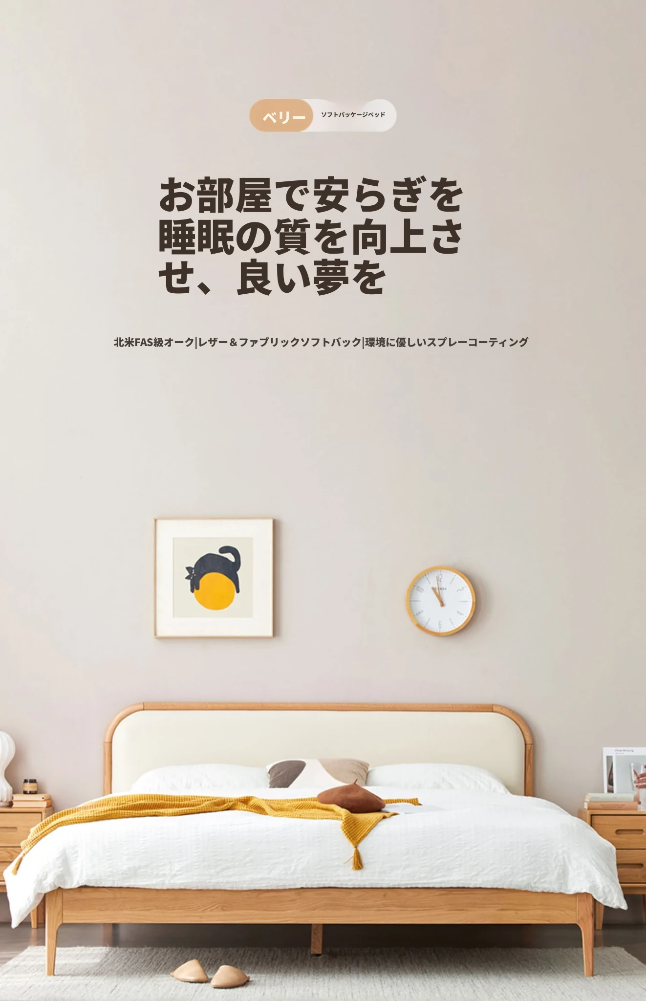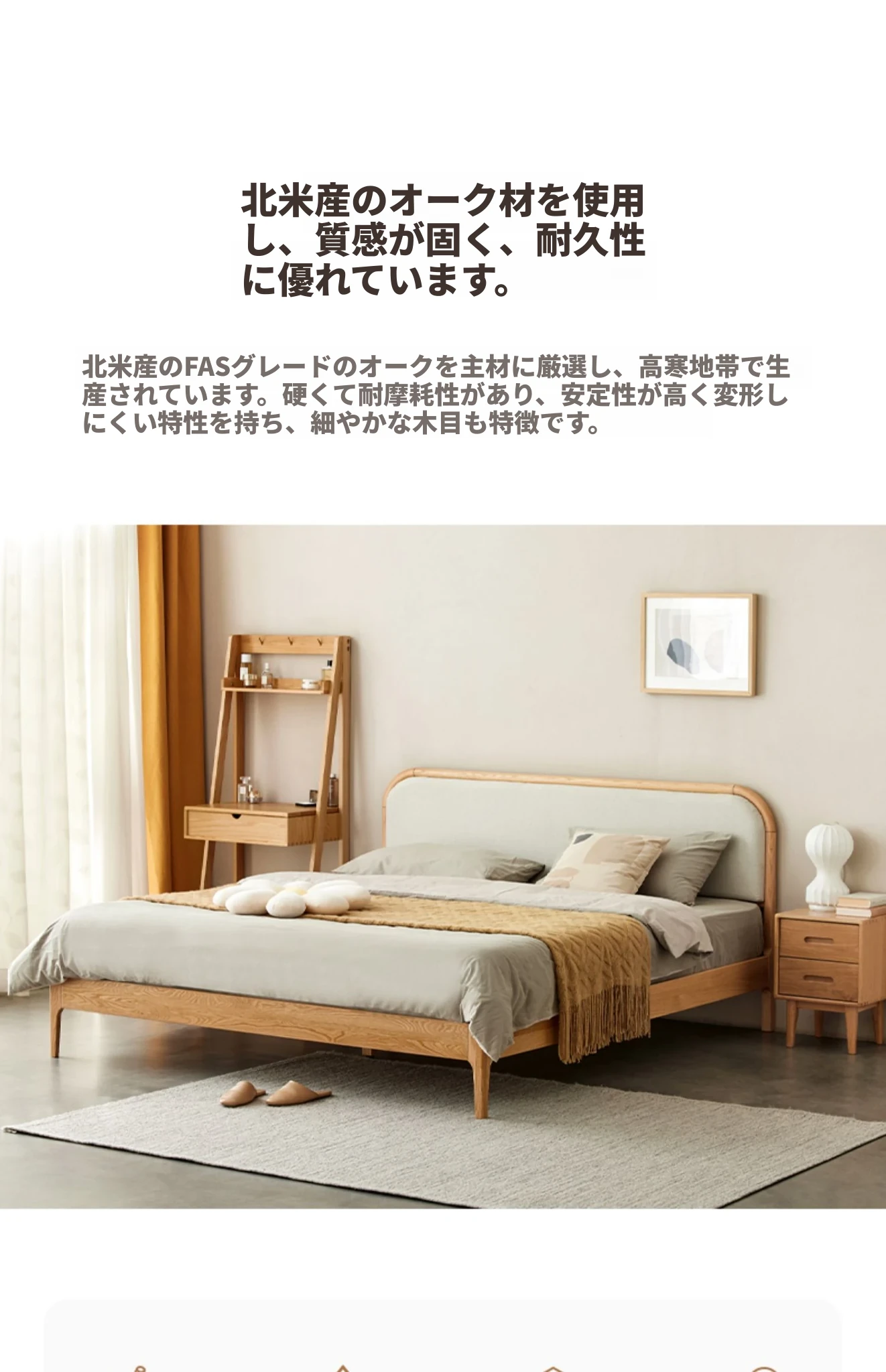 北欧スタイルの無垢材ダブルベッド!現代的でシンプルなデザイン、1.5mと1.8mの選べるサイズ。オーク材の温もりとクリーミーなソフトパッキングが特徴。主寝室にぴったりな上質な一品を手に入れよう!